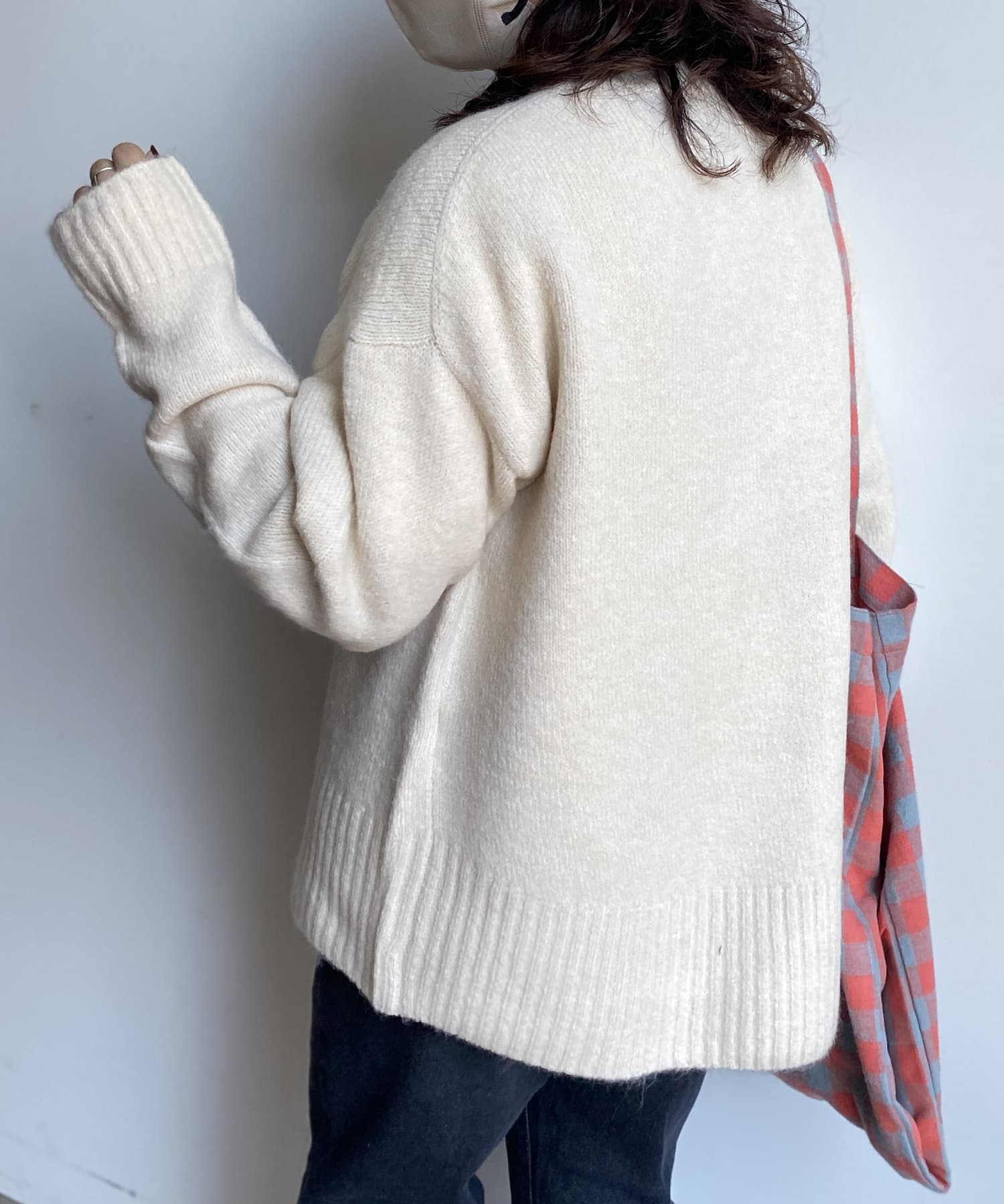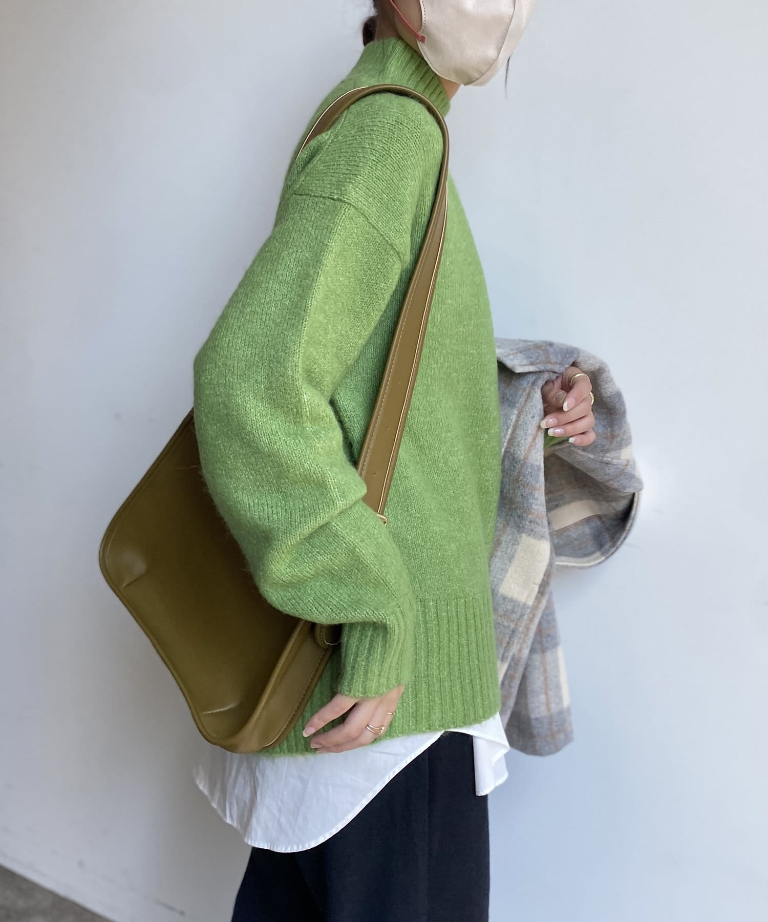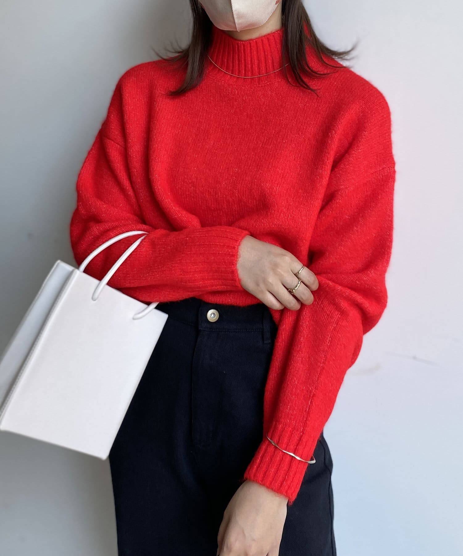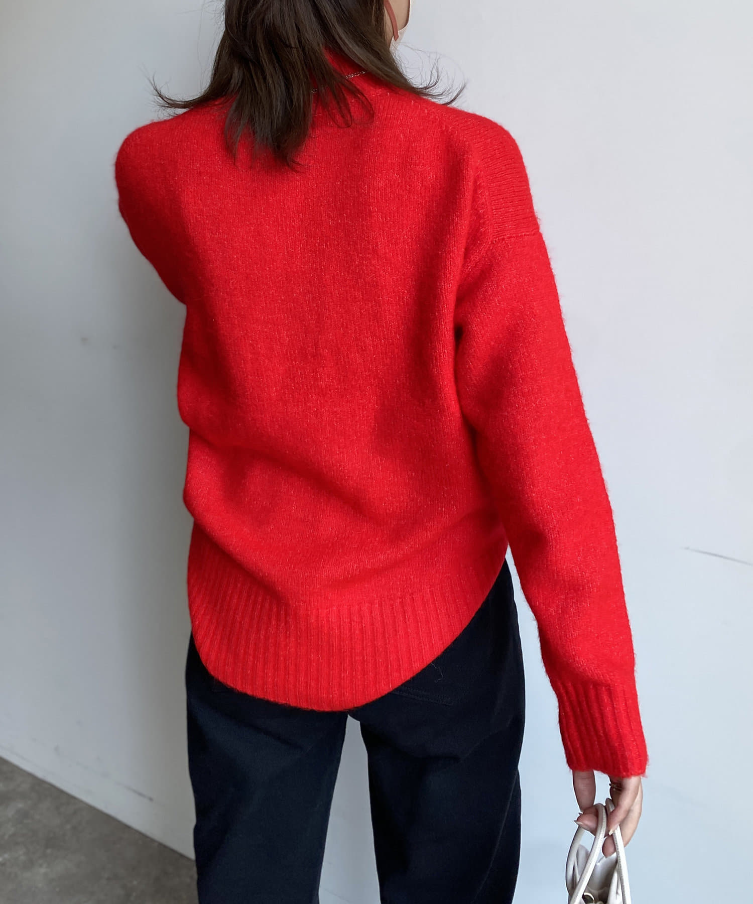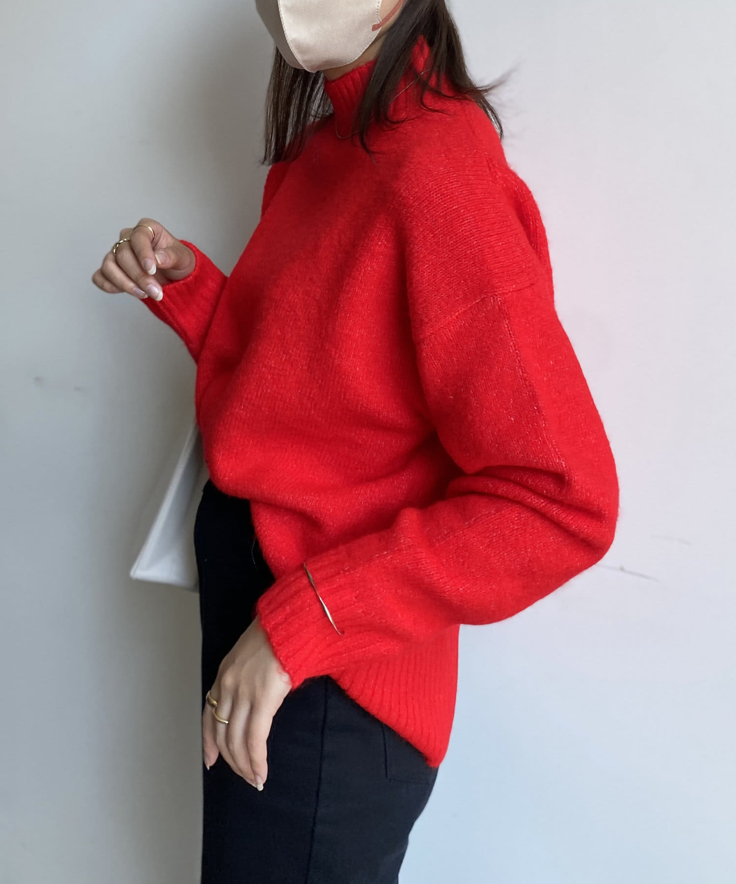 モノトーンになりがちなコーディネートに差し色にピッタリなニットプルオーバーです。