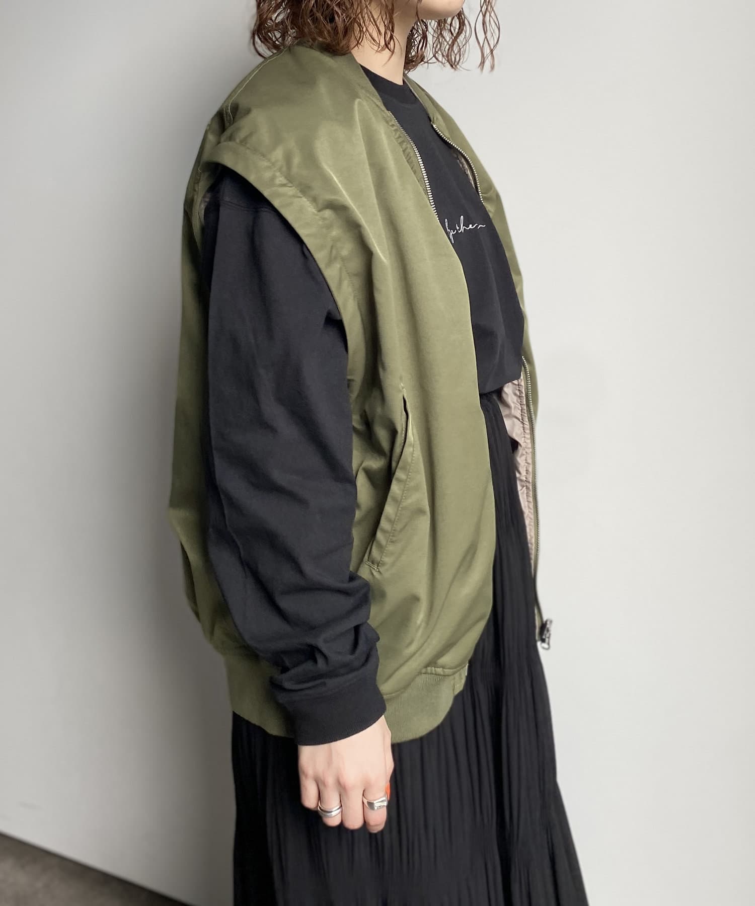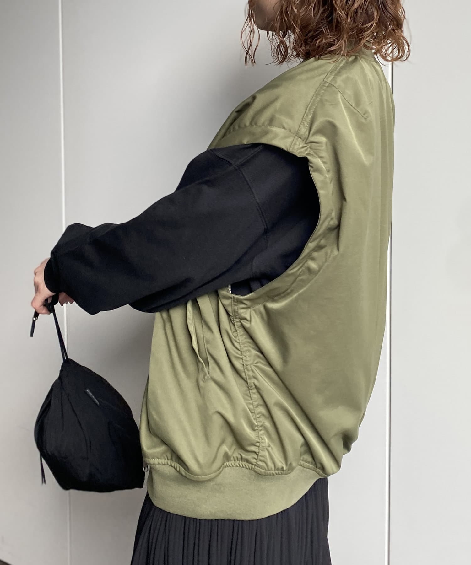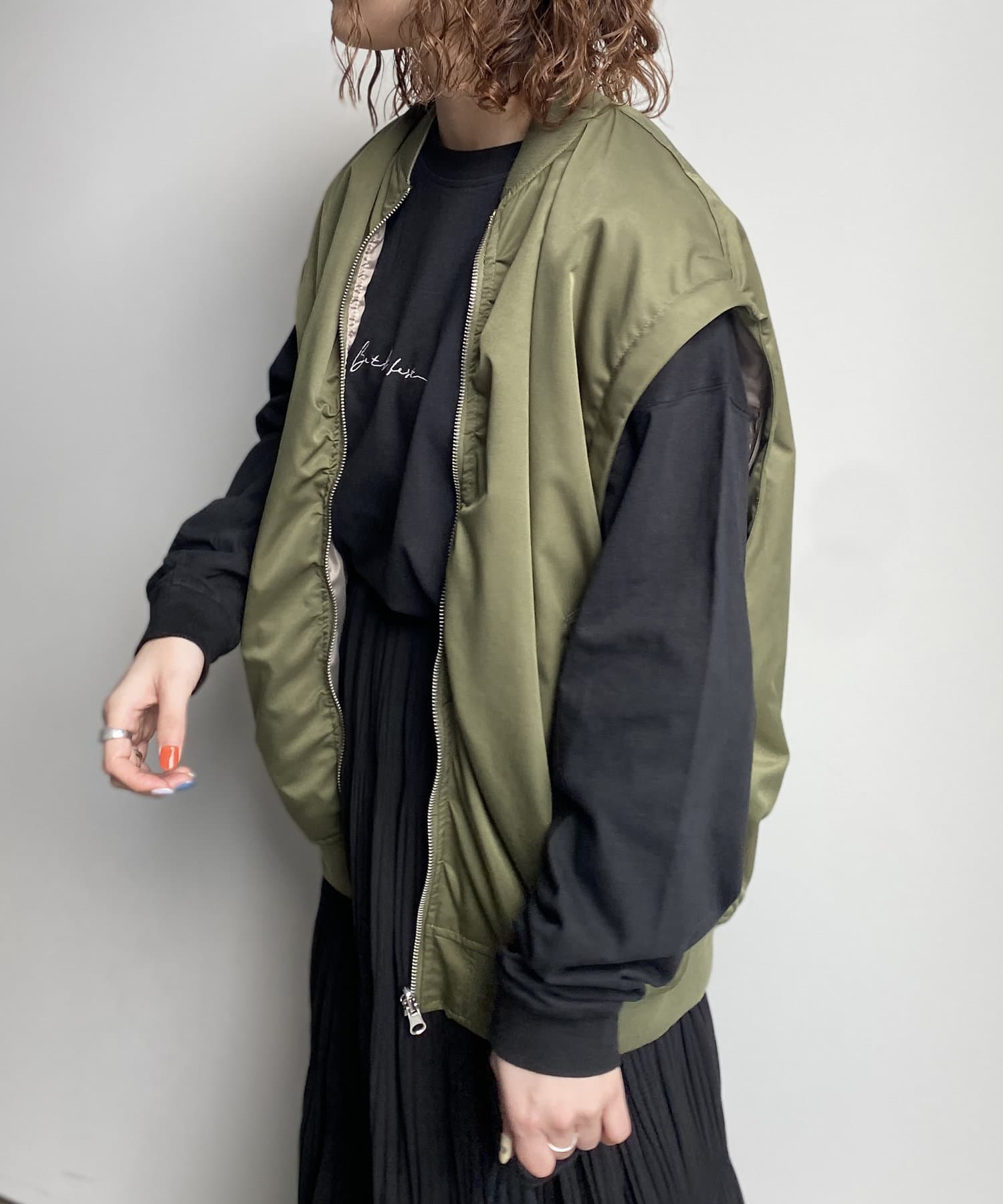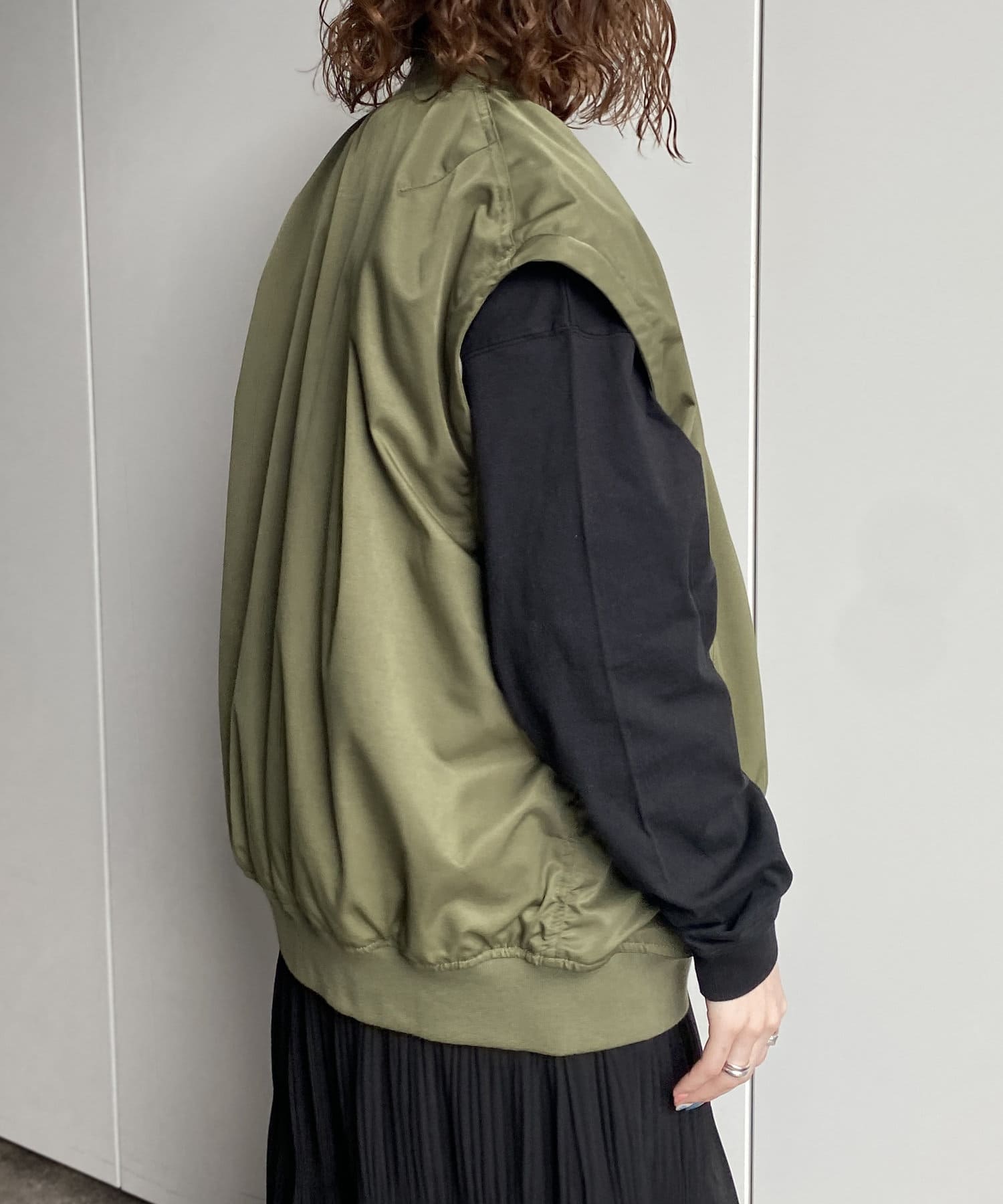 くしゅっとしたギャザー入りの袖部分は、取り外し可能で中綿ベストとして使えるのも嬉しいポイントのひとつ。