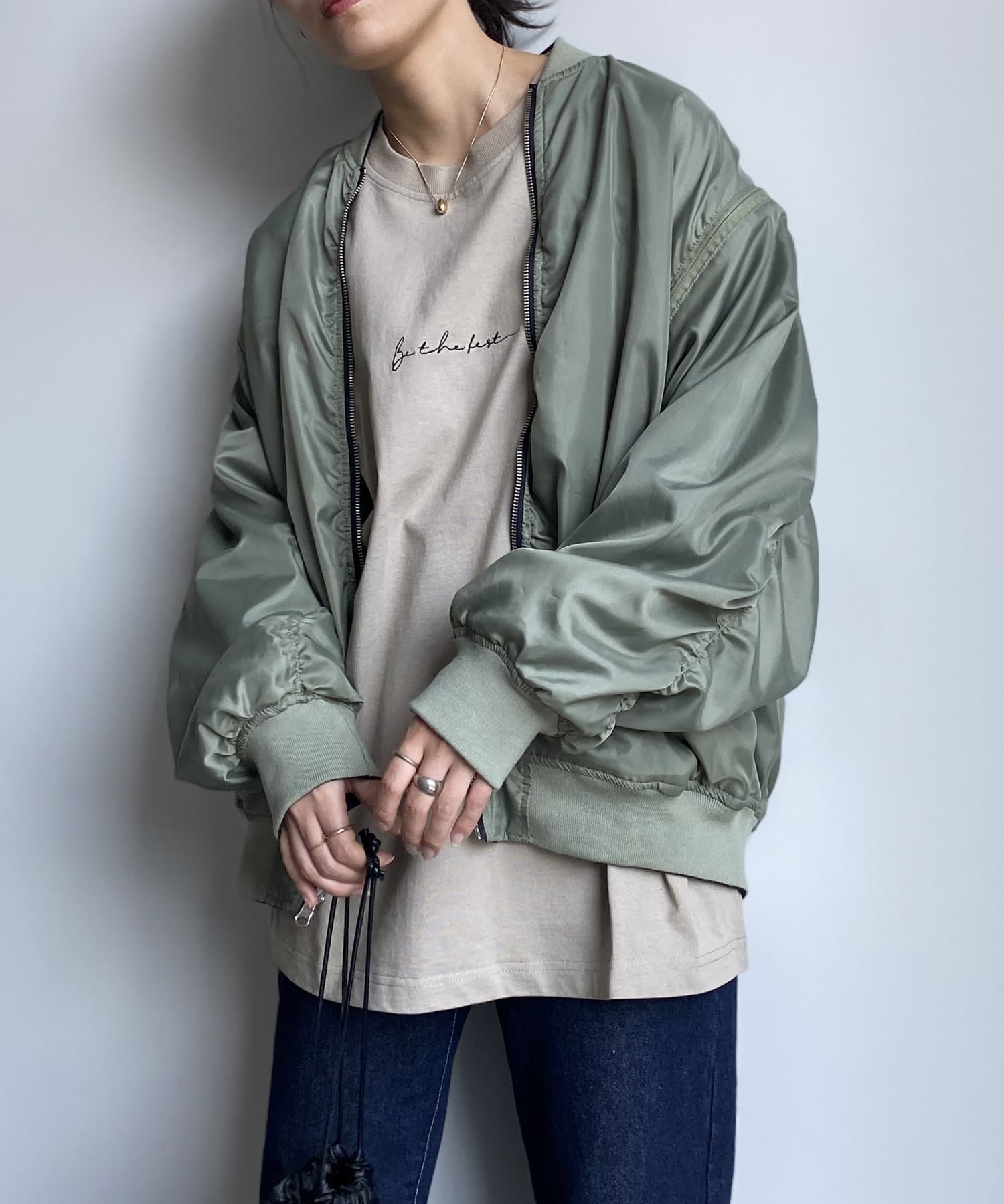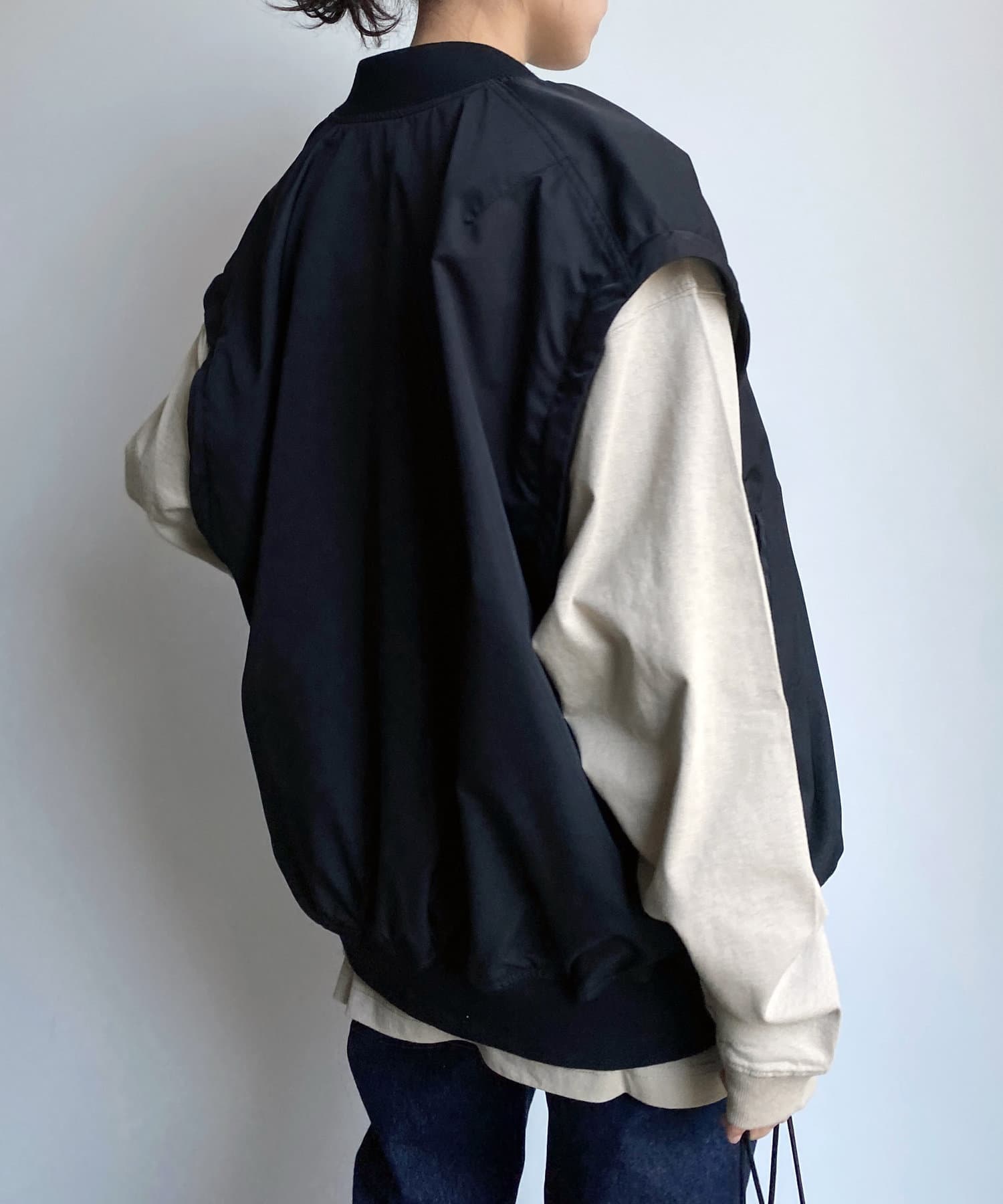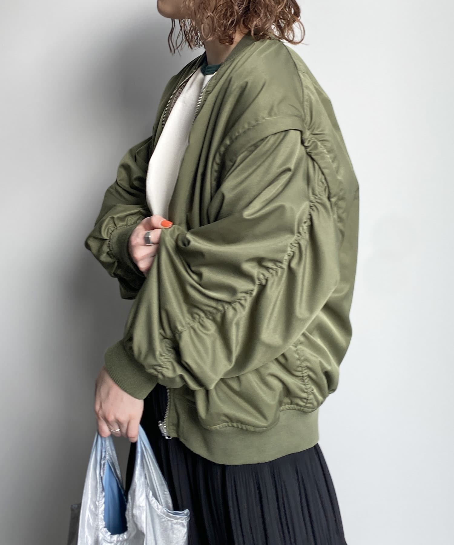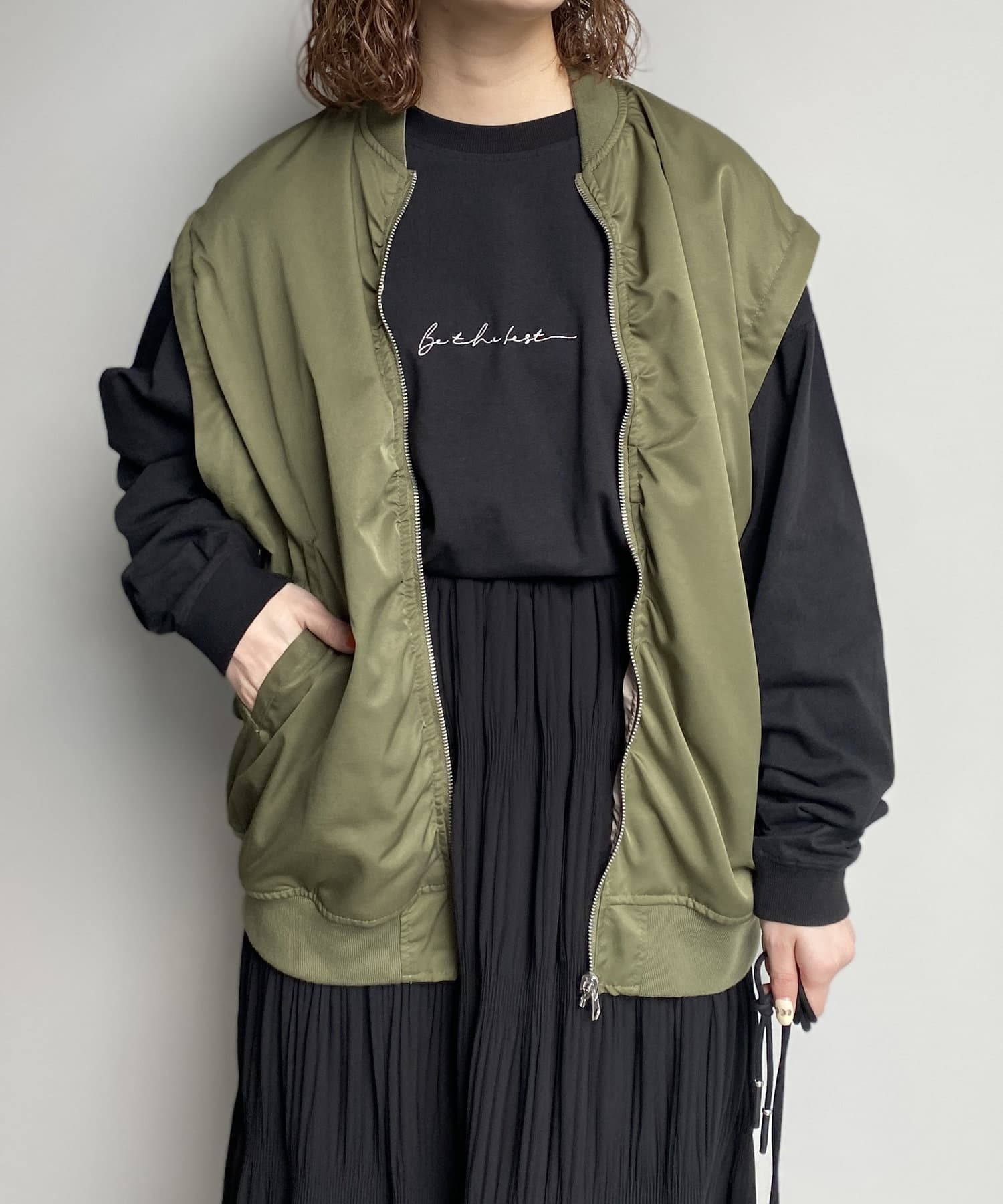 くしゅっとしたギャザー入りの袖部分は、取り外し可能で中綿ベストとして使えるのも嬉しいポイントのひとつ。