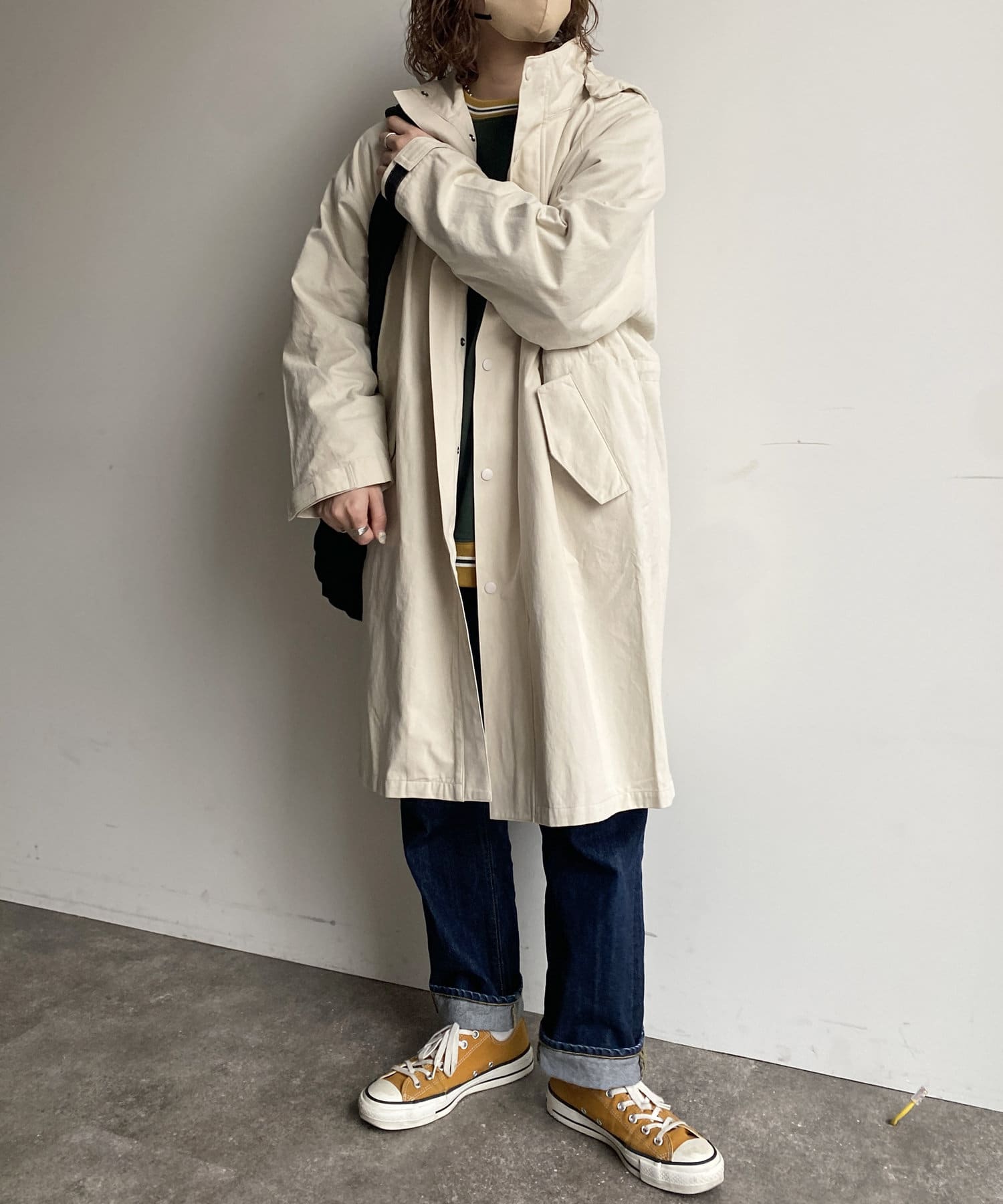 ルーズなサイズジングと細部にまでこだわったモッズコートならではの装飾で雰囲気たっぷりのミリタリーテイストコート。