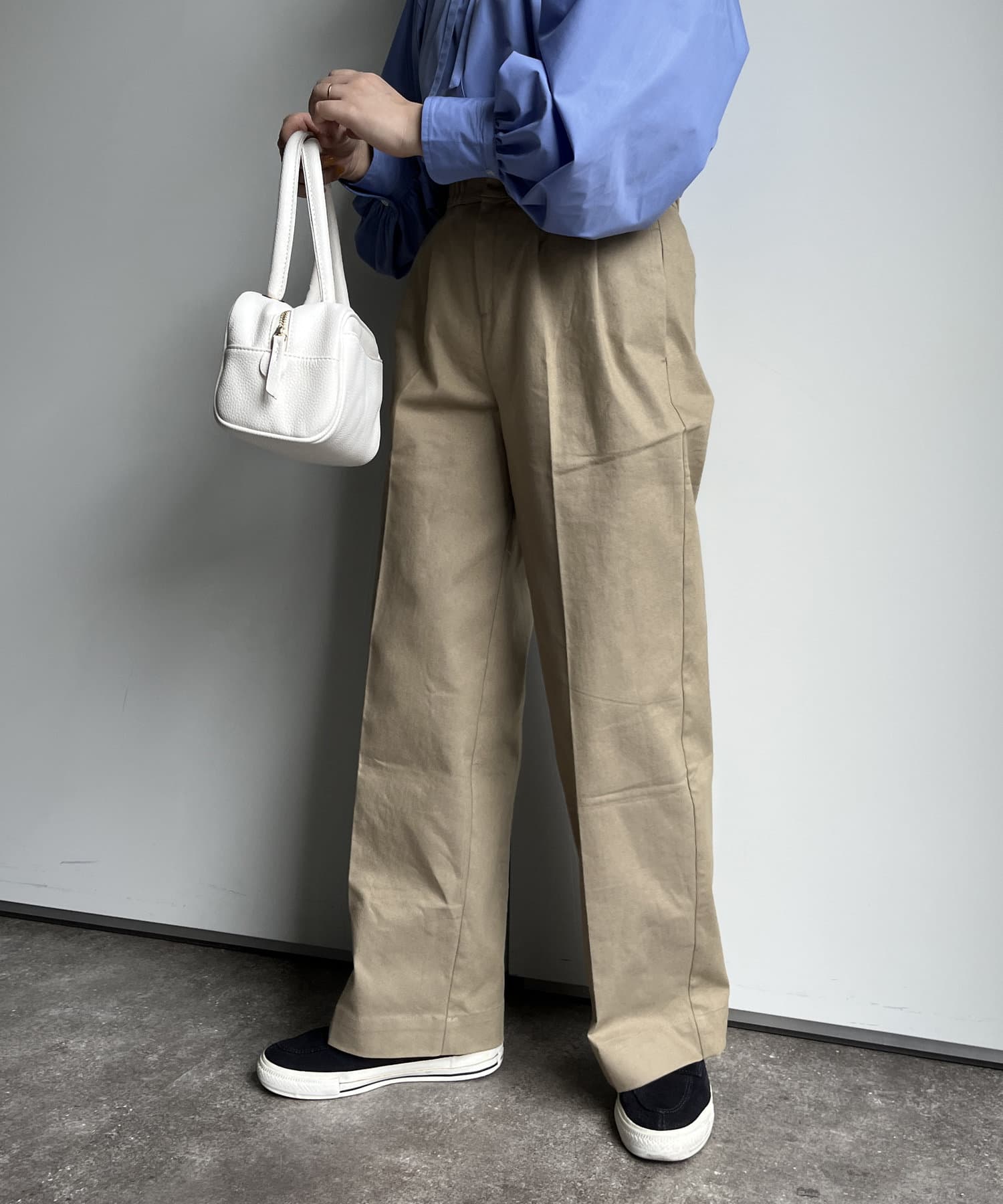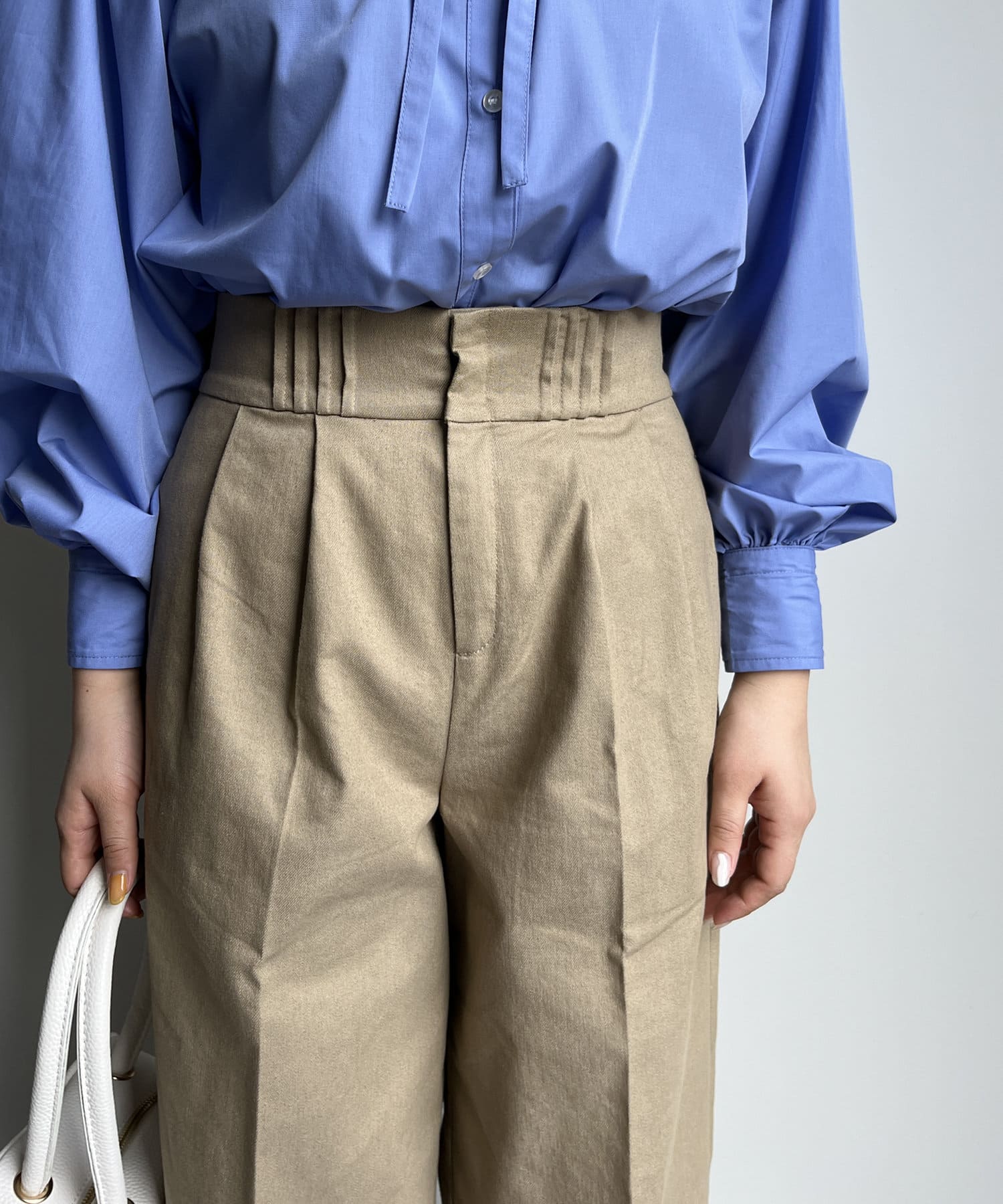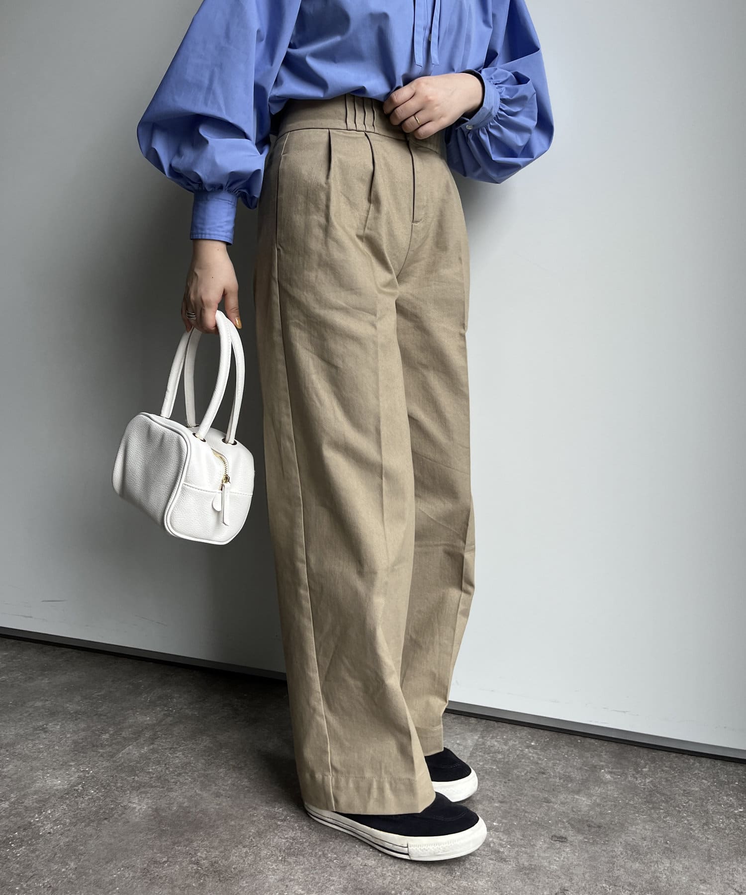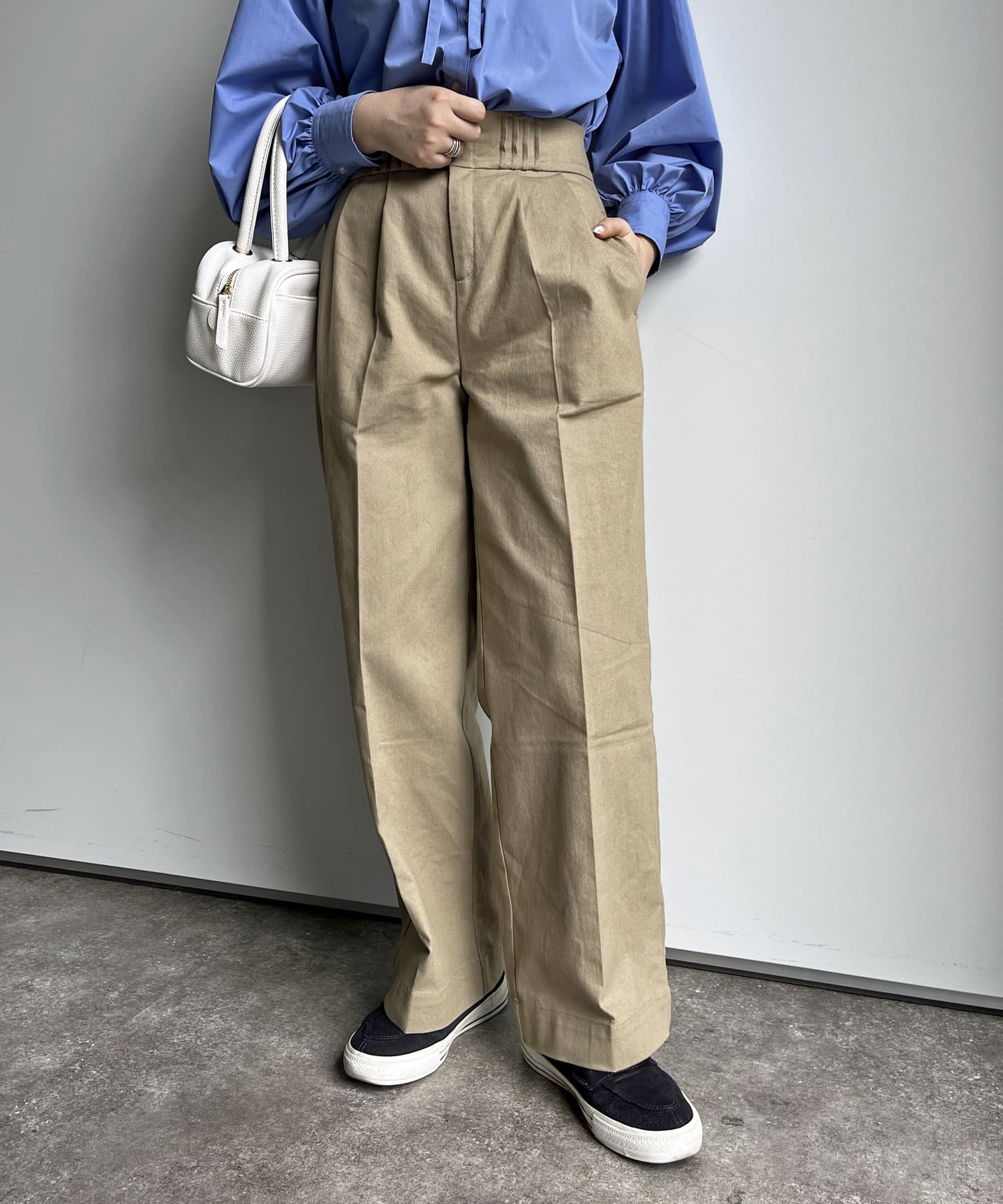 オールシーズン活躍する、ハイウエストタックパンツ