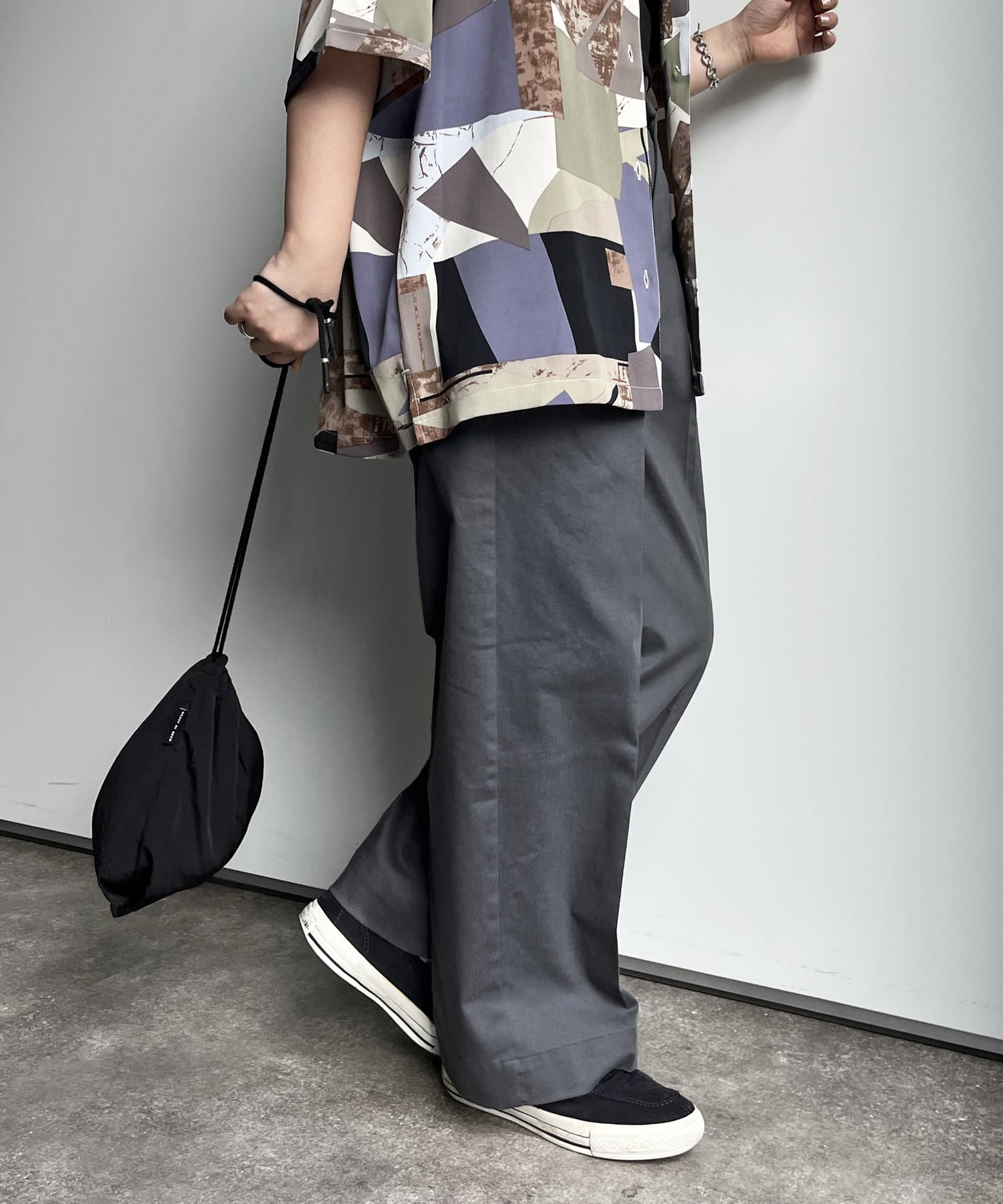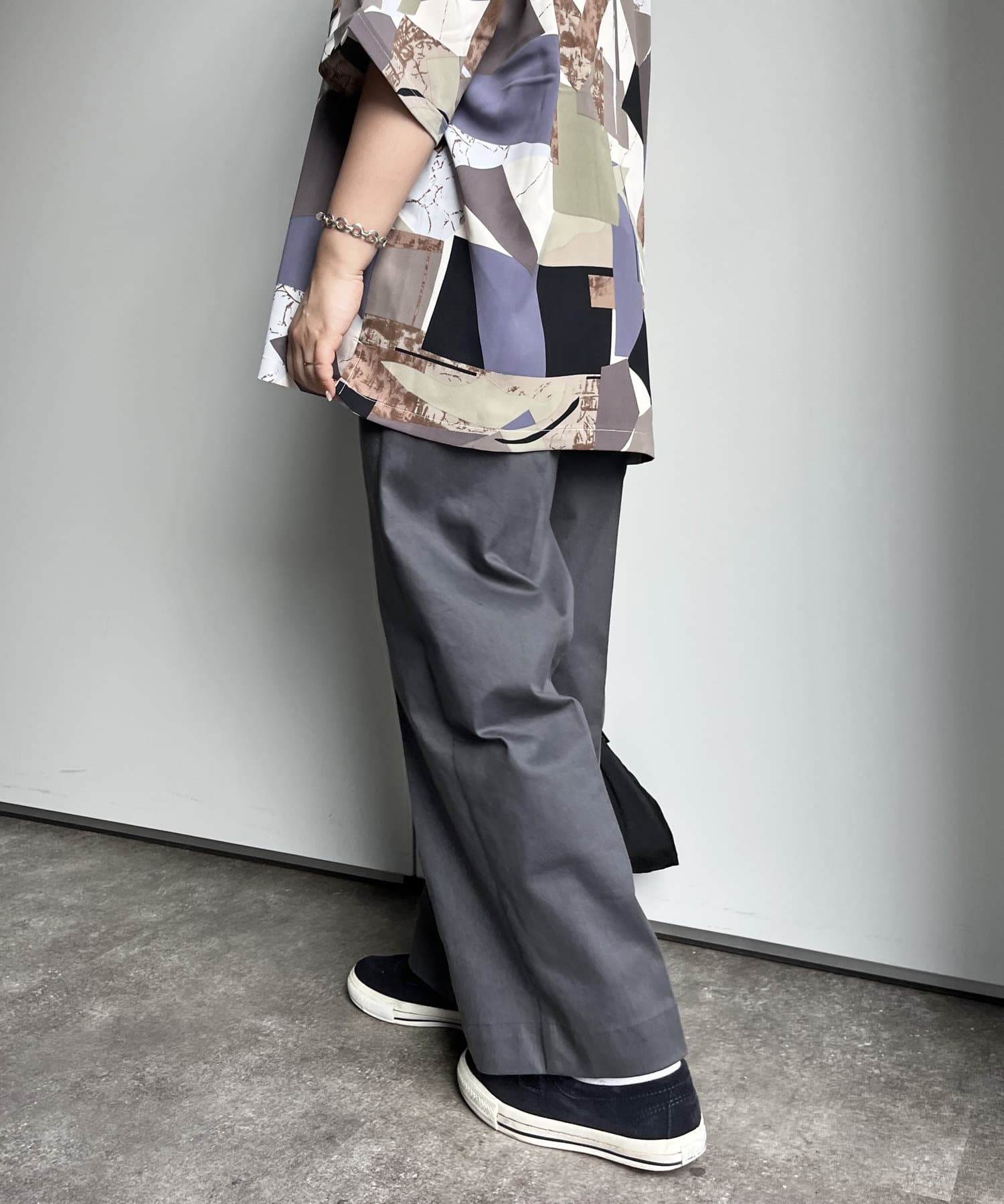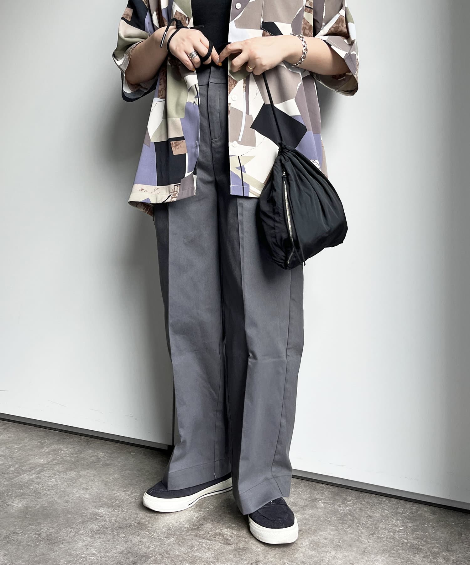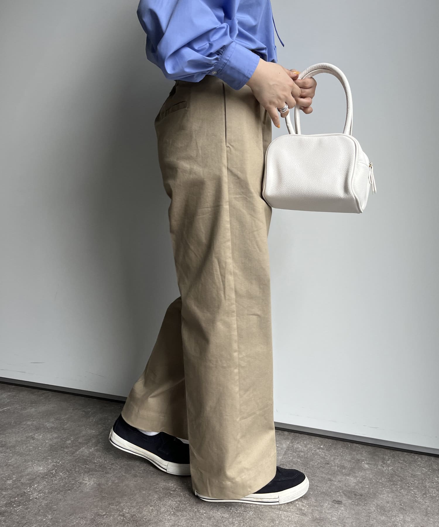 カジュアルにもキレイめにも合わせやすいハリのある生地で、幅広くスタイリングに馴染む1本です。