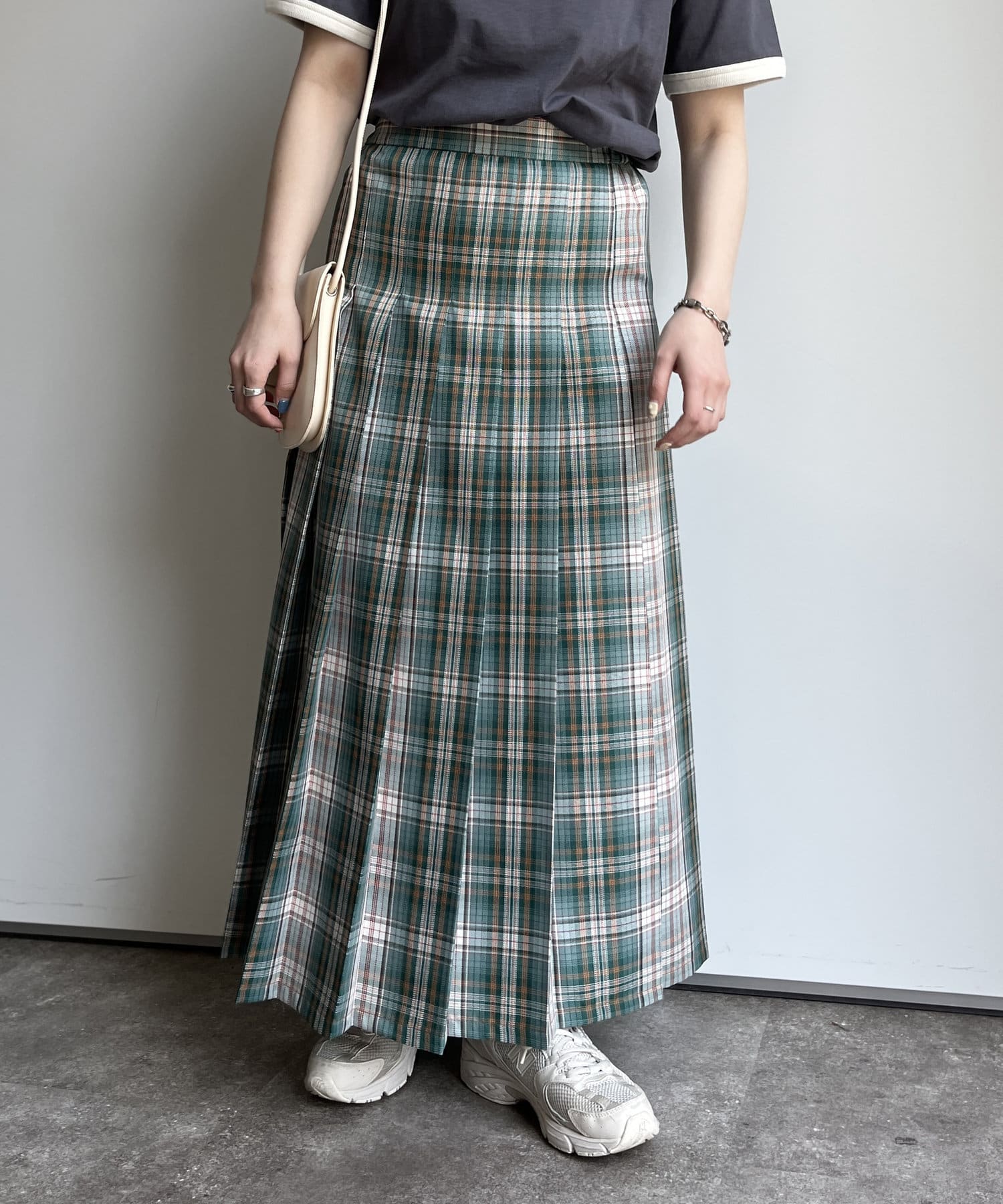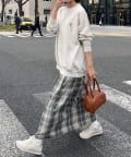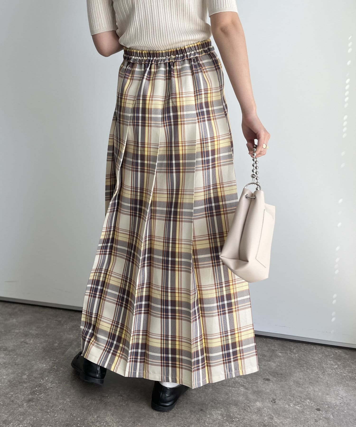 鮮やかで春らしい配色のチェック柄が目を惹くプリーツスカート