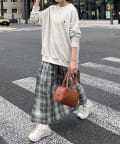 スウェットやロンTと合わせたカジュアルコーデはハイカットスニーカーと合わせるとまとまりが出て◎