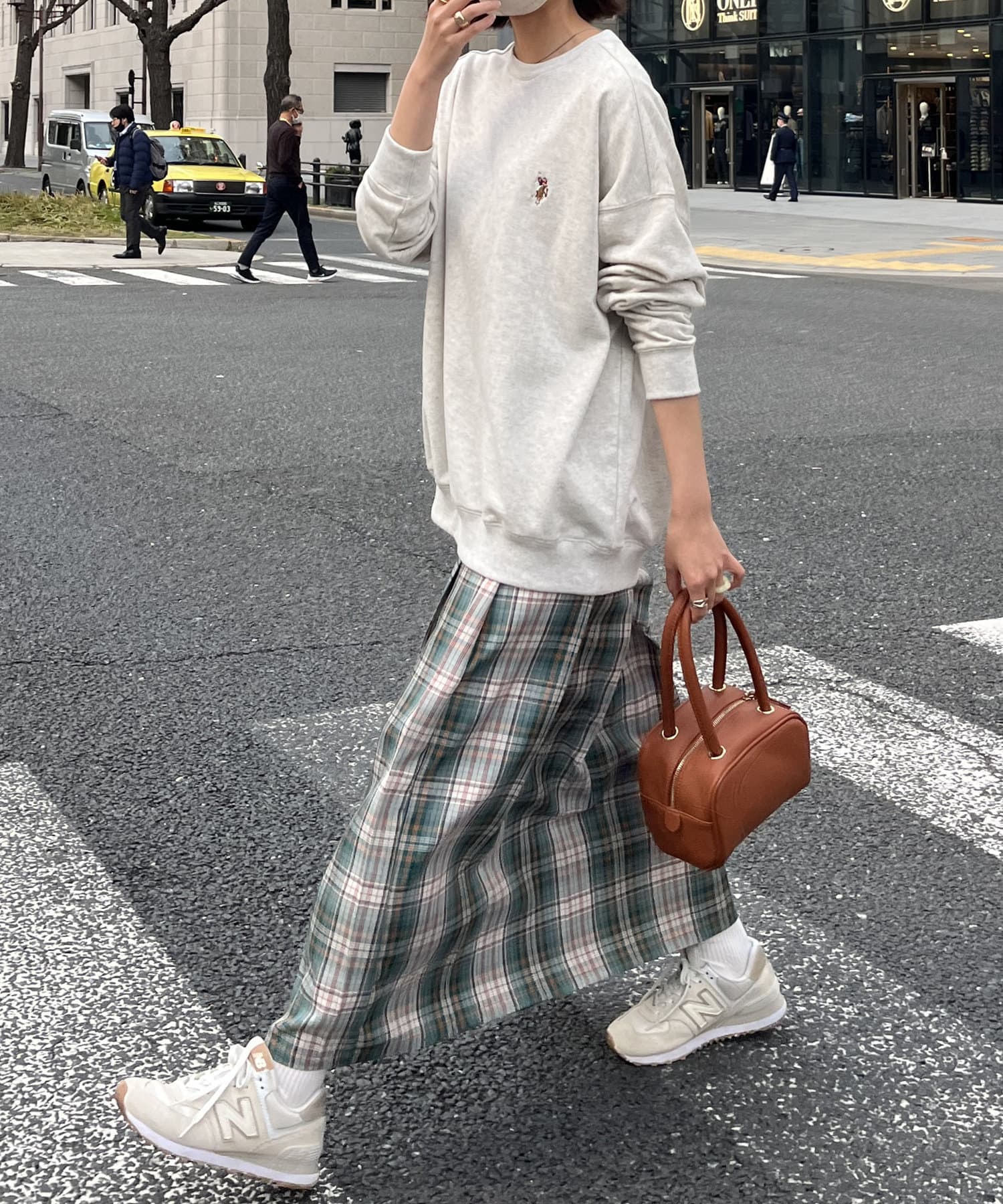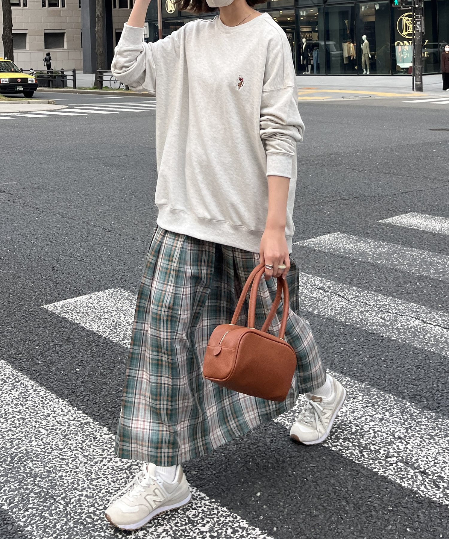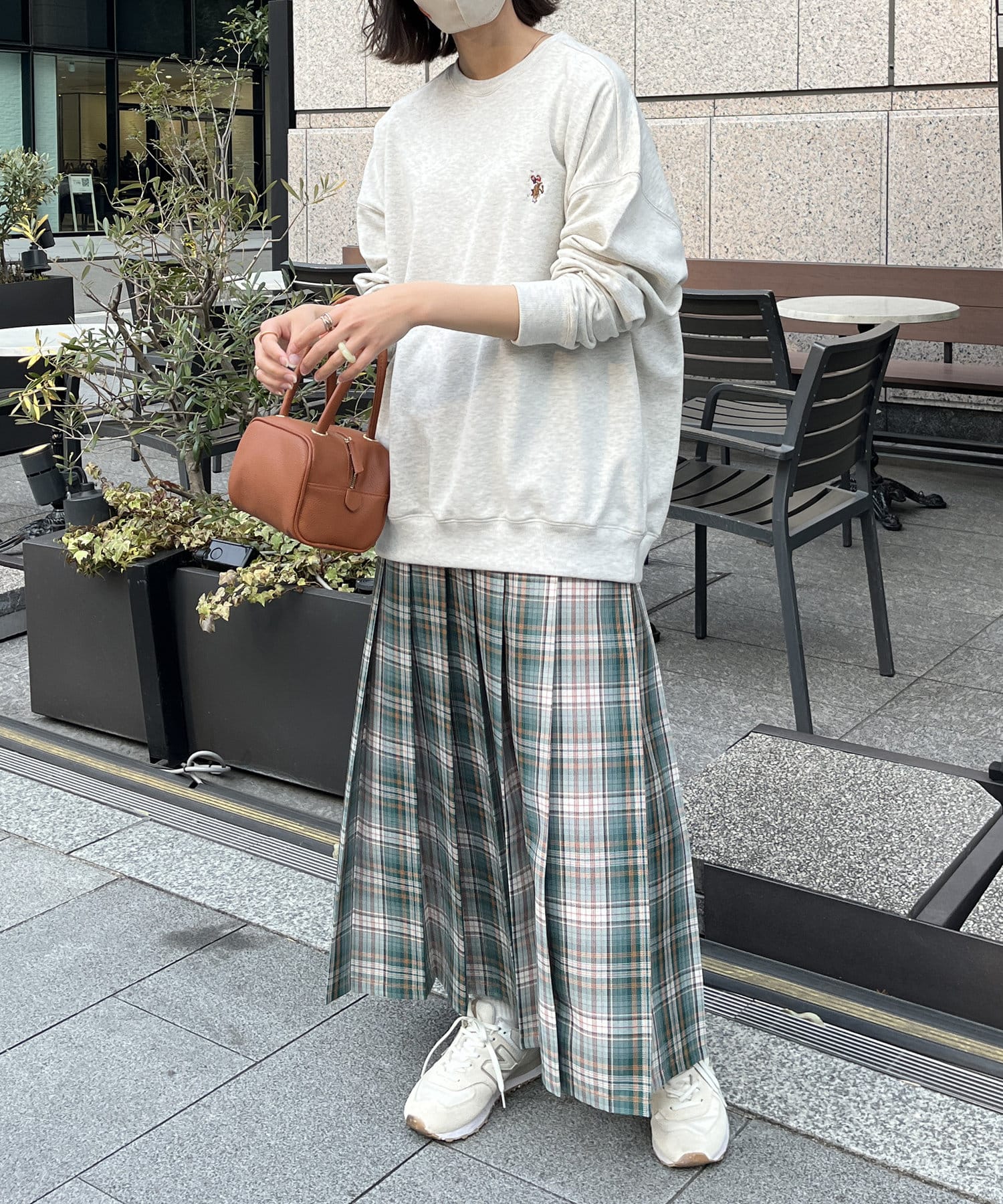 コーディネートが映える鮮やかな色合いのチェック柄が華やかさを演出。