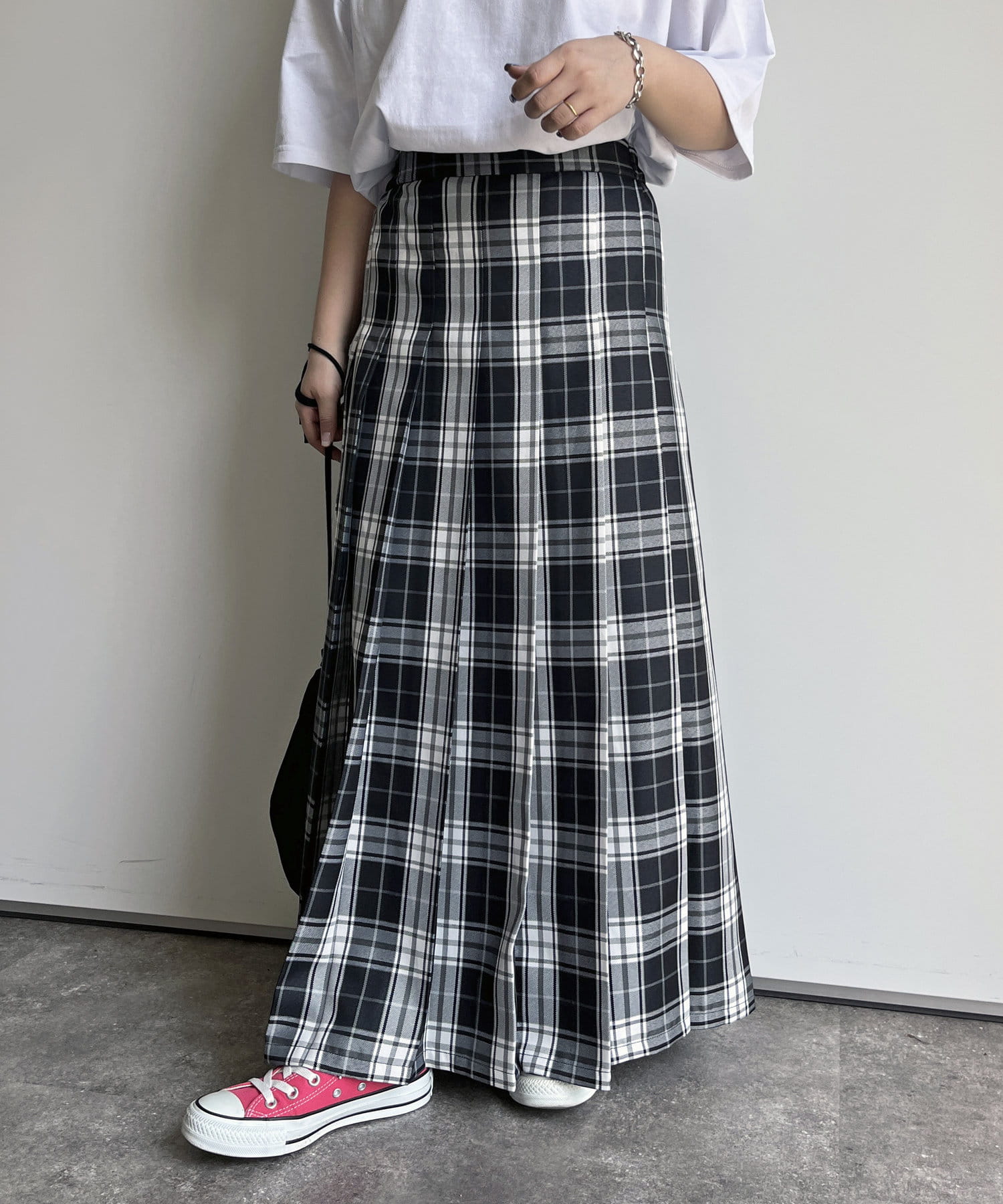 サマーチェックタックプリーツスカート