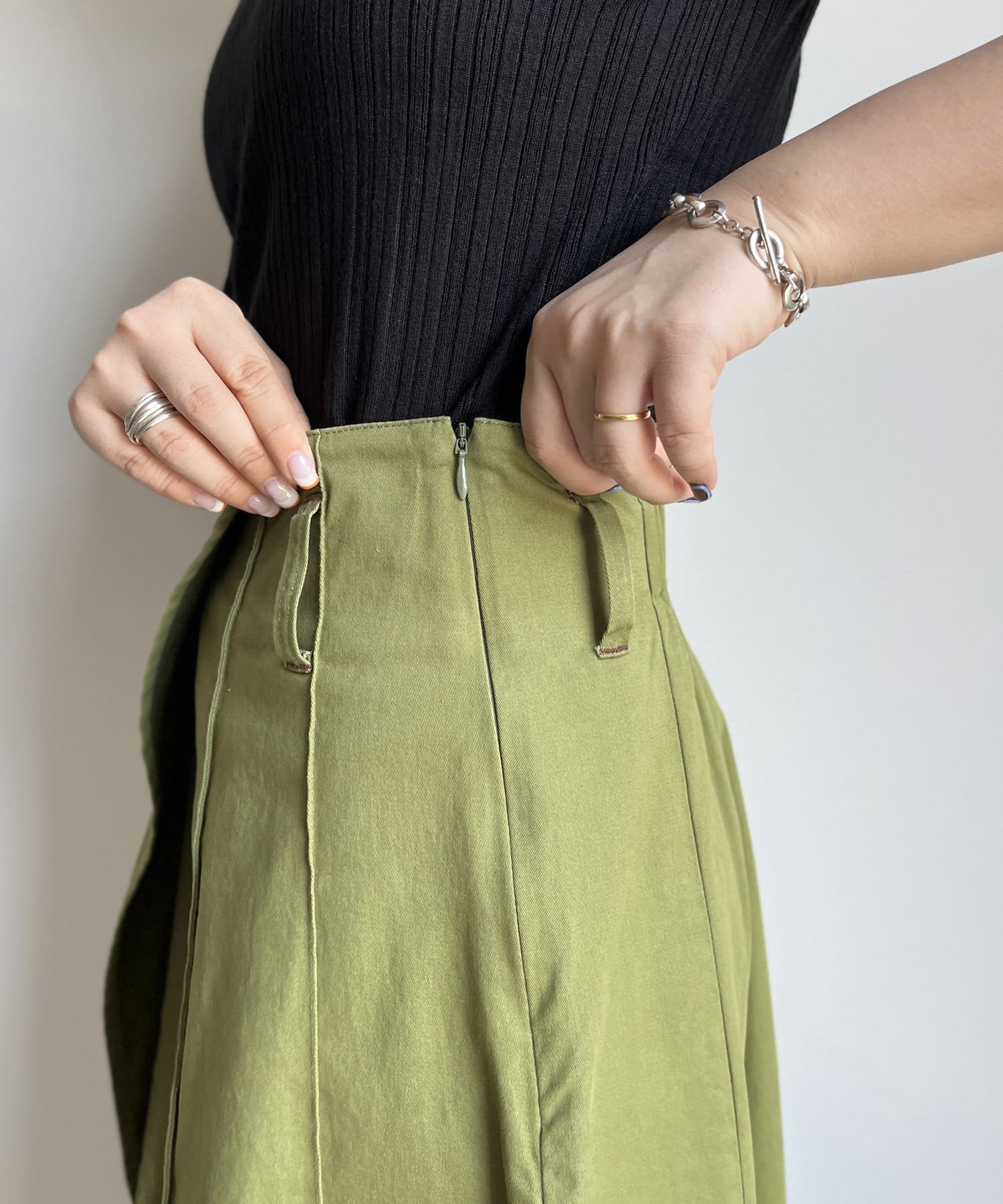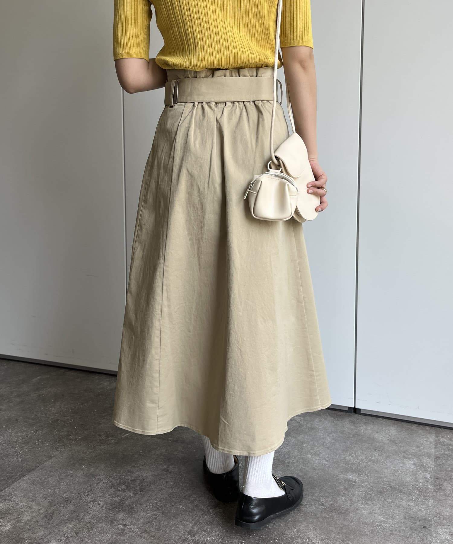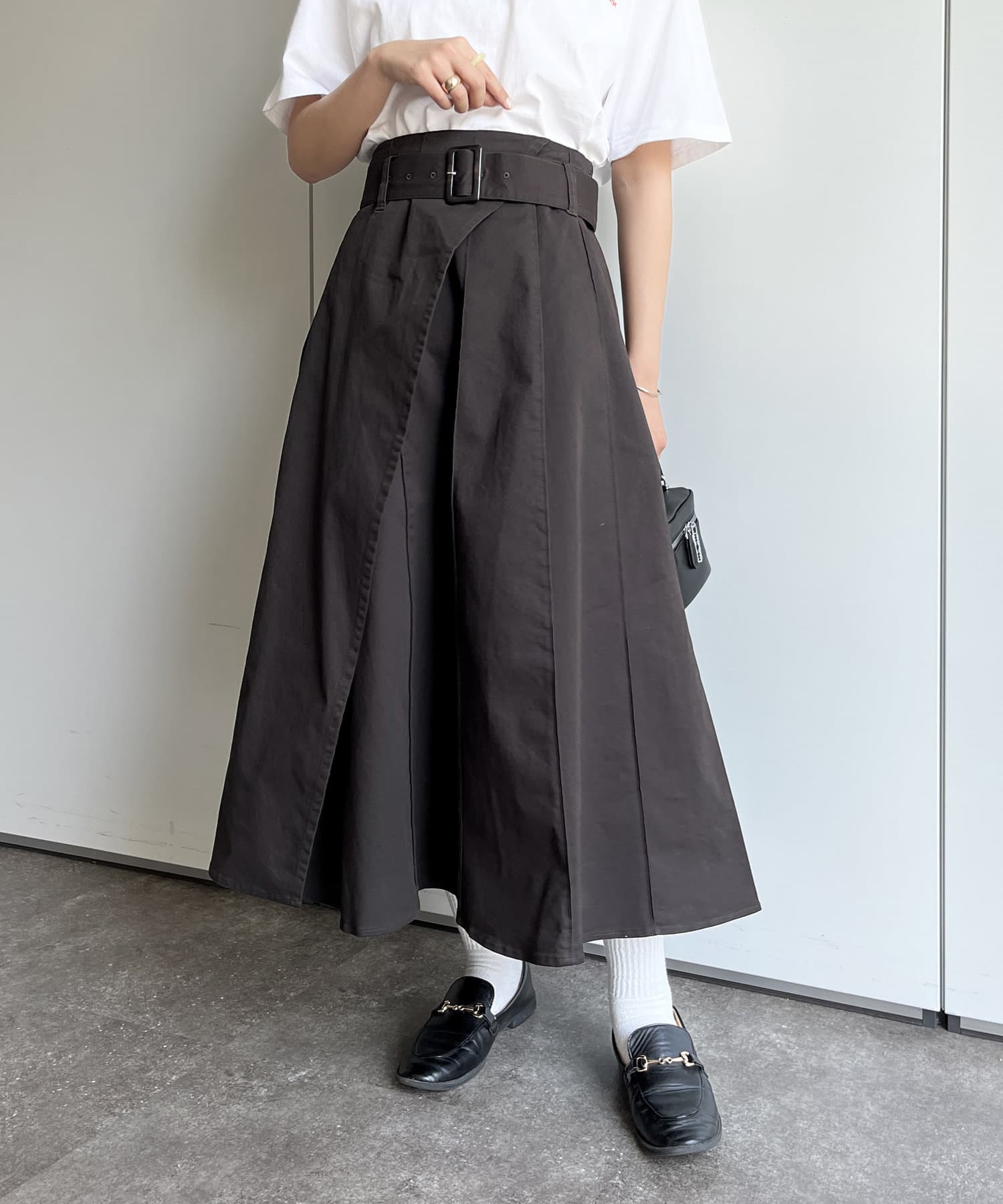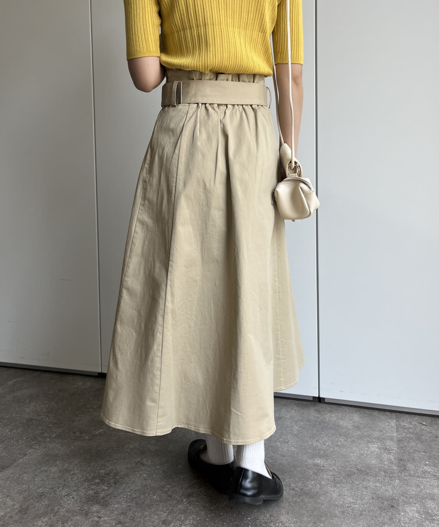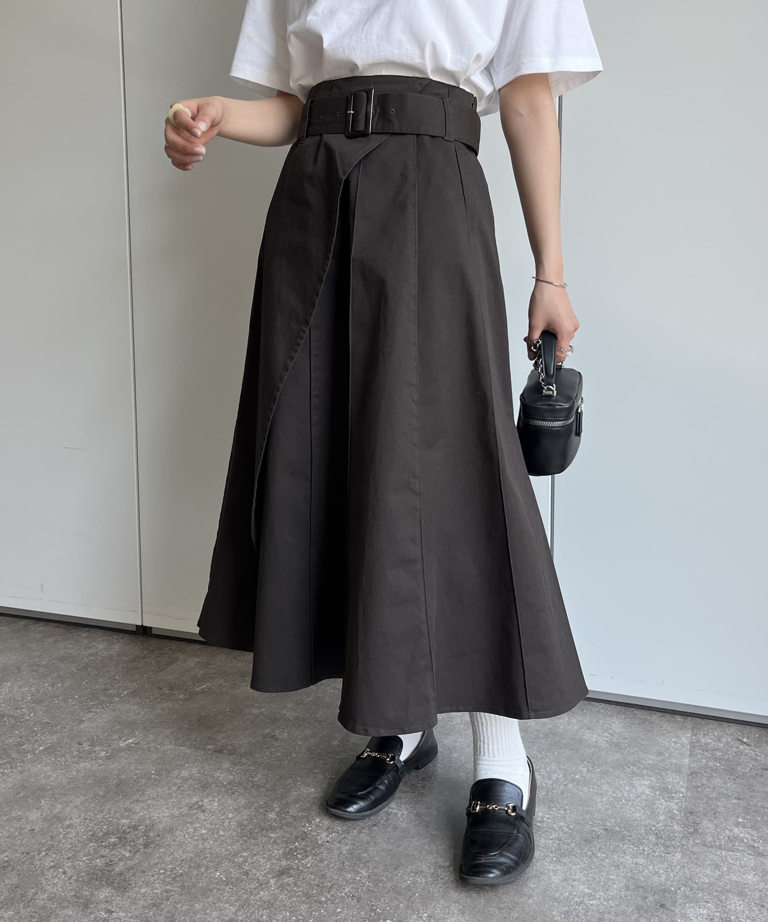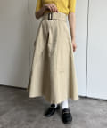 ベルト付きツイルフレアスカート