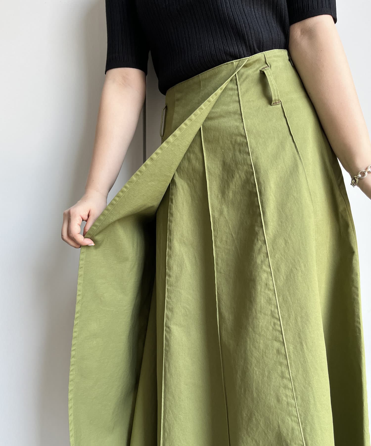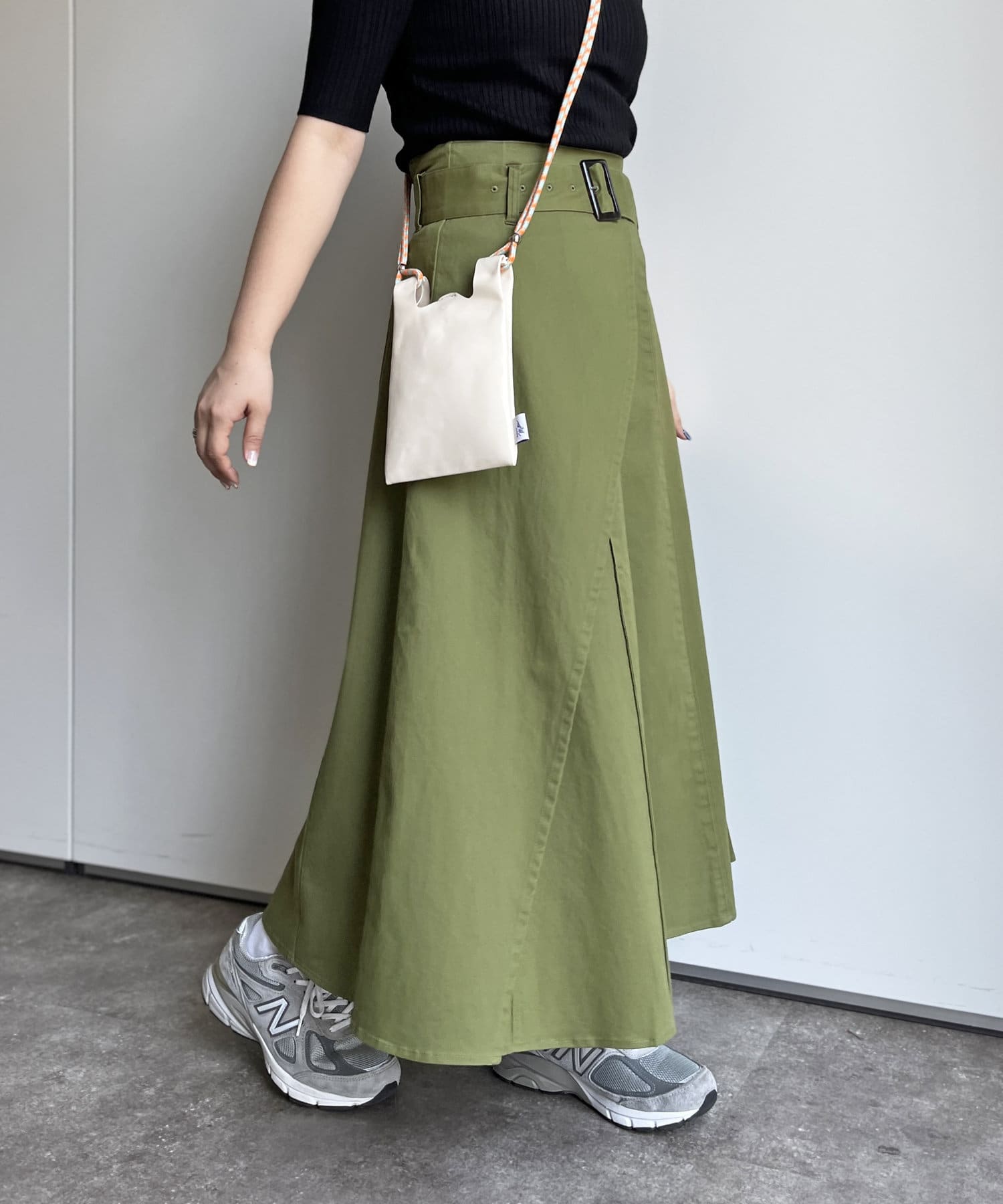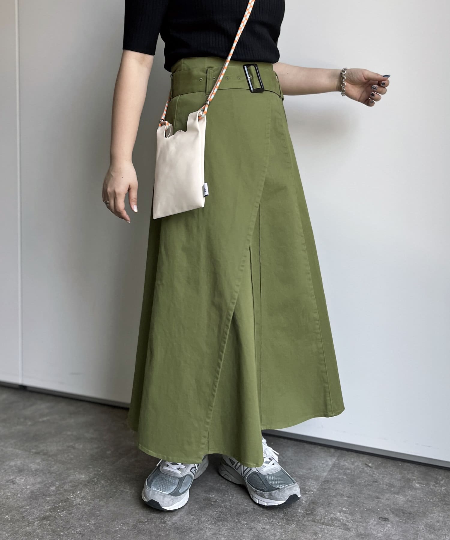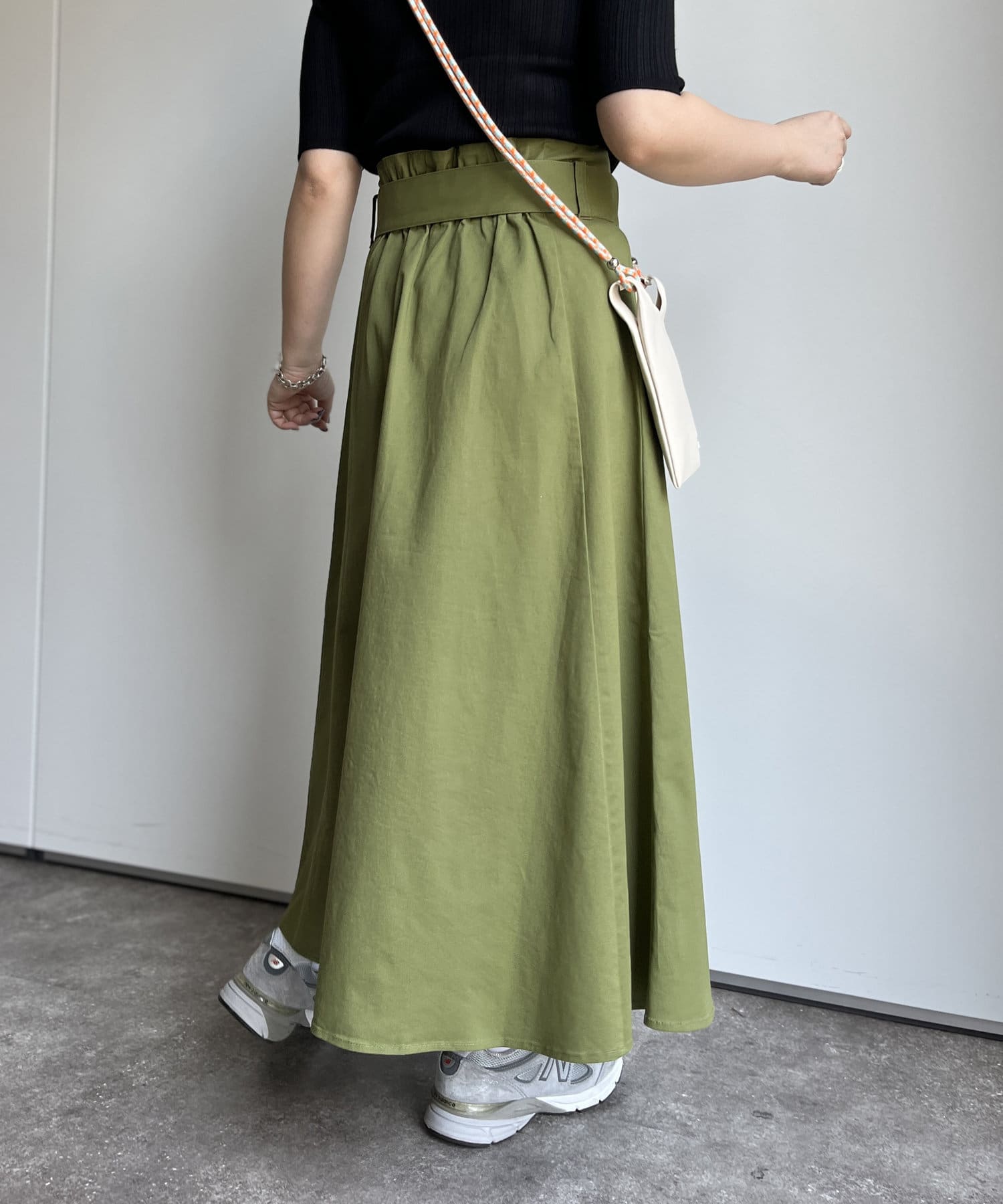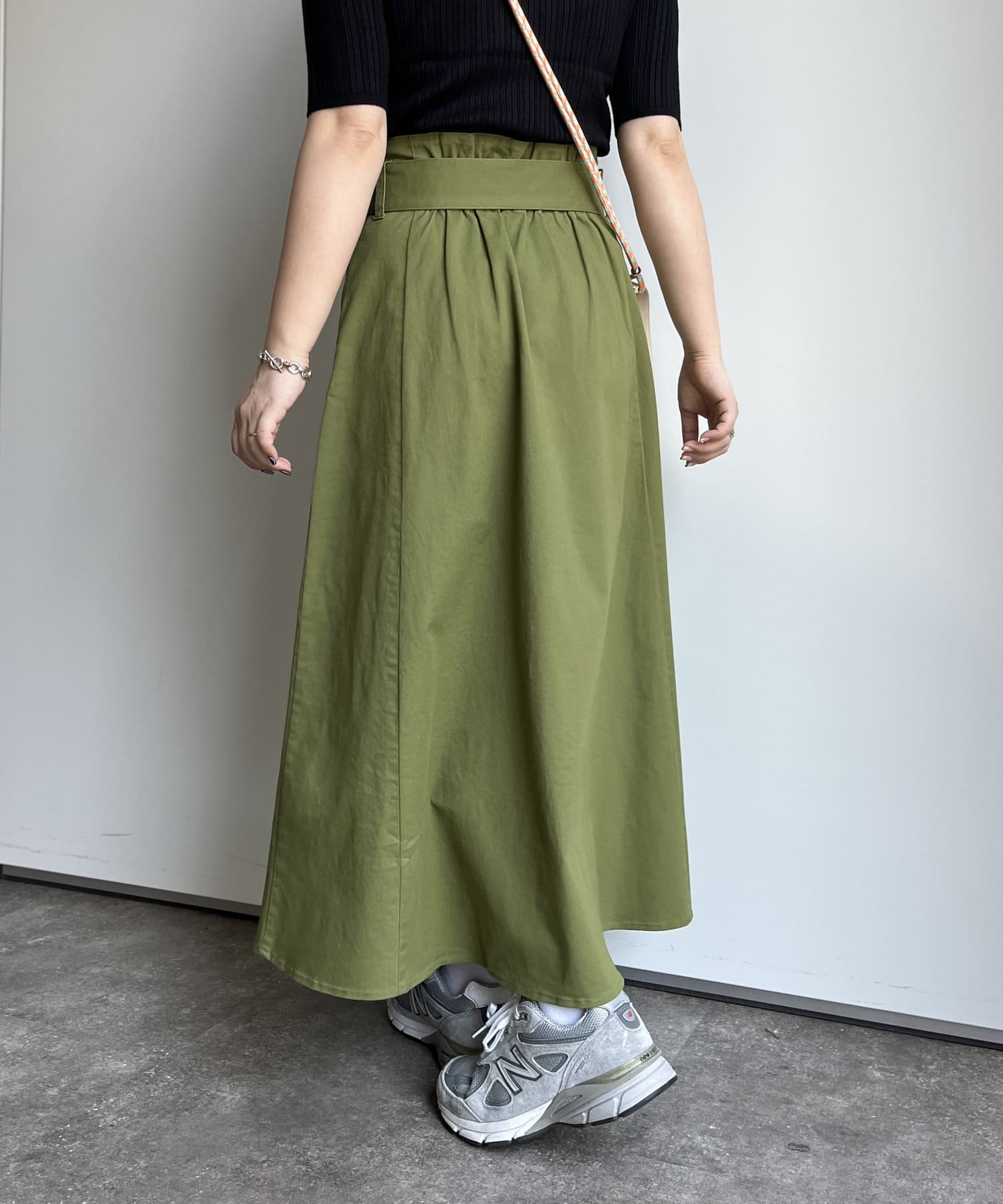 ベルト付きツイルフレアスカート