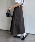 ・広がりすぎないAラインのシルエットが上品なロングスカート。