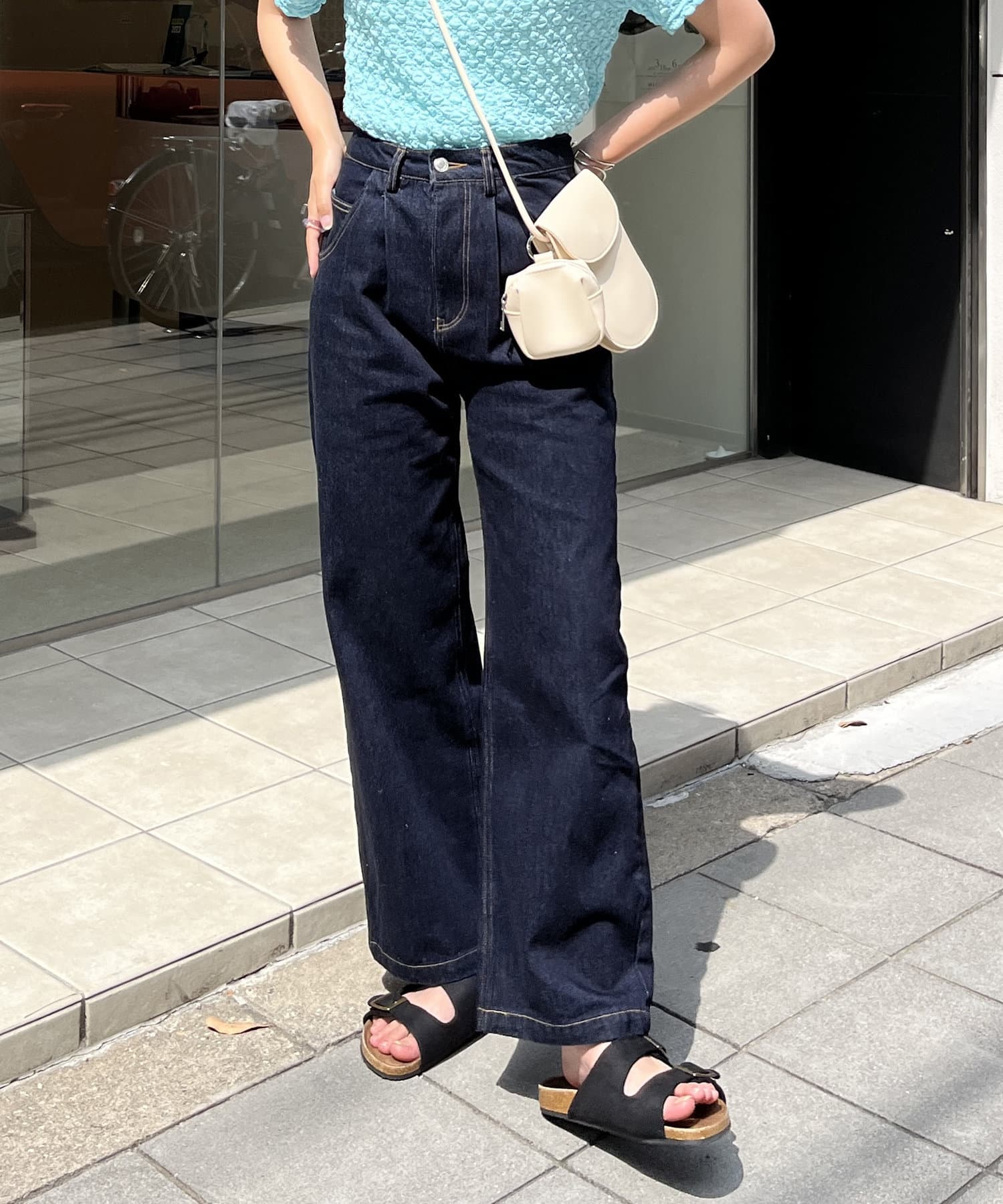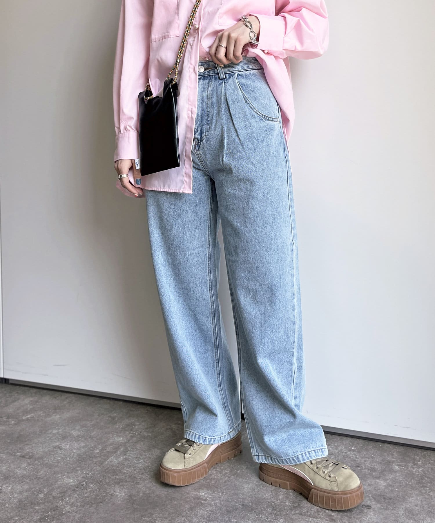 CPCM(シーピーシーエム) 【SNSで大人気!】タックデニムパンツ