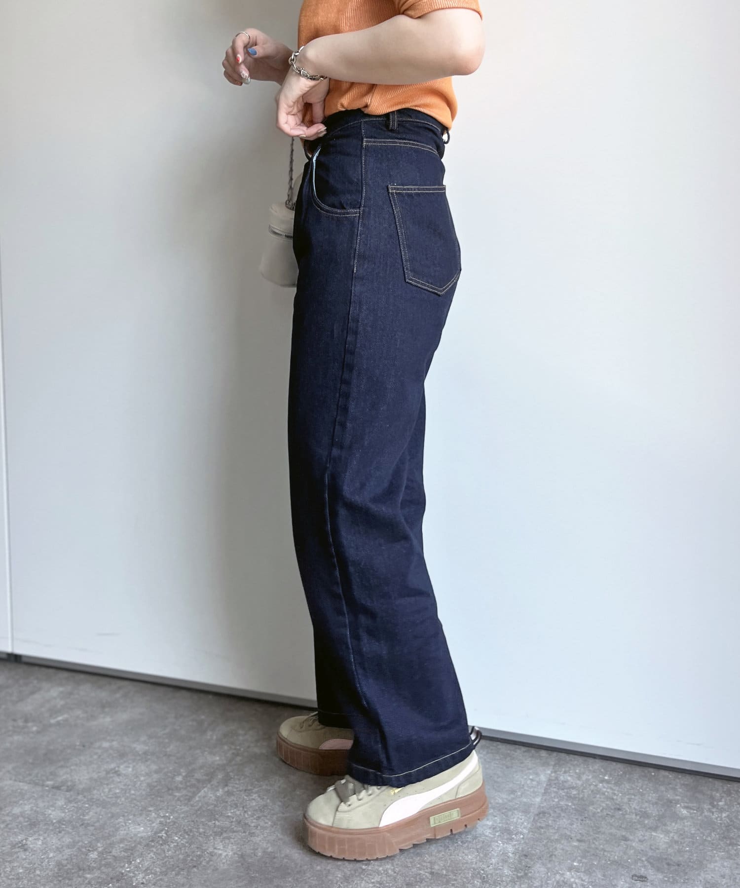 程よくワイドなシルエットで脚のラインを拾いにくく、幅広いテイストにマッチする1本。