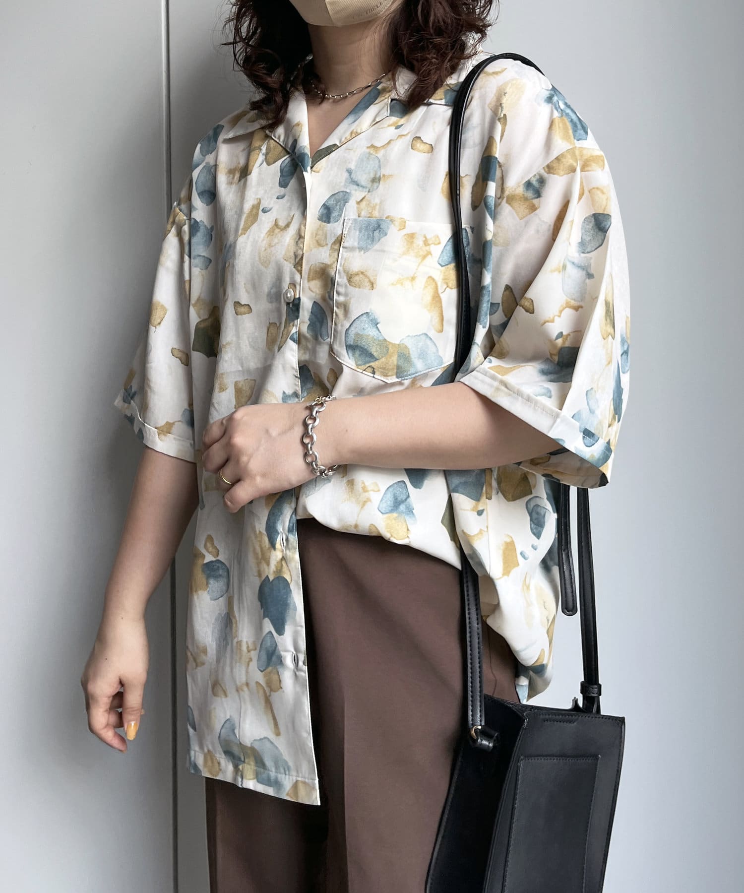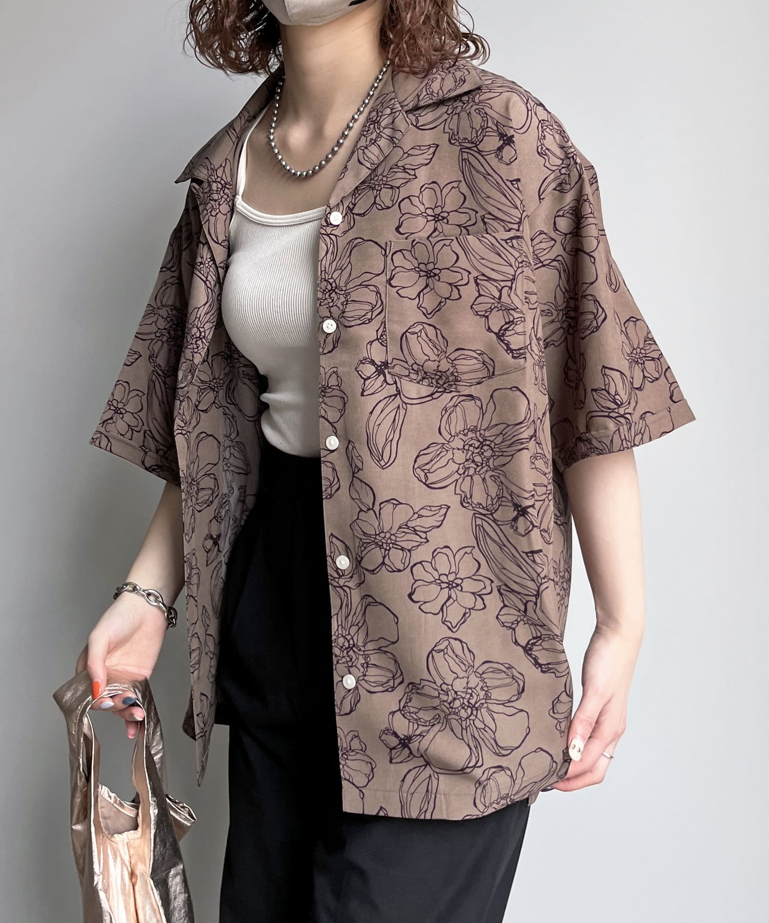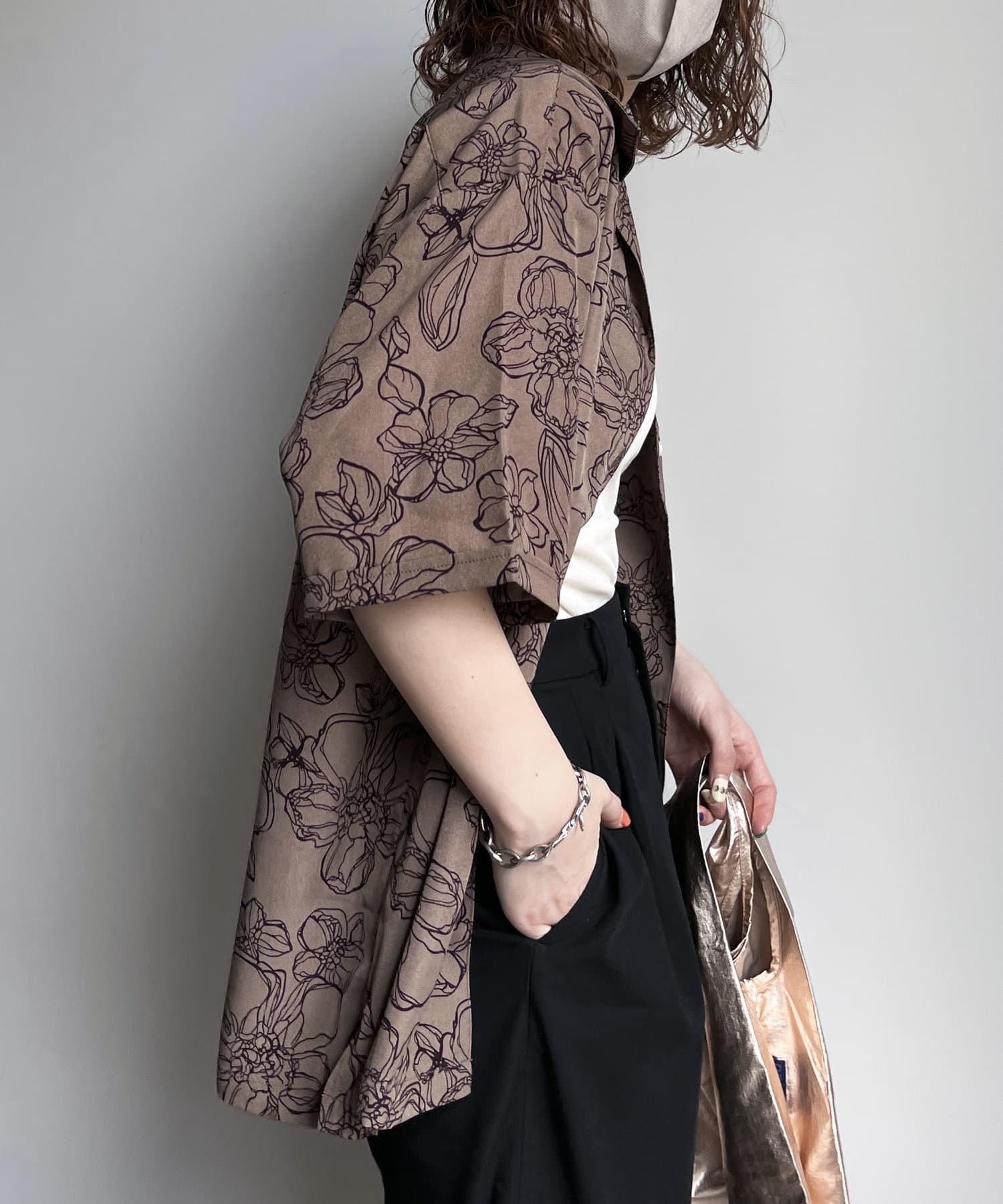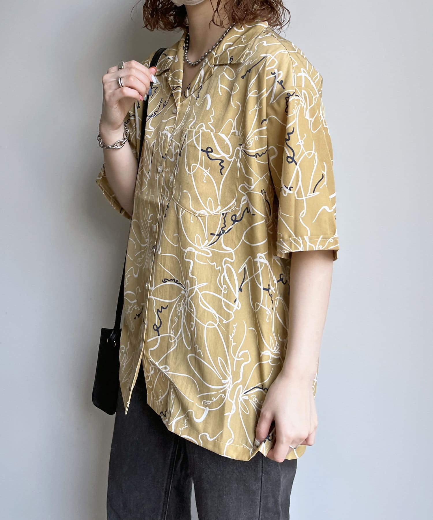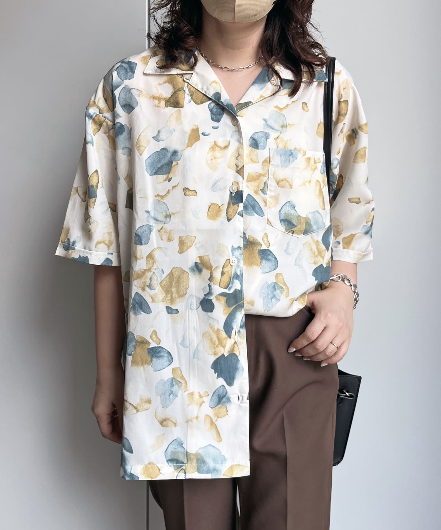 トレンド感のある様々な総柄パターンを採用し、肩の落ち感がリラックスムード漂う1枚。