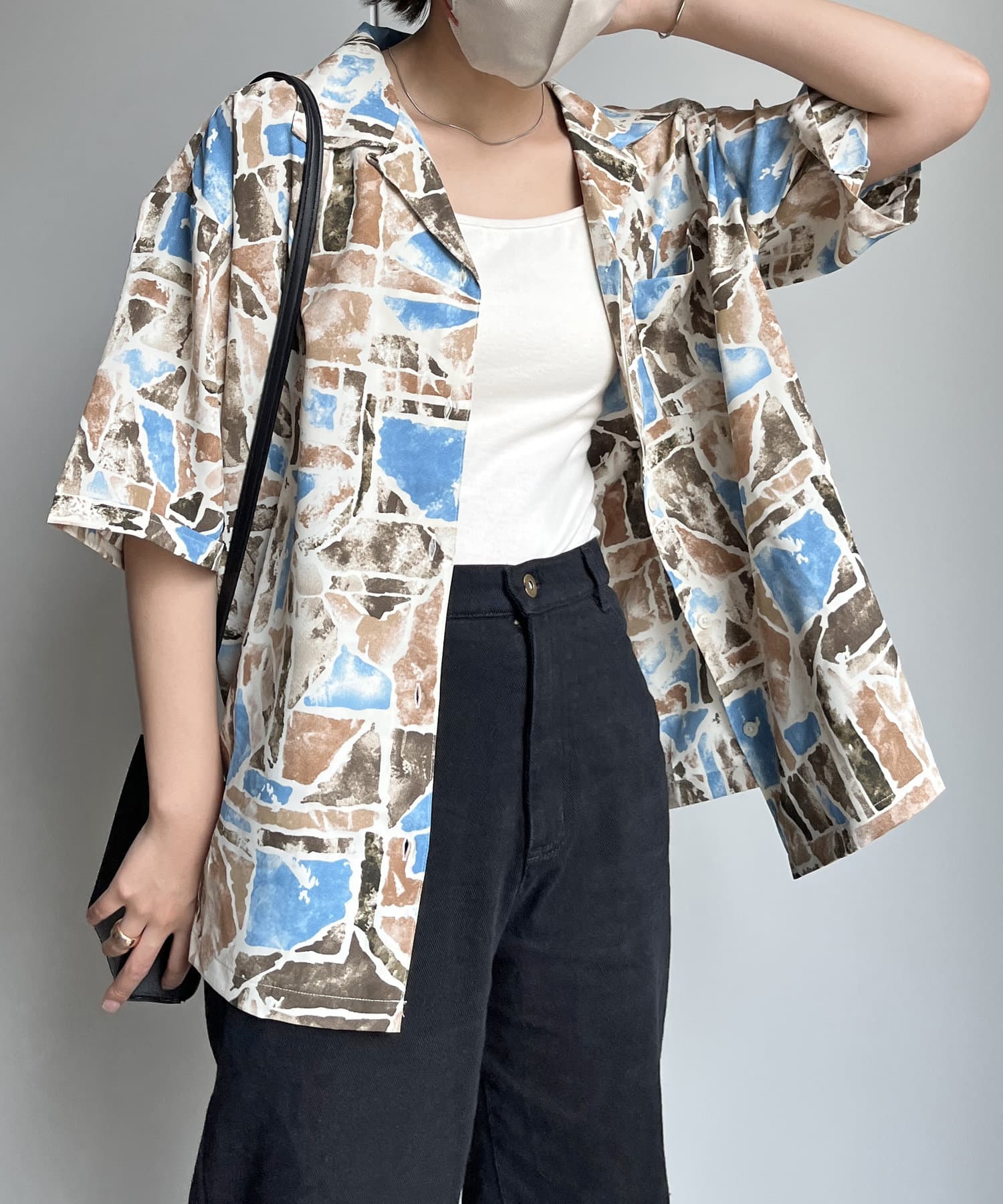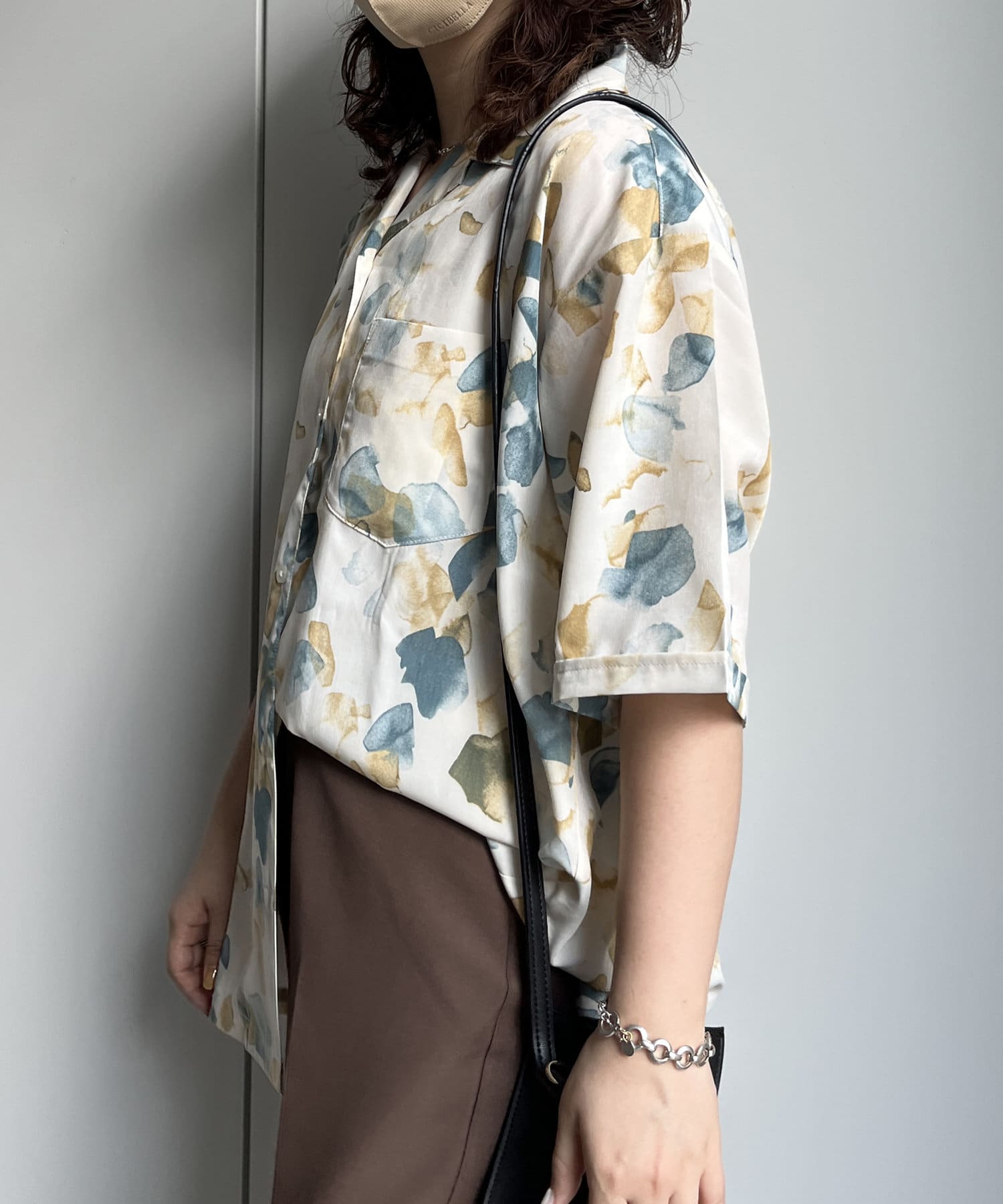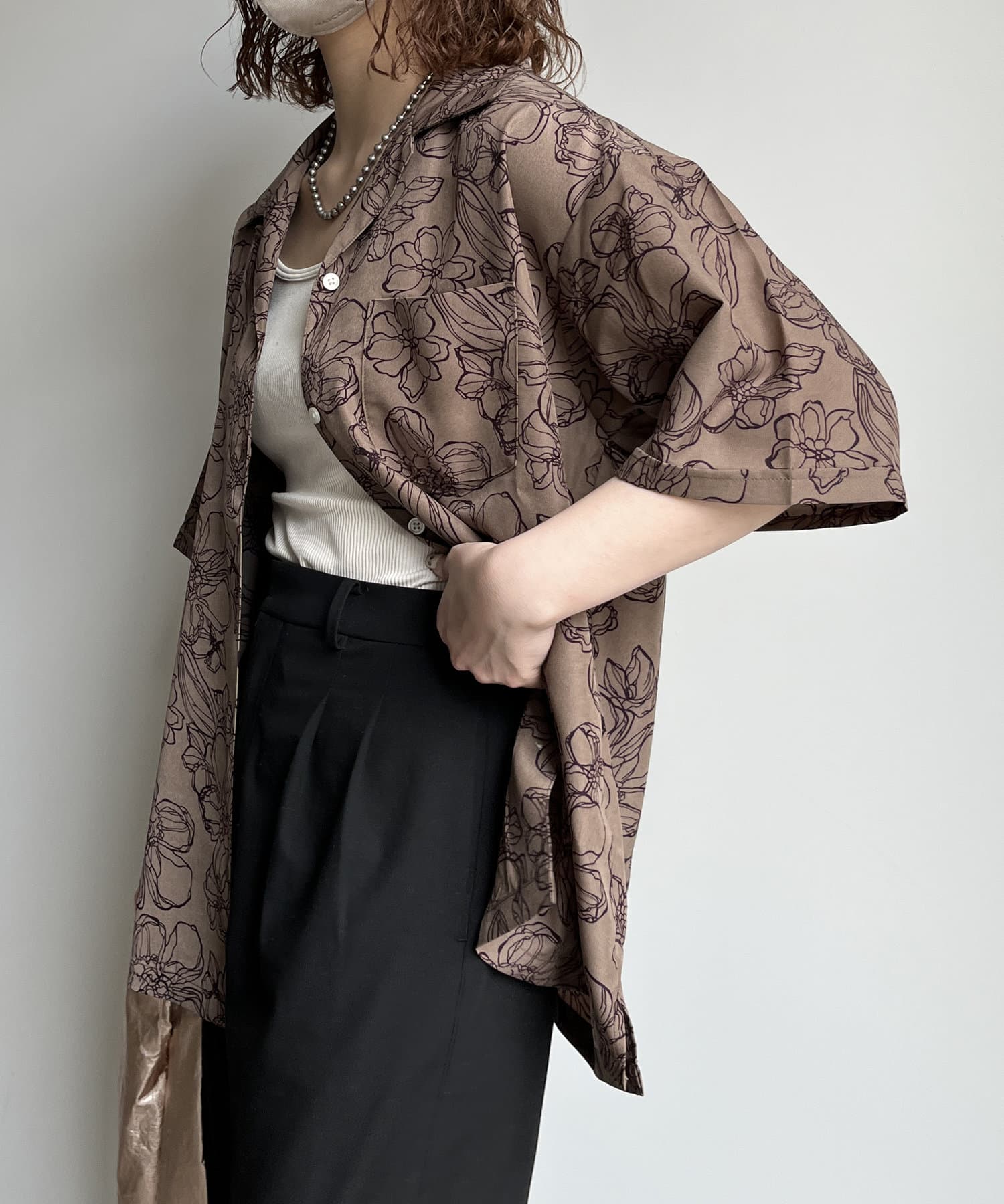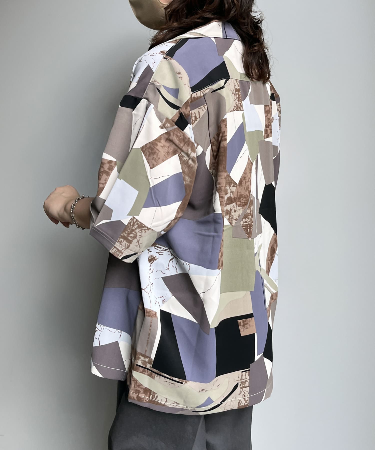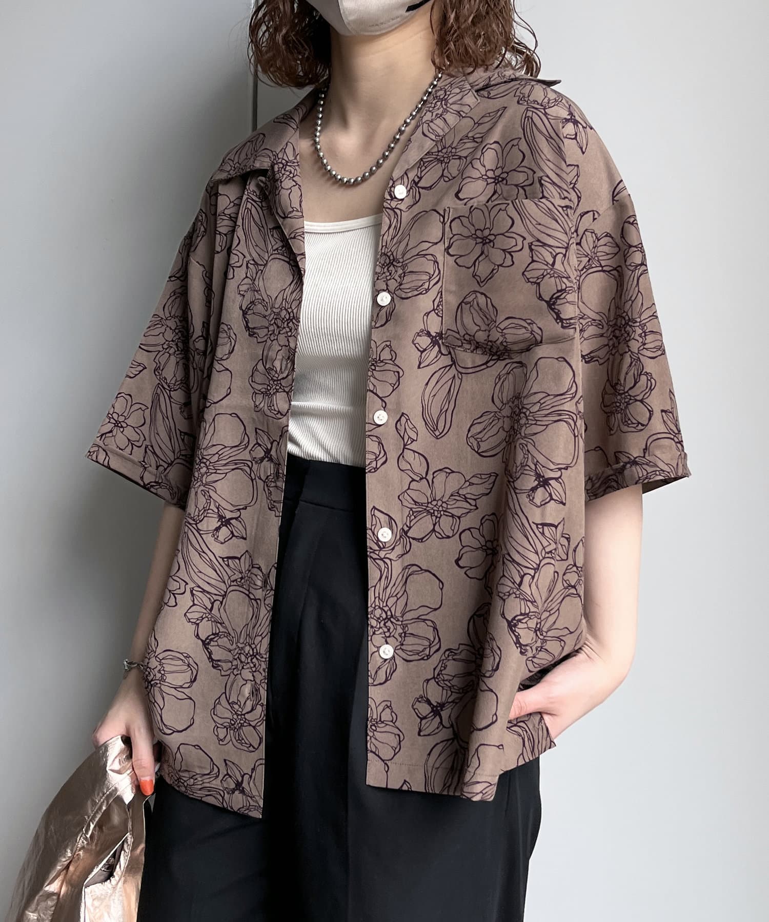 トレンド感のある様々な総柄パターンを採用し、肩の落ち感がリラックスムード漂う1枚。