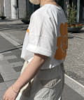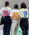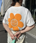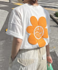 シンプルな白Tに、ぷくぷくとしたオレンジ色のお花のロゴがインパクトあってとても可愛いです!