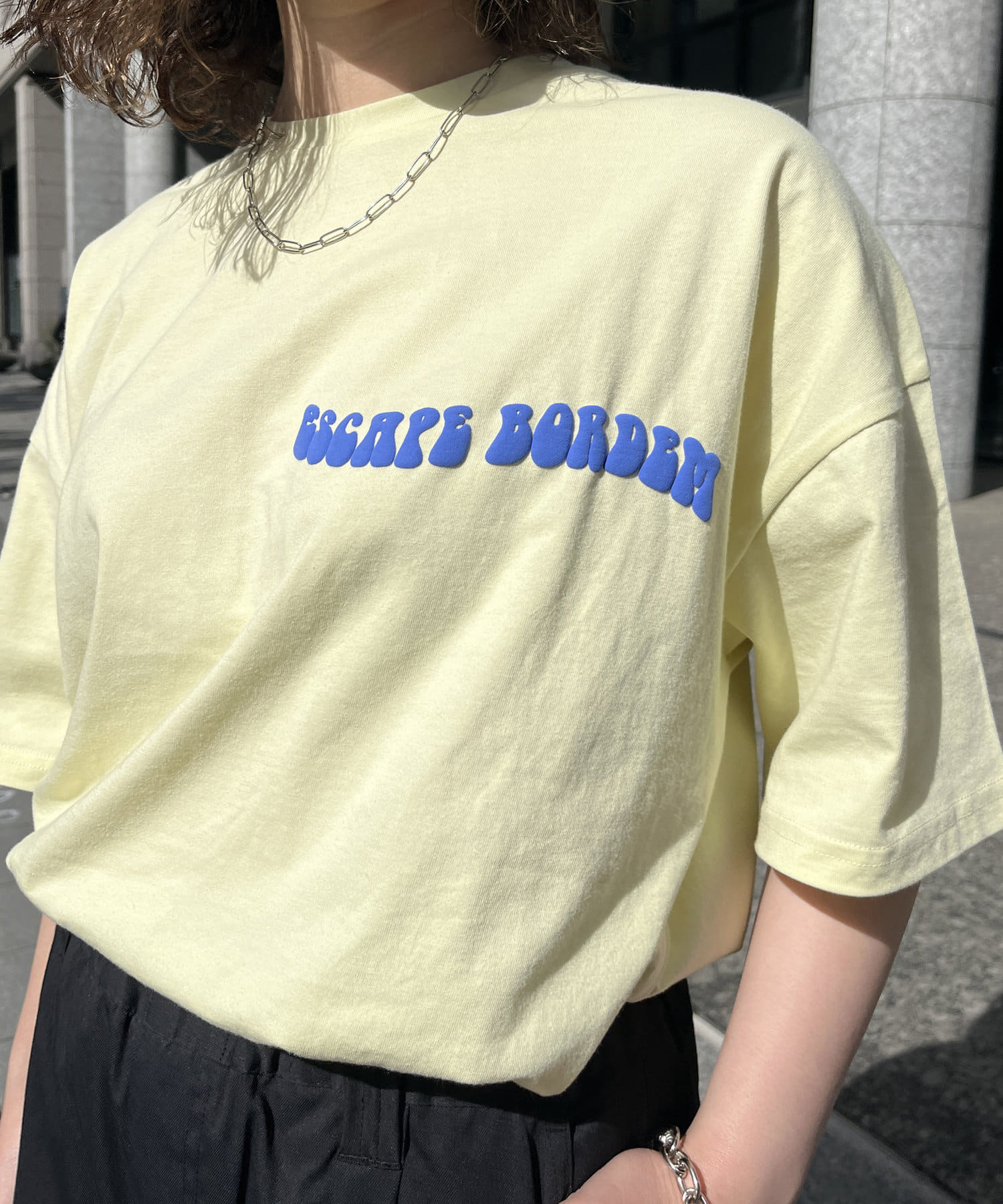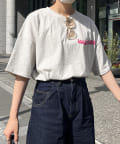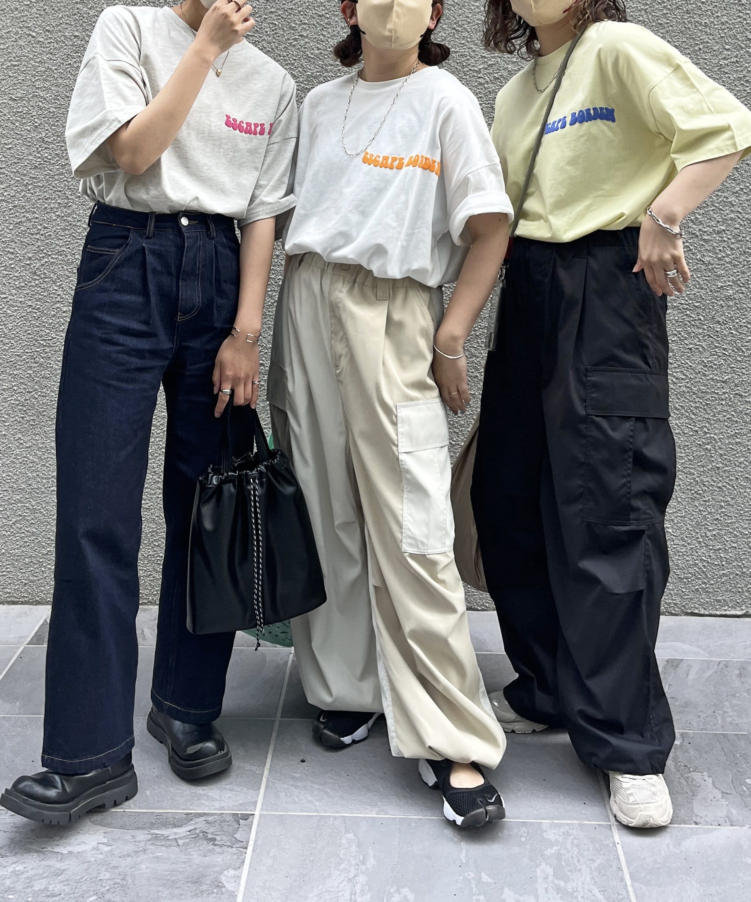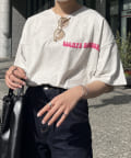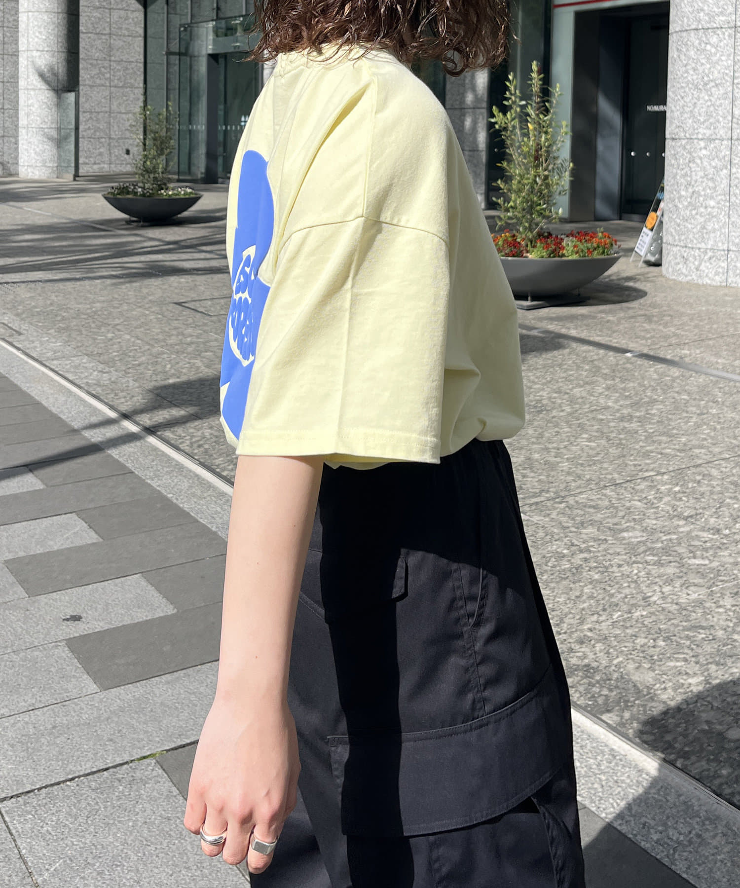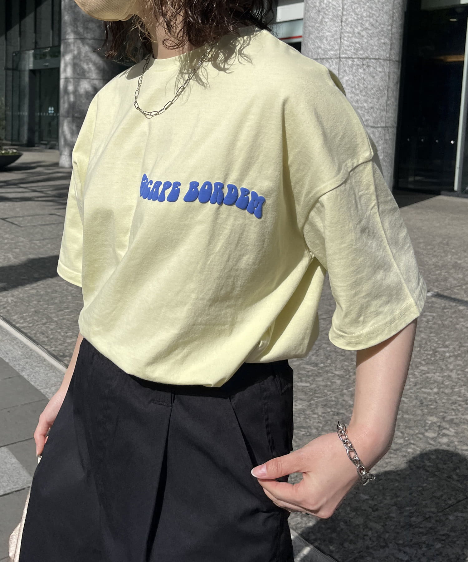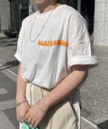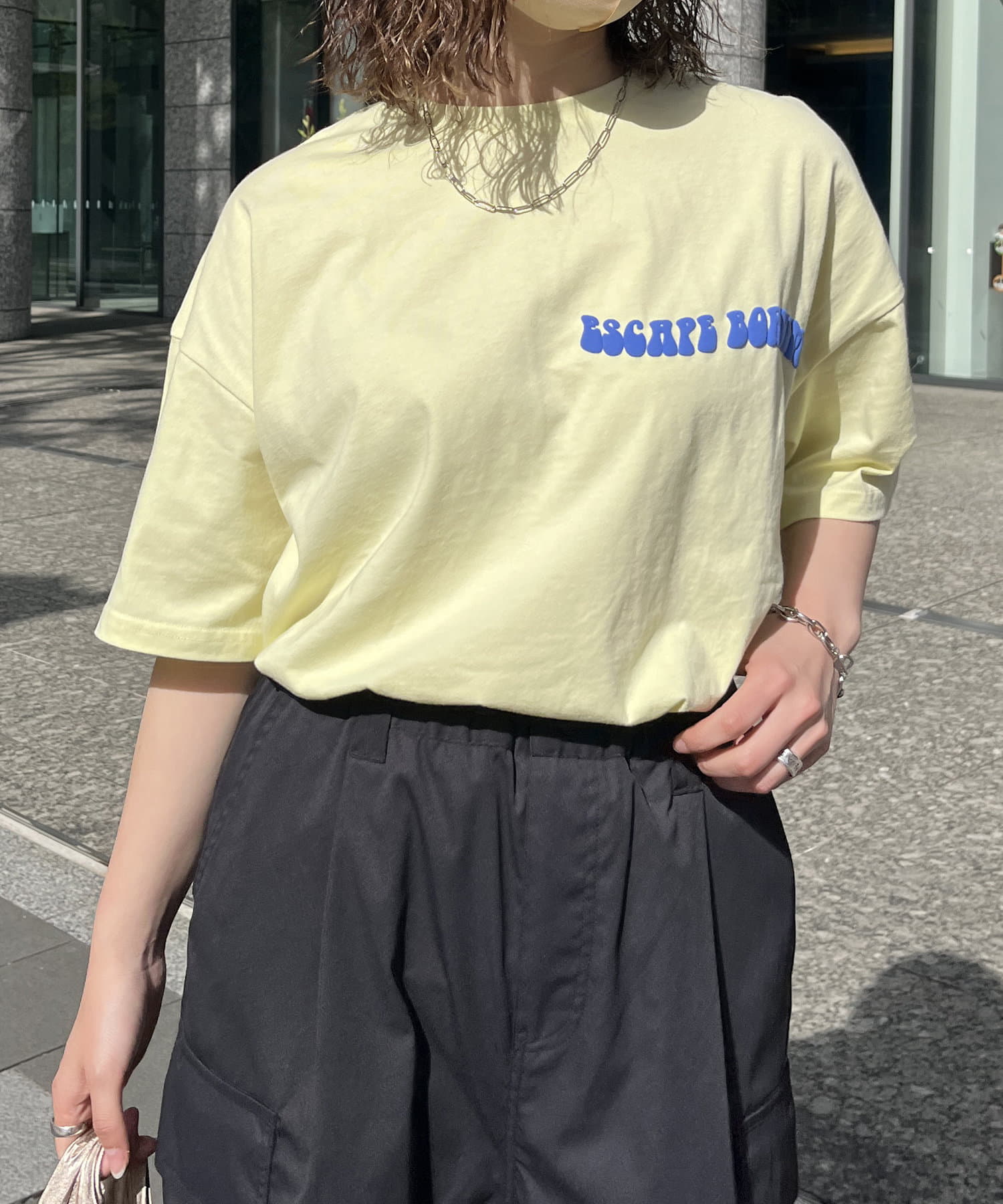 ゆったりとしたビッグシルエットなTシャツはボトムを選ばず、タイトなパンツからスカートまで幅広いボトムと好相性。