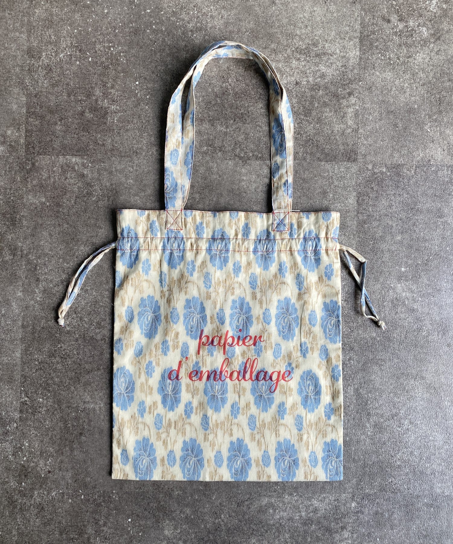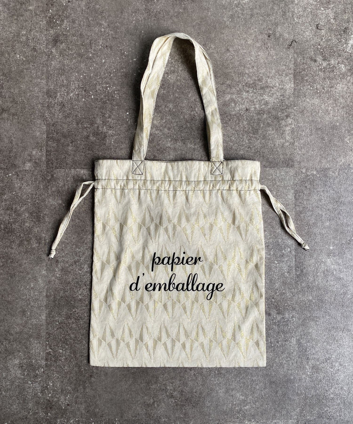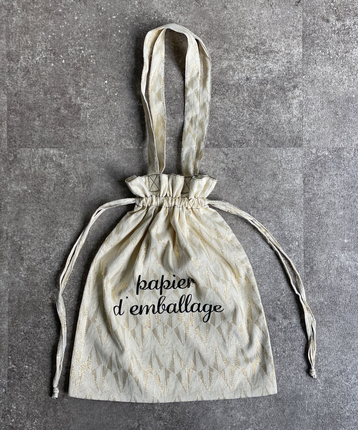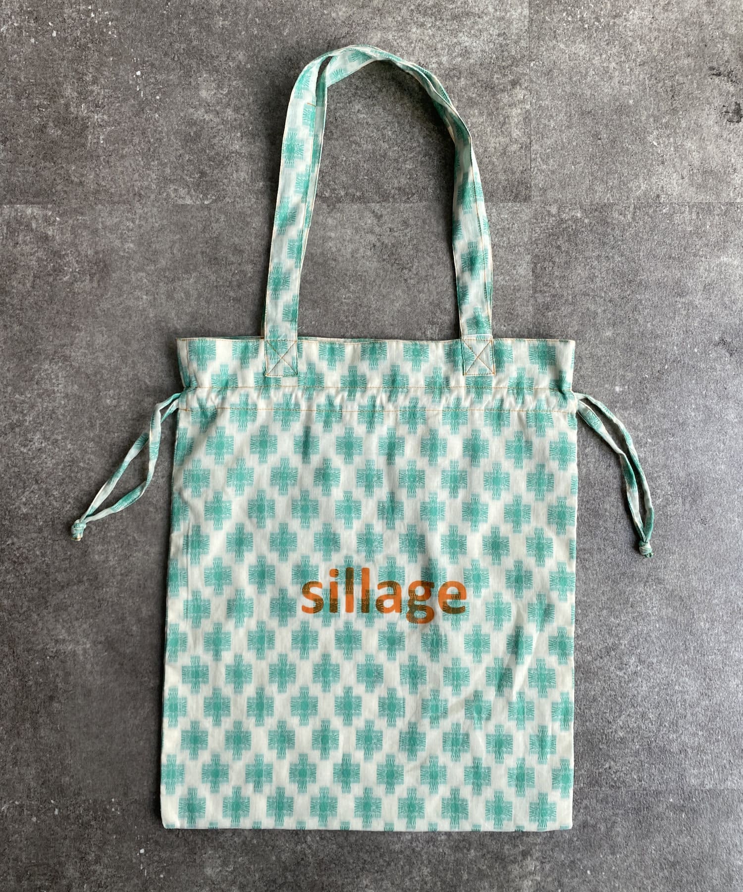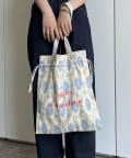 淡いエスニック柄がポイントの巾着トートバッグ