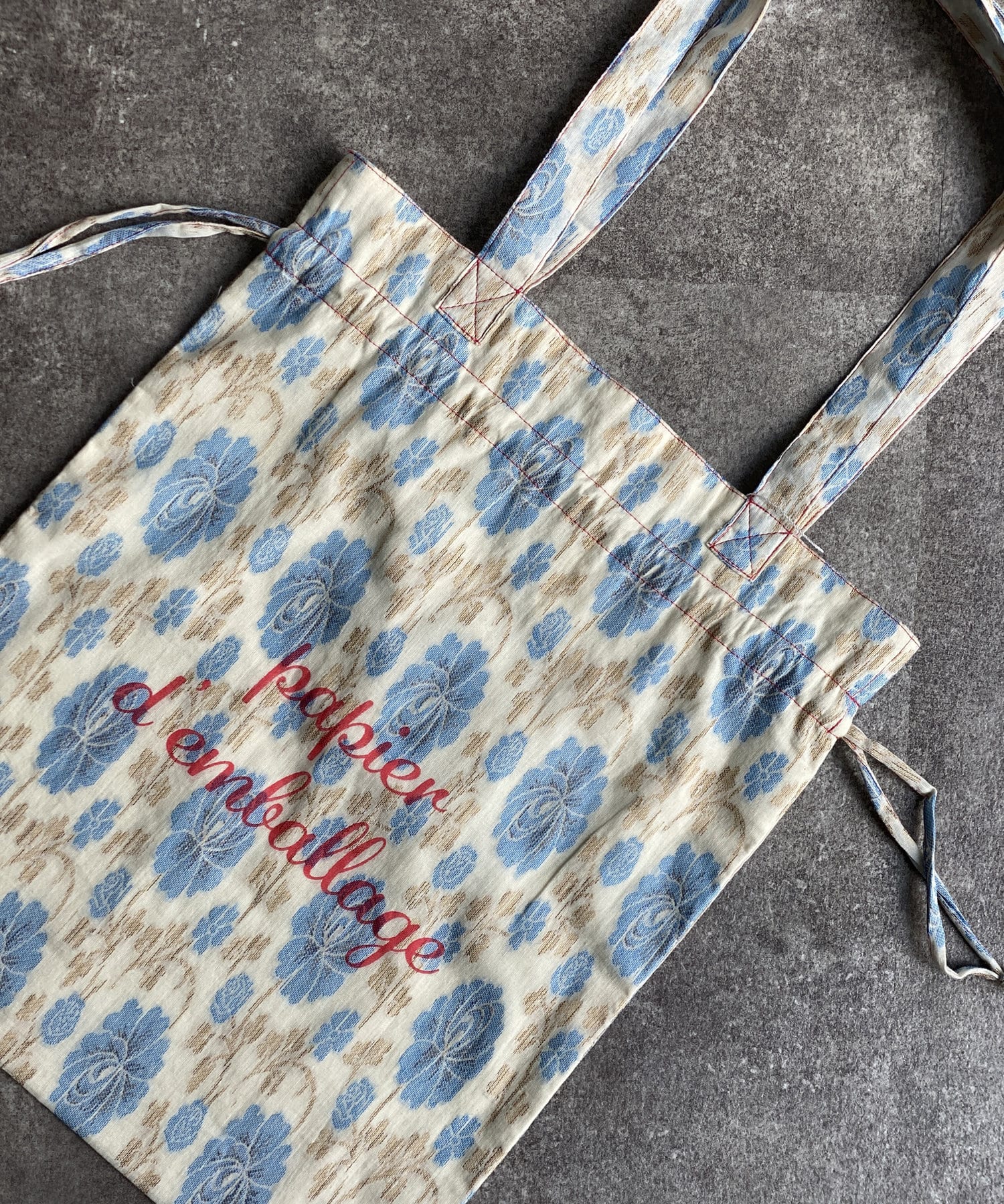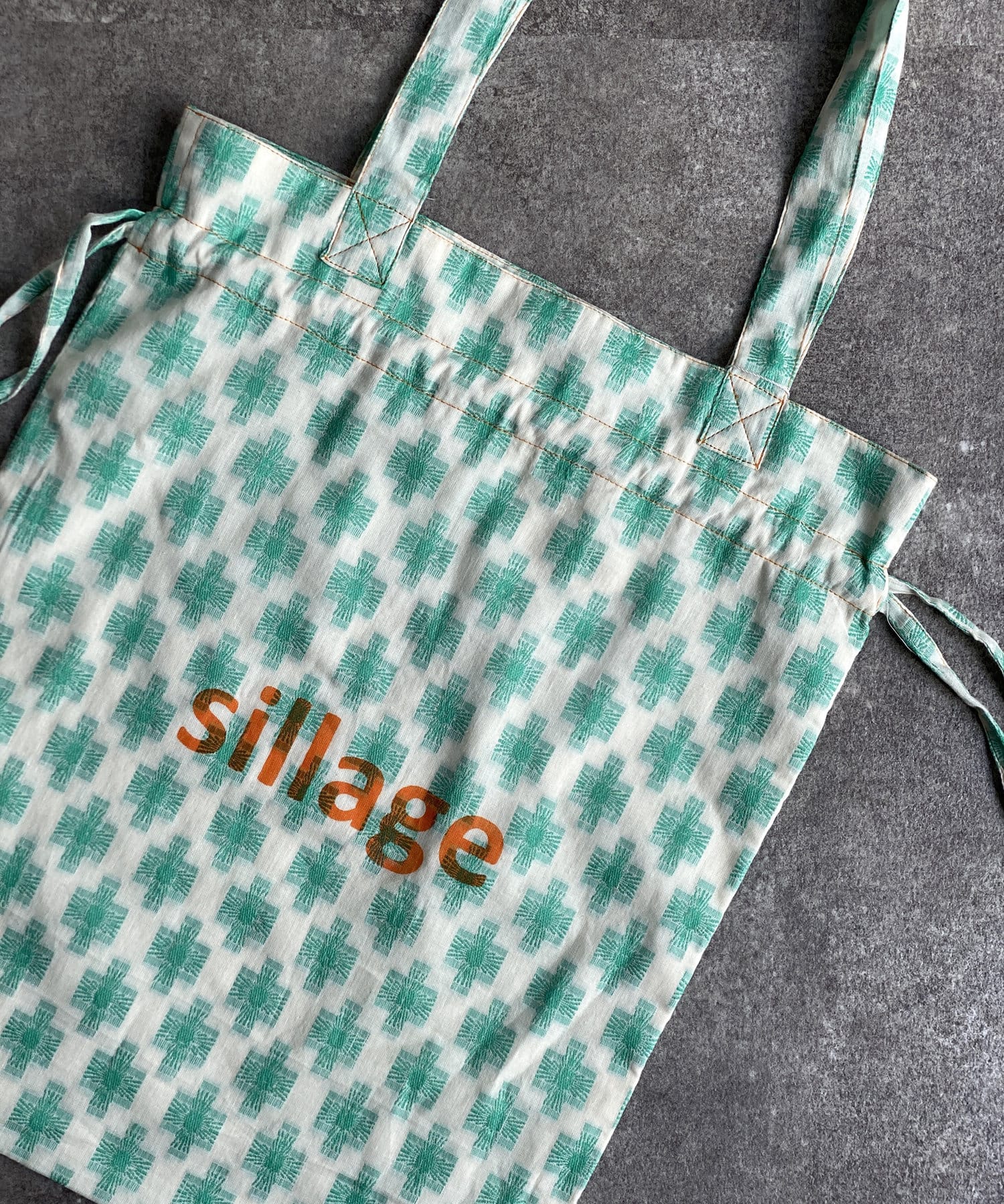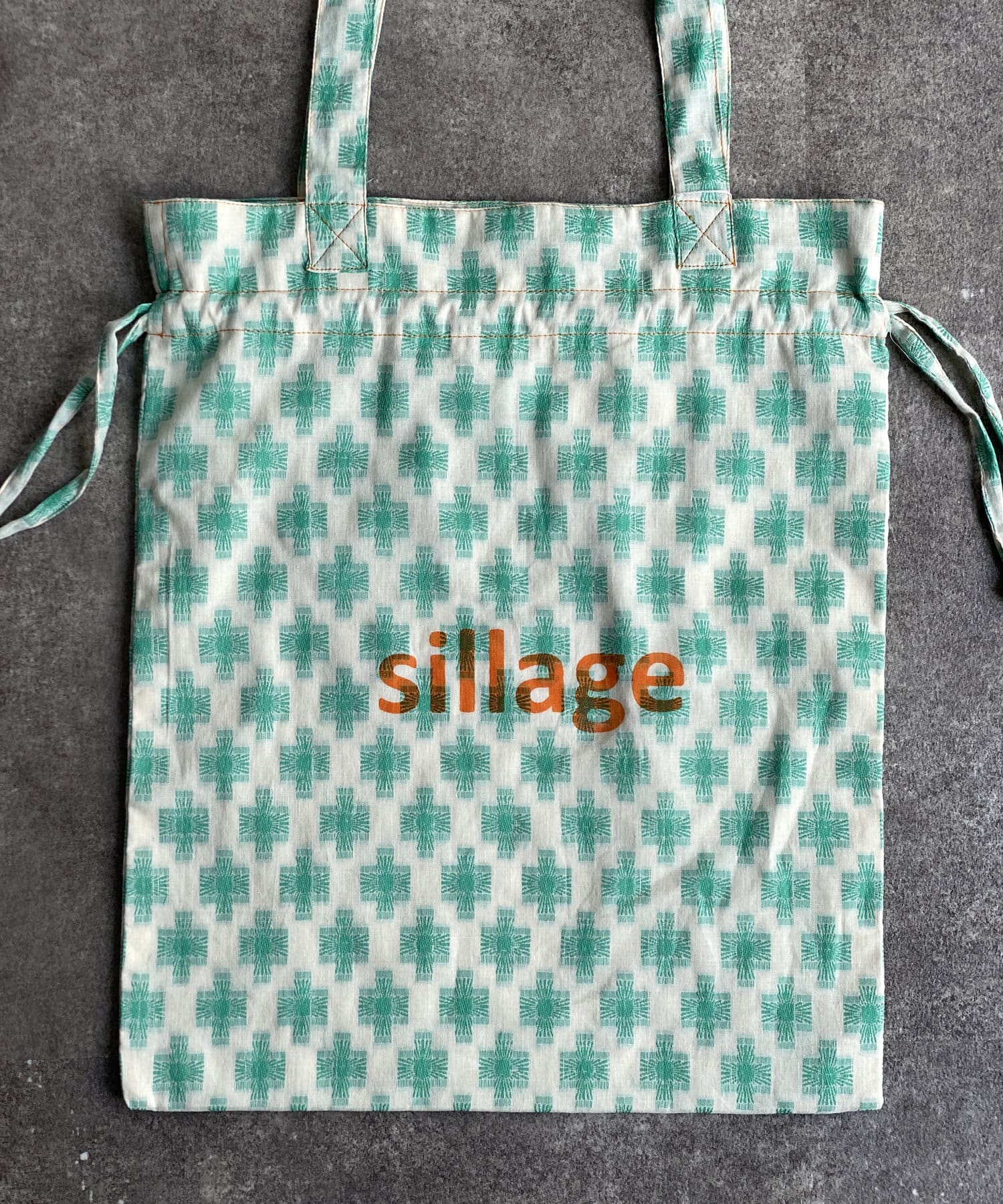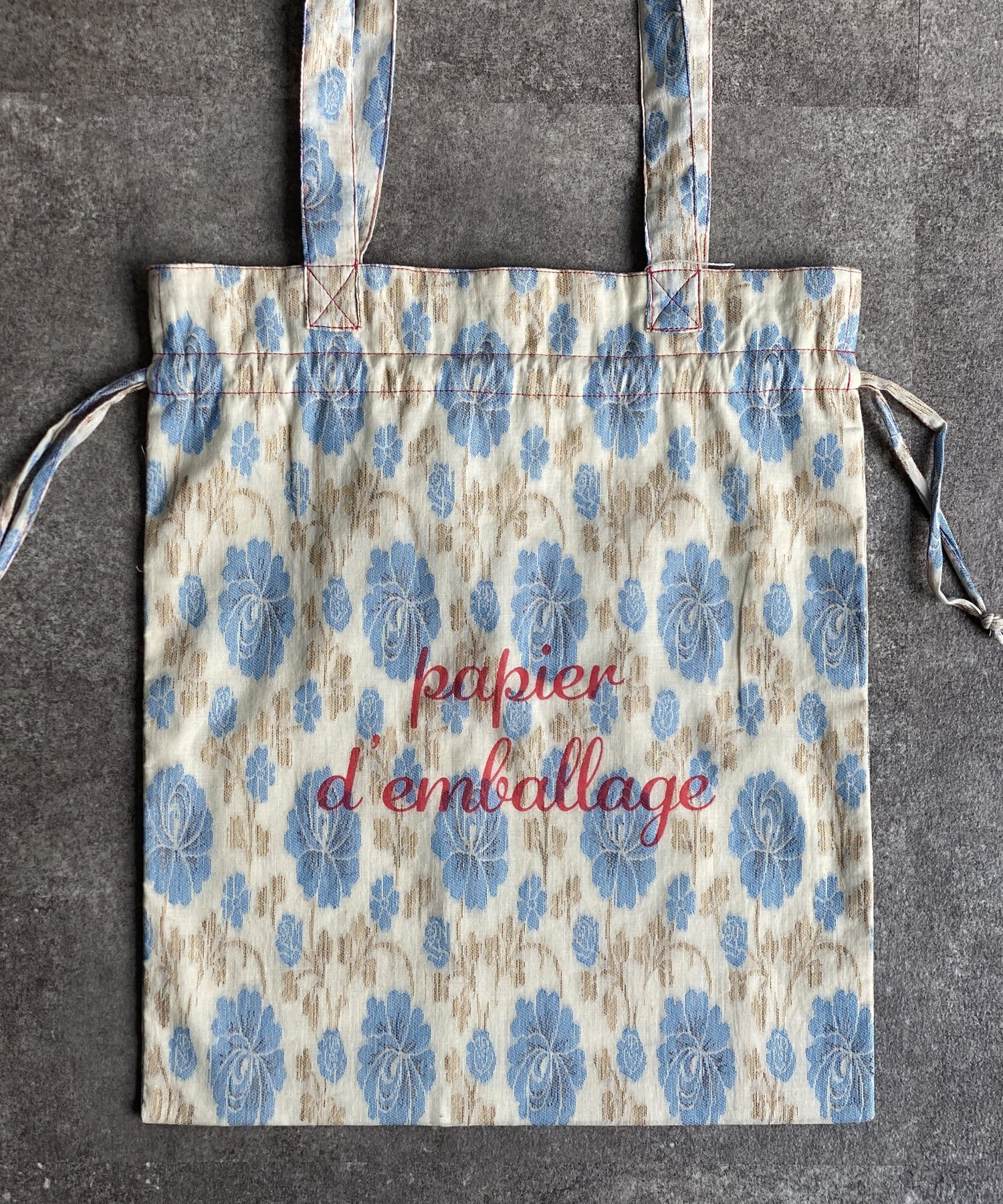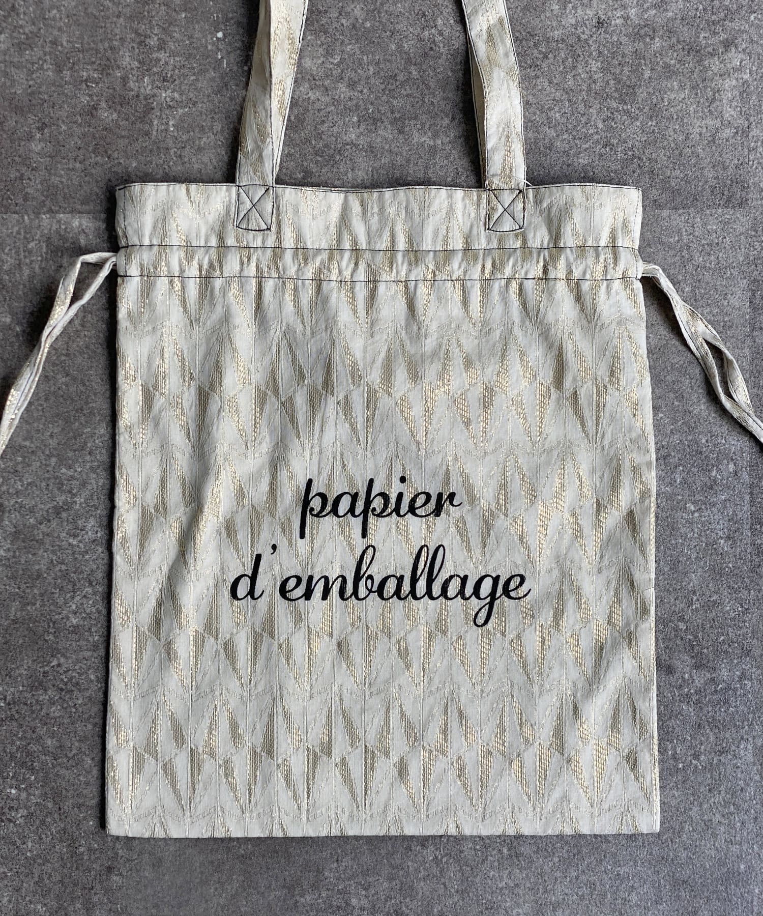 淡いエスニック柄がポイントの巾着トートバッグ