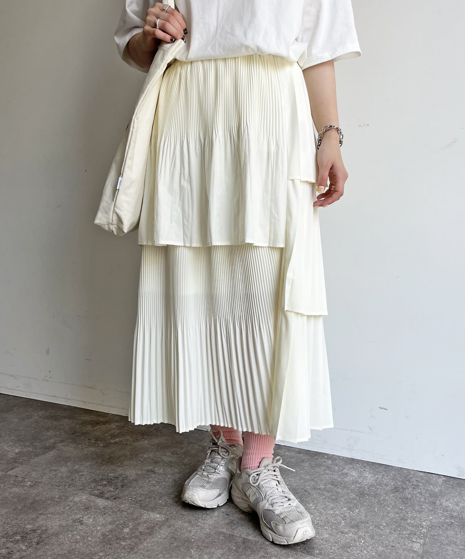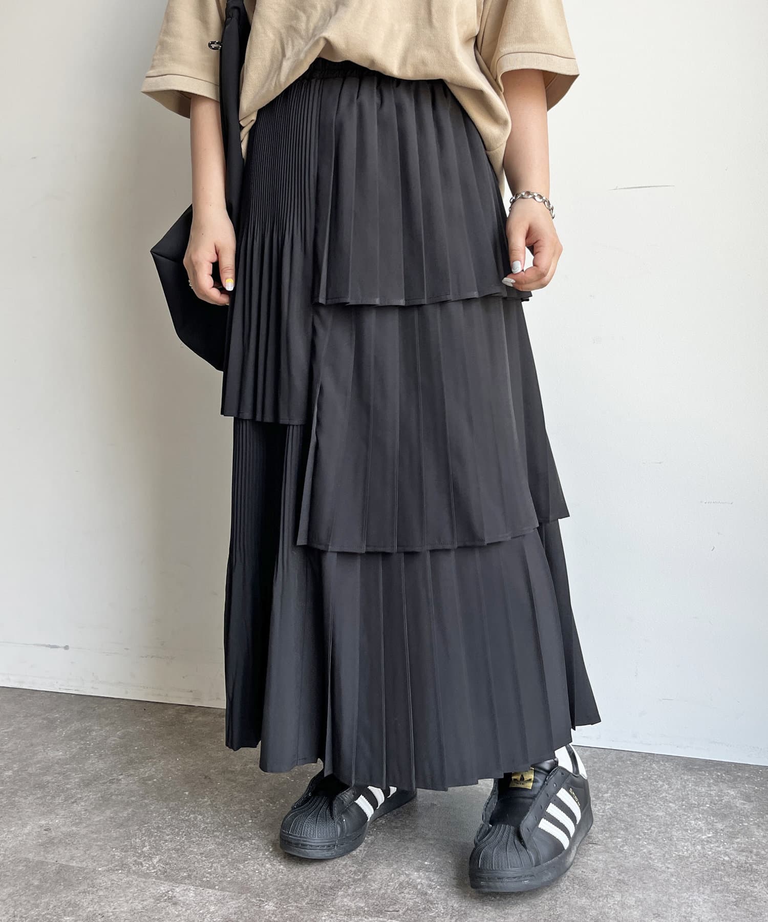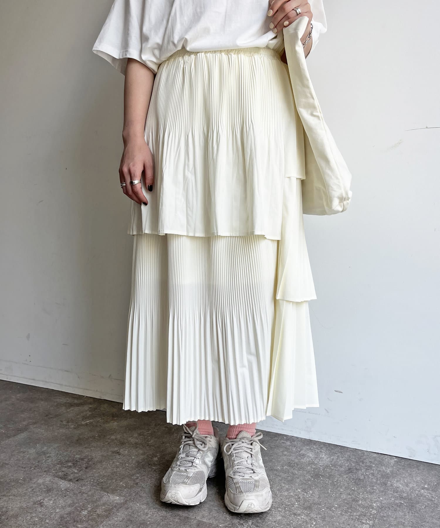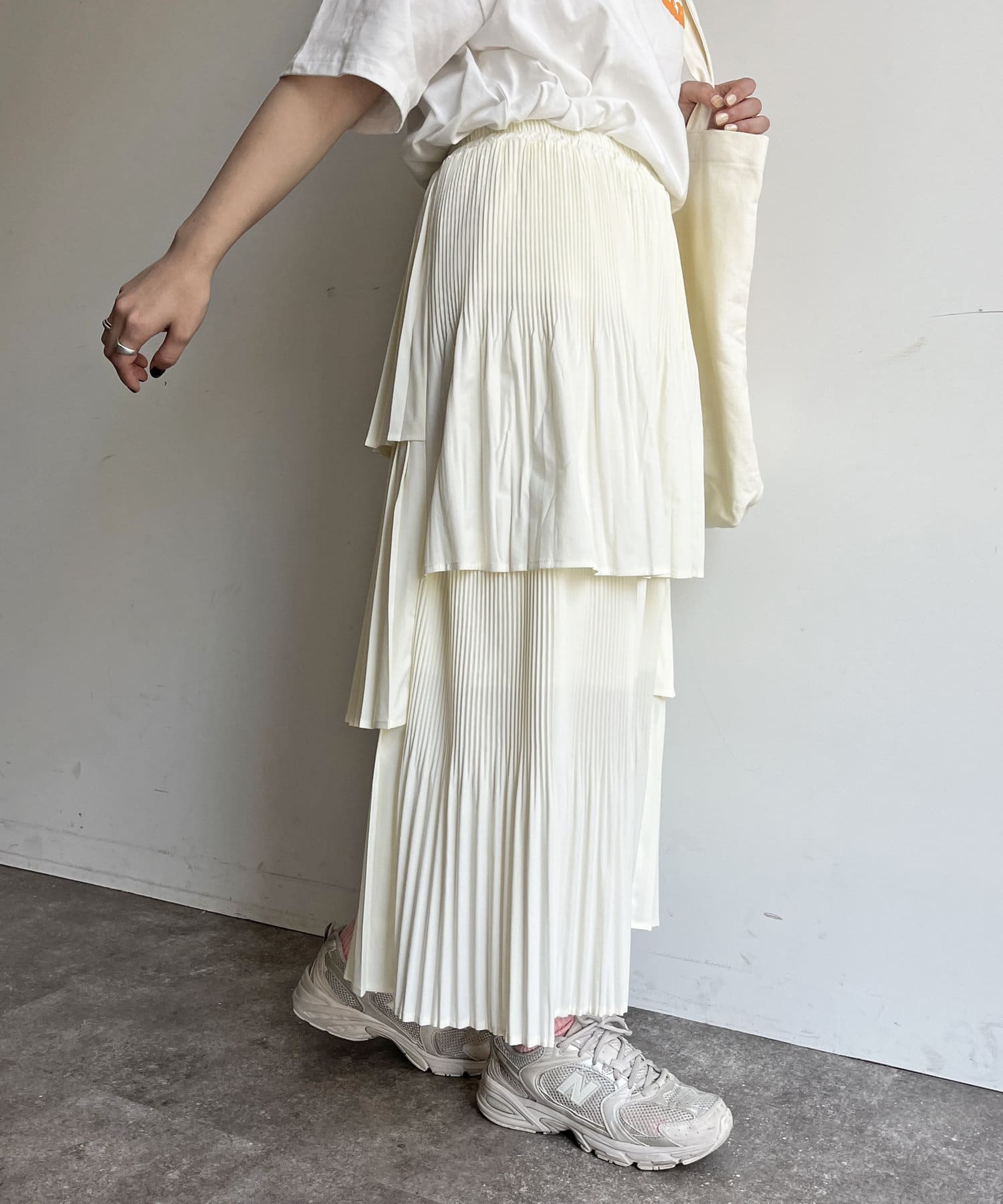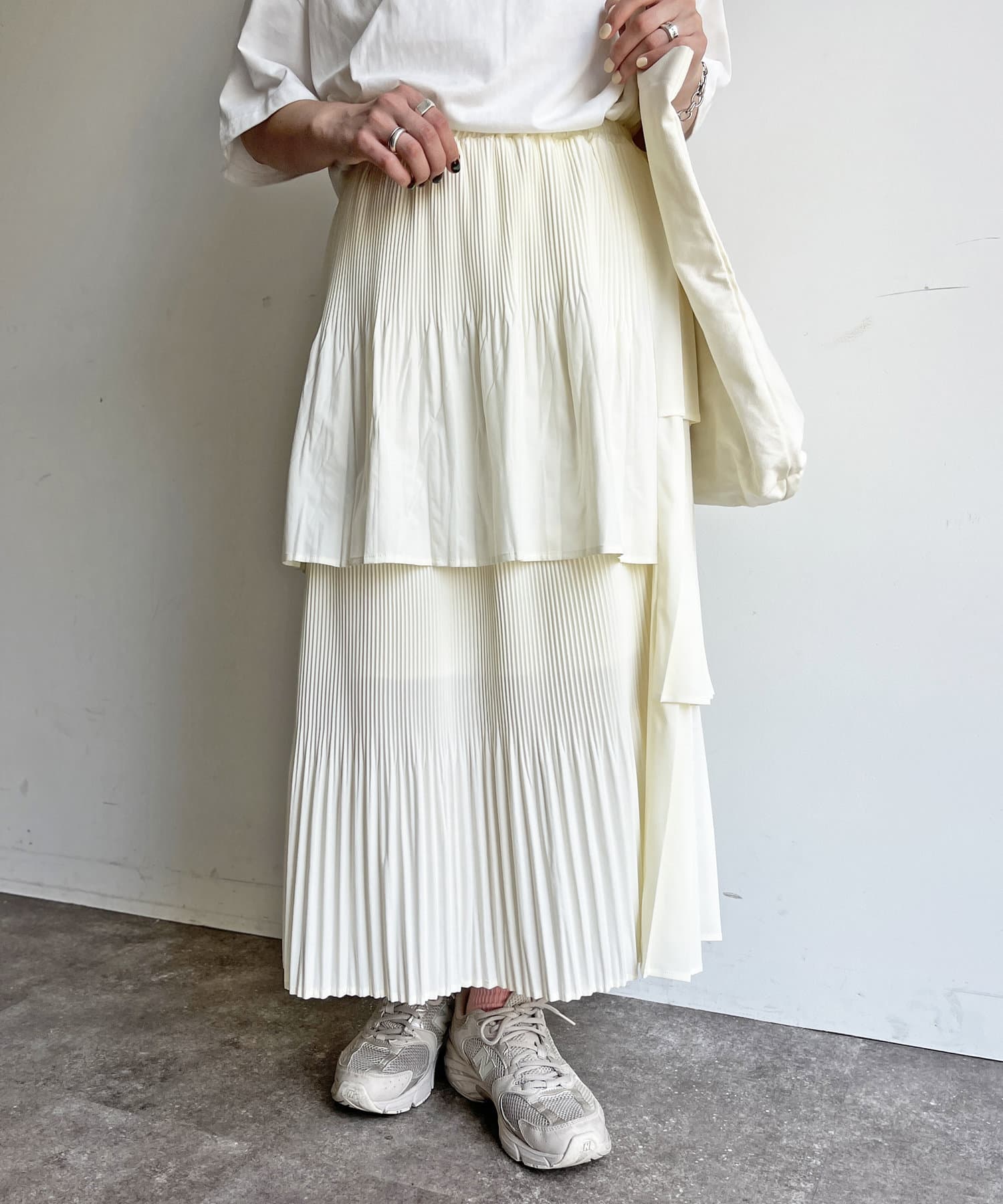 ふんわりと広がるティアードと歩くたびに軽やかに揺れるプリーツを合わせた贅沢スカート。