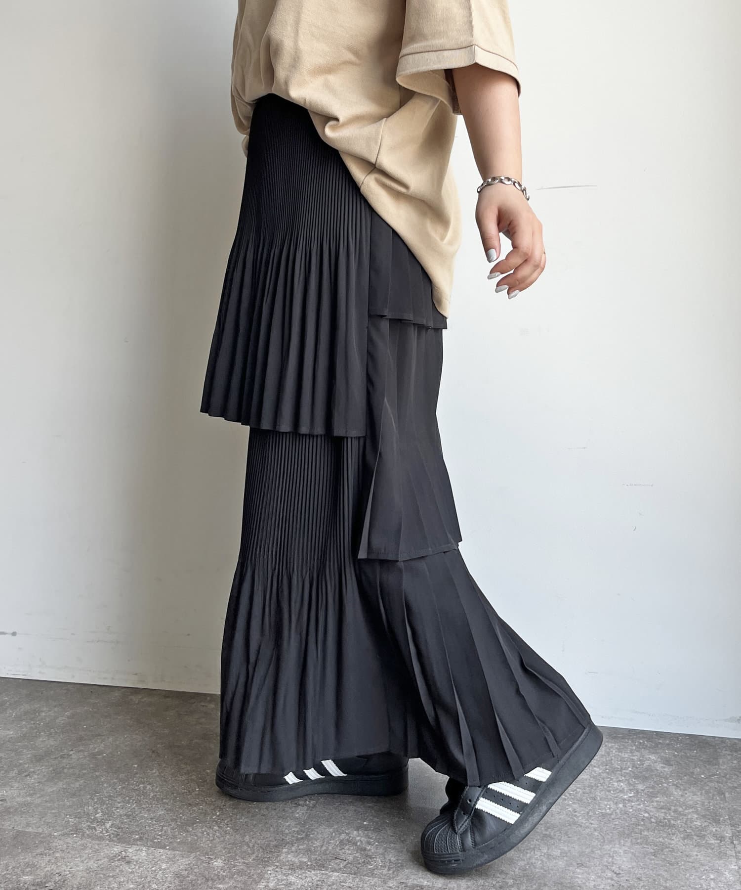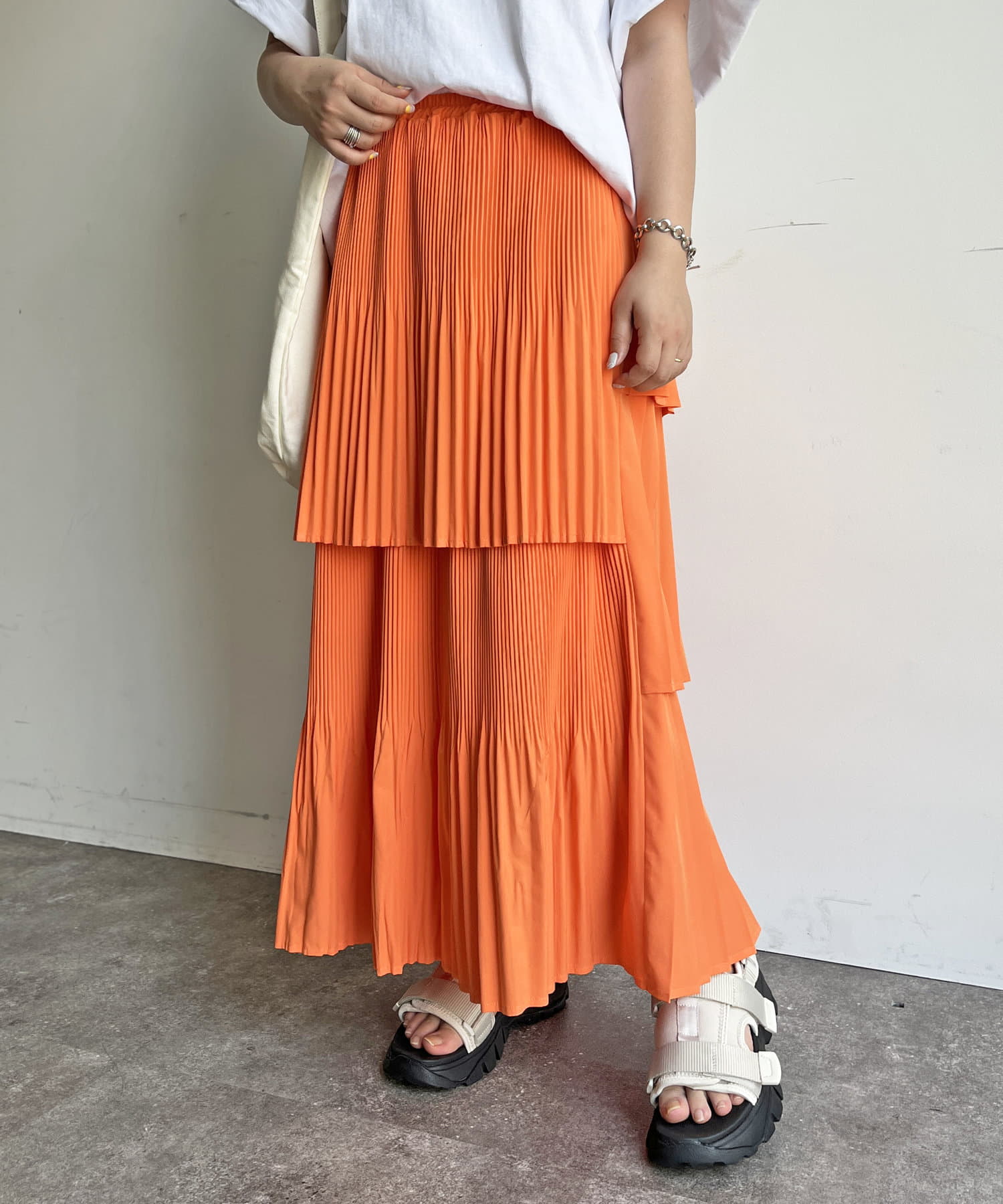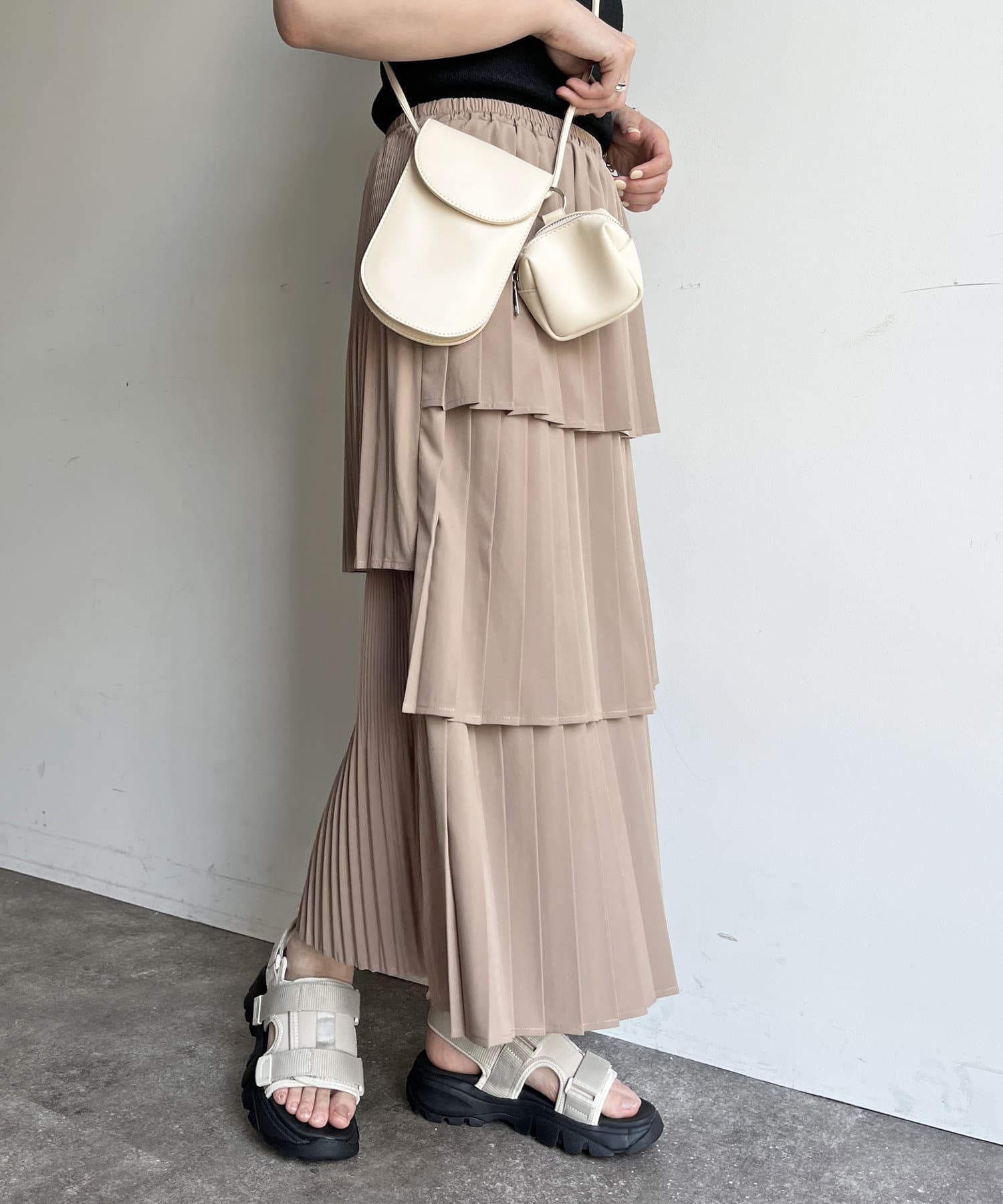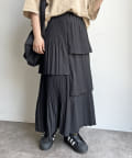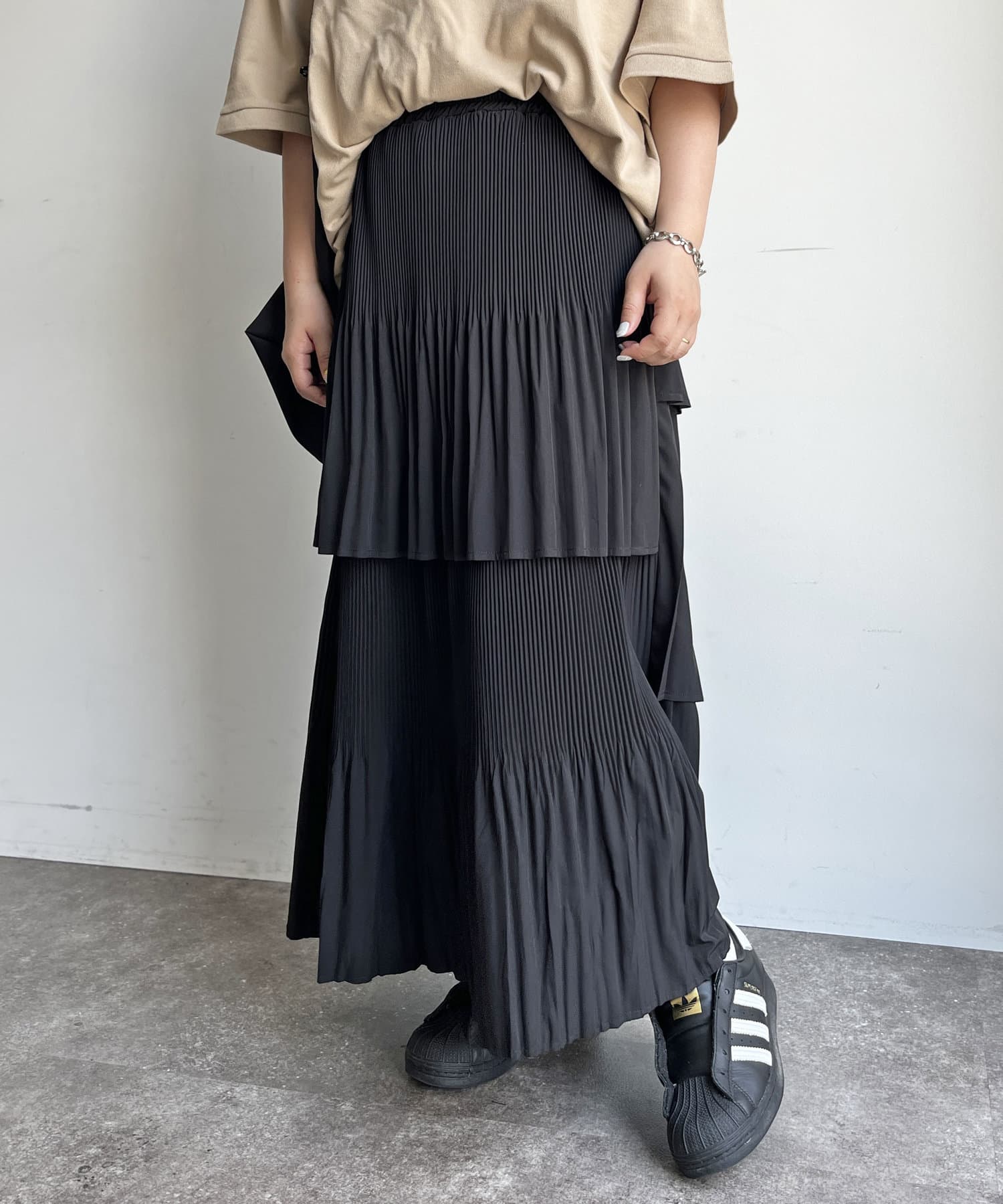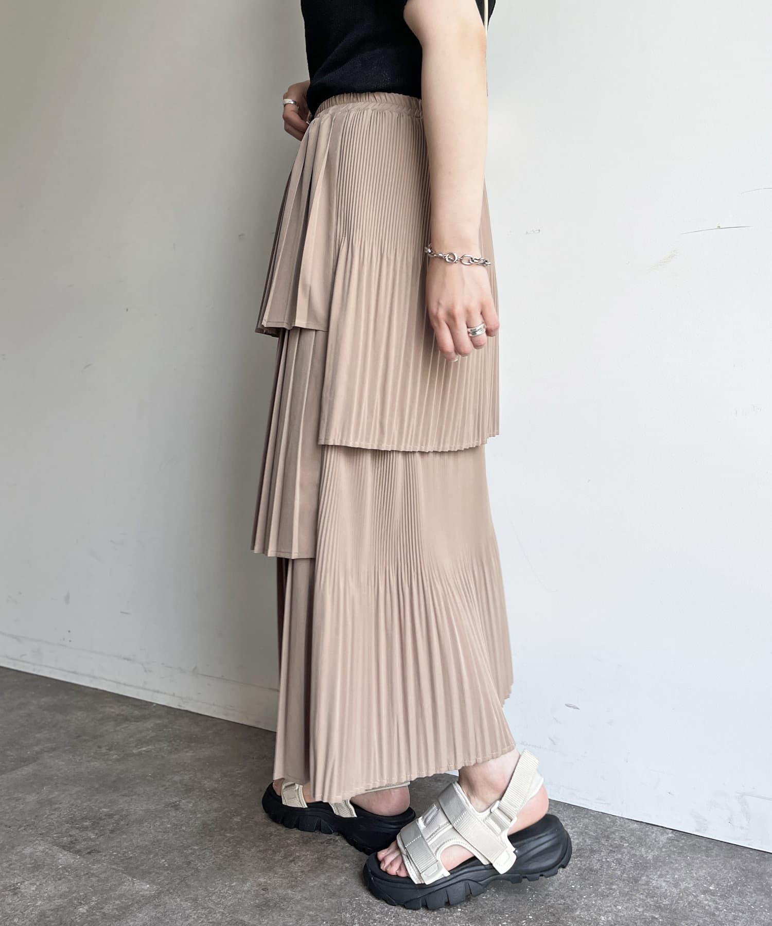 ふんわりと広がるティアードと歩くたびに軽やかに揺れるプリーツを合わせた贅沢スカート。