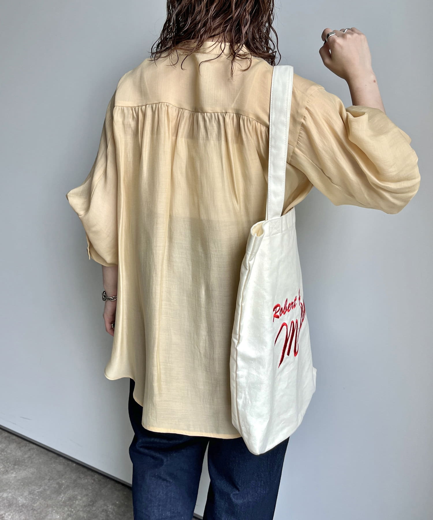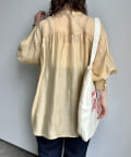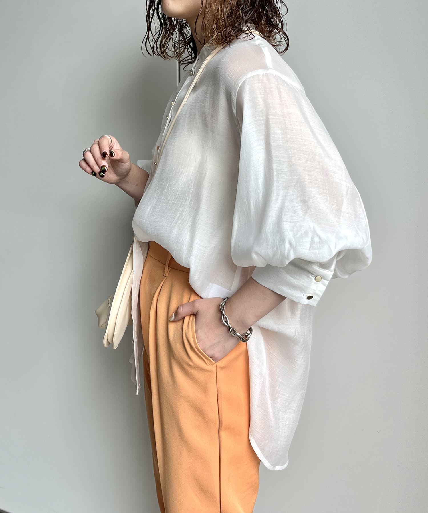 ボリュームスリーブでふんわりとした袖が女性らしく、フェミニンな印象をプラス。