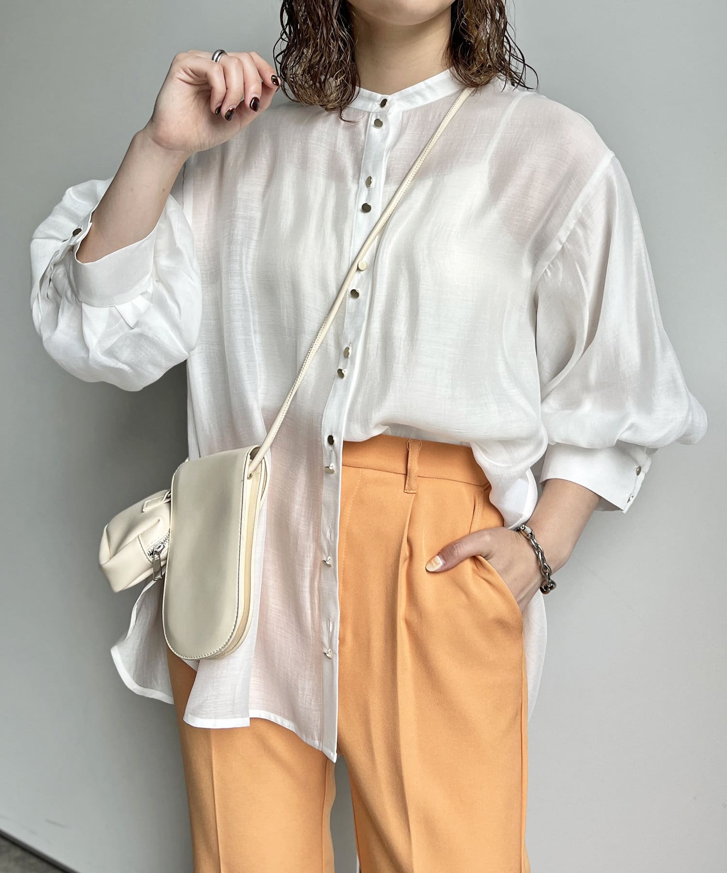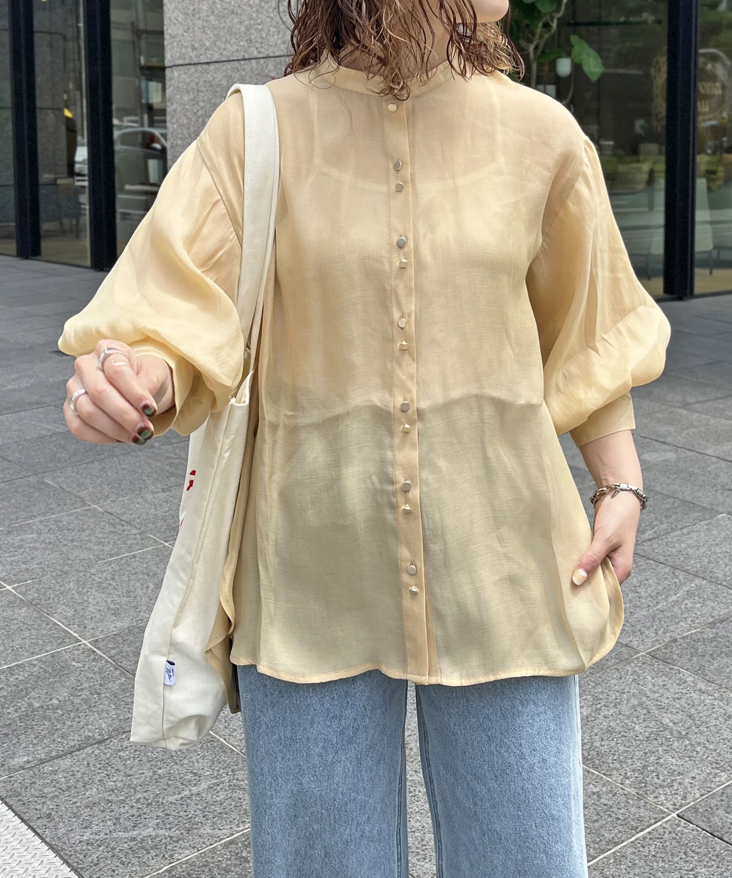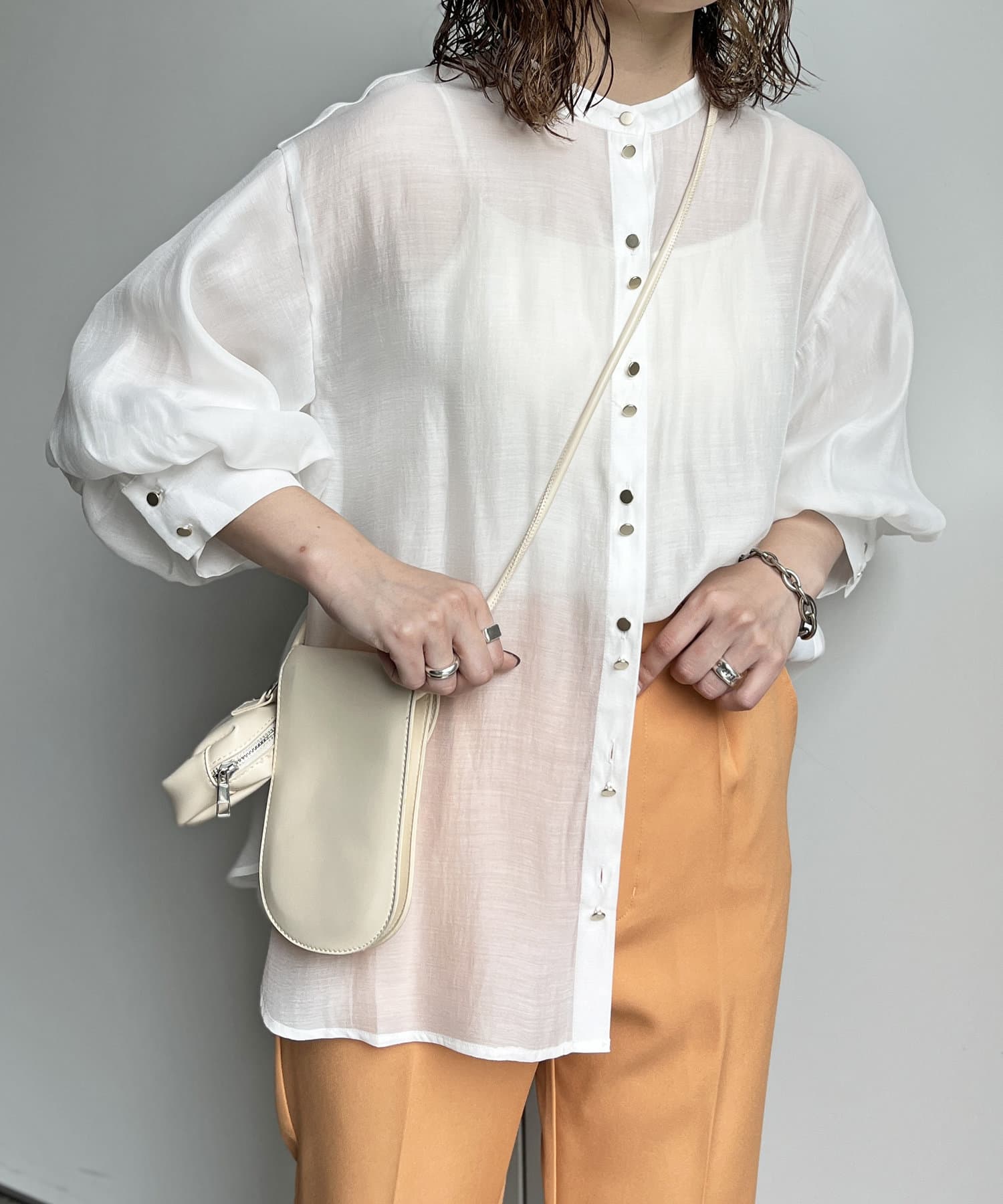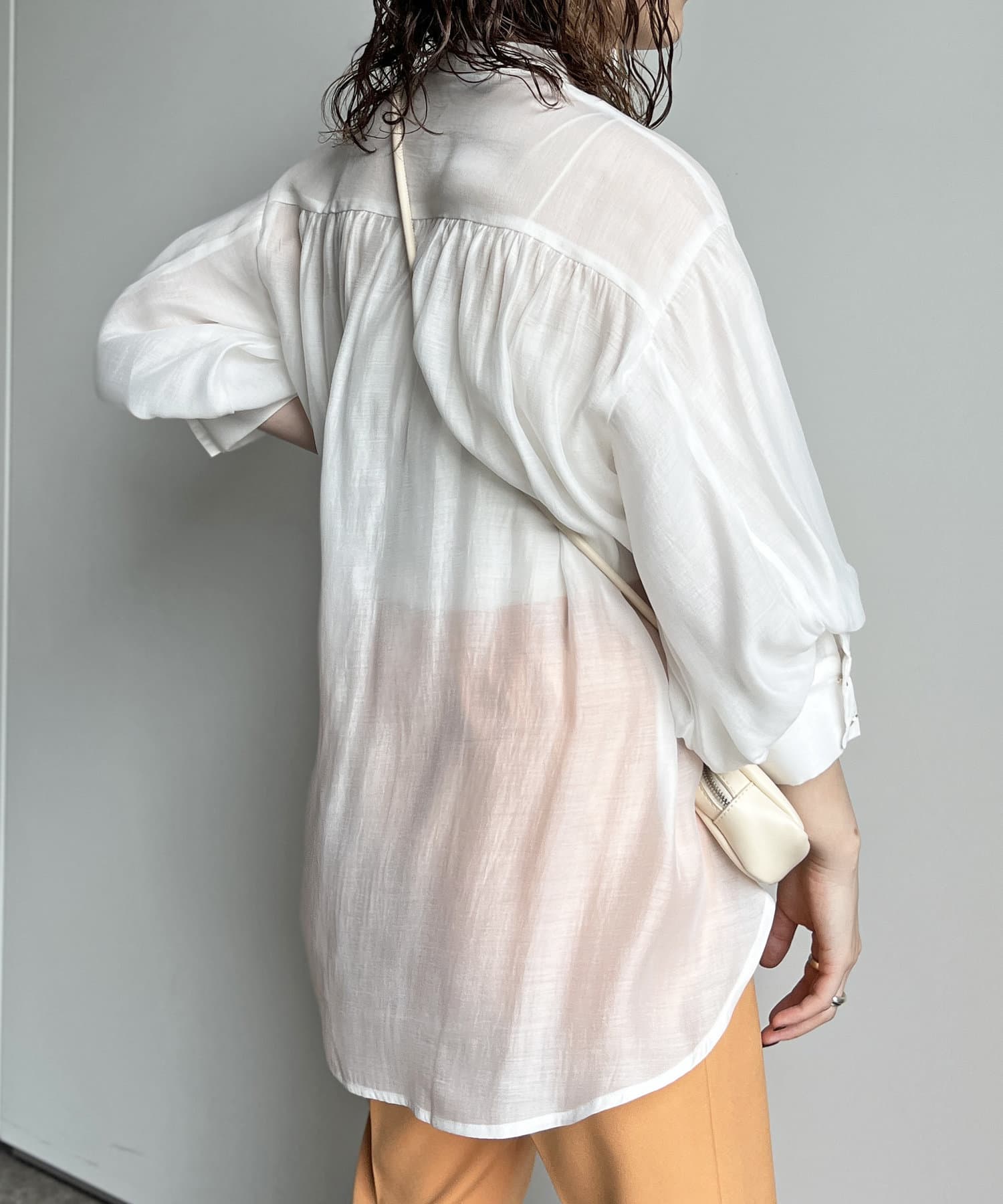 Wボタンでさり気なくアクセントを効かせたシアーブラウス