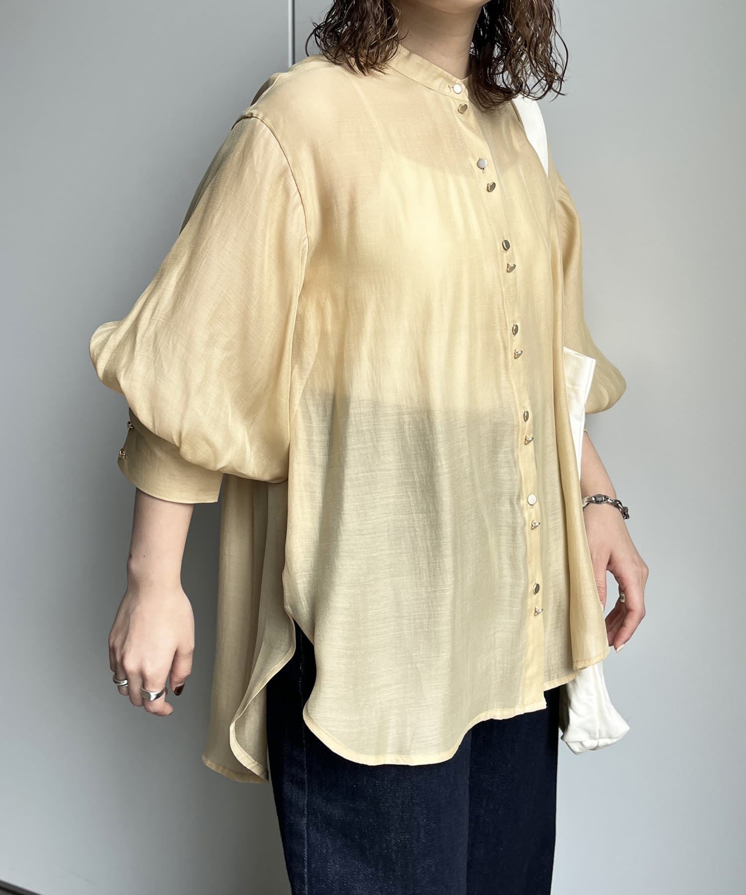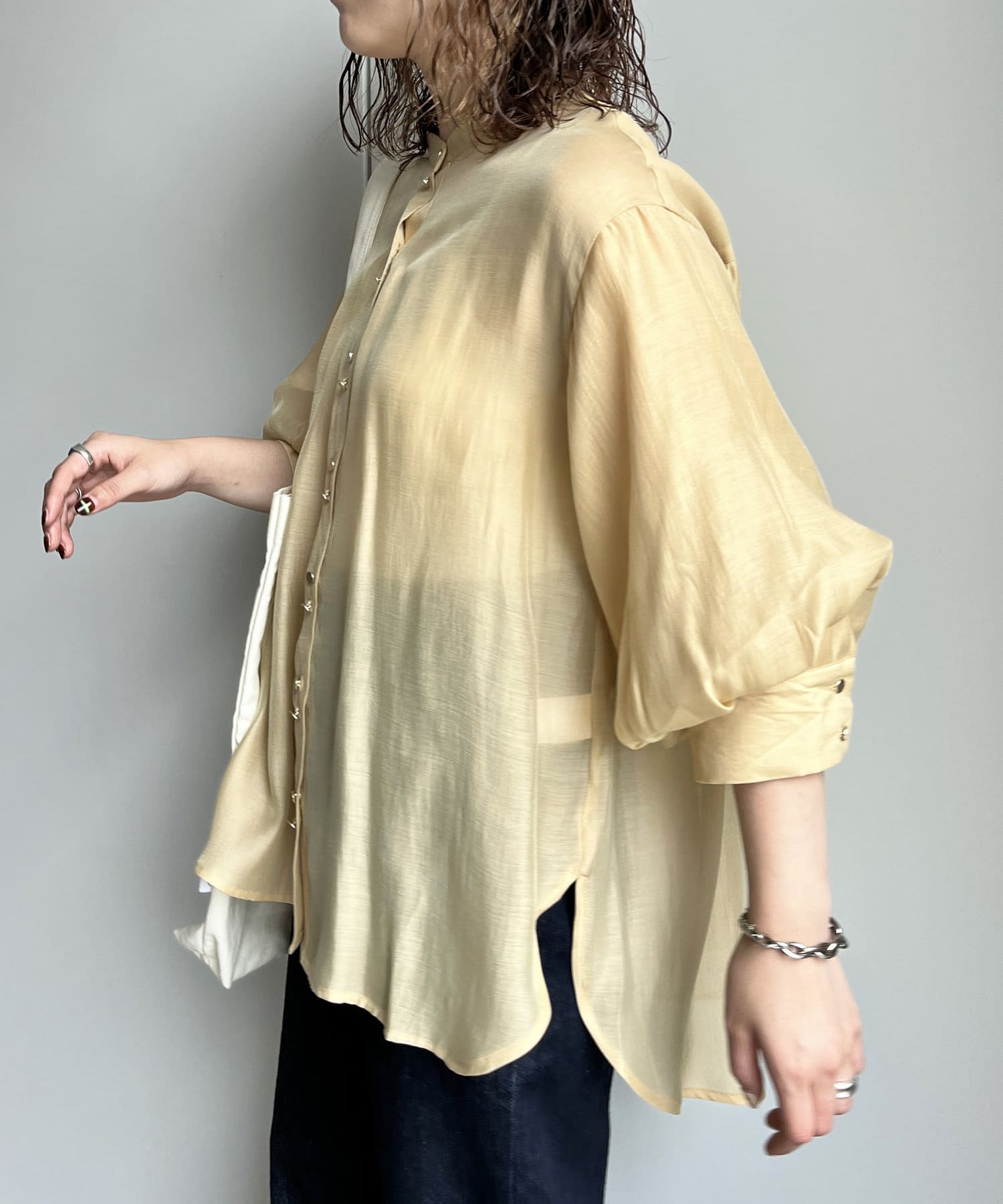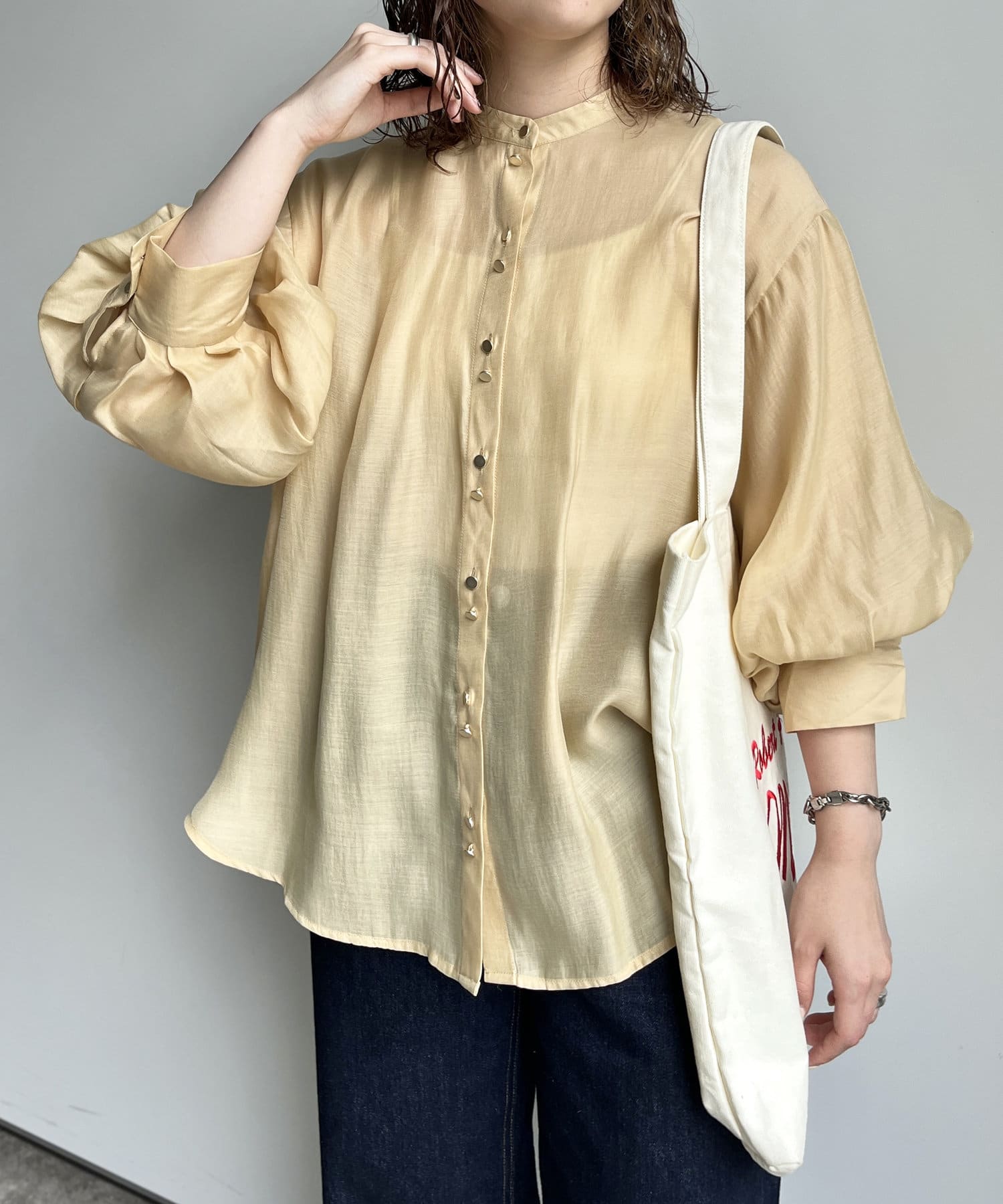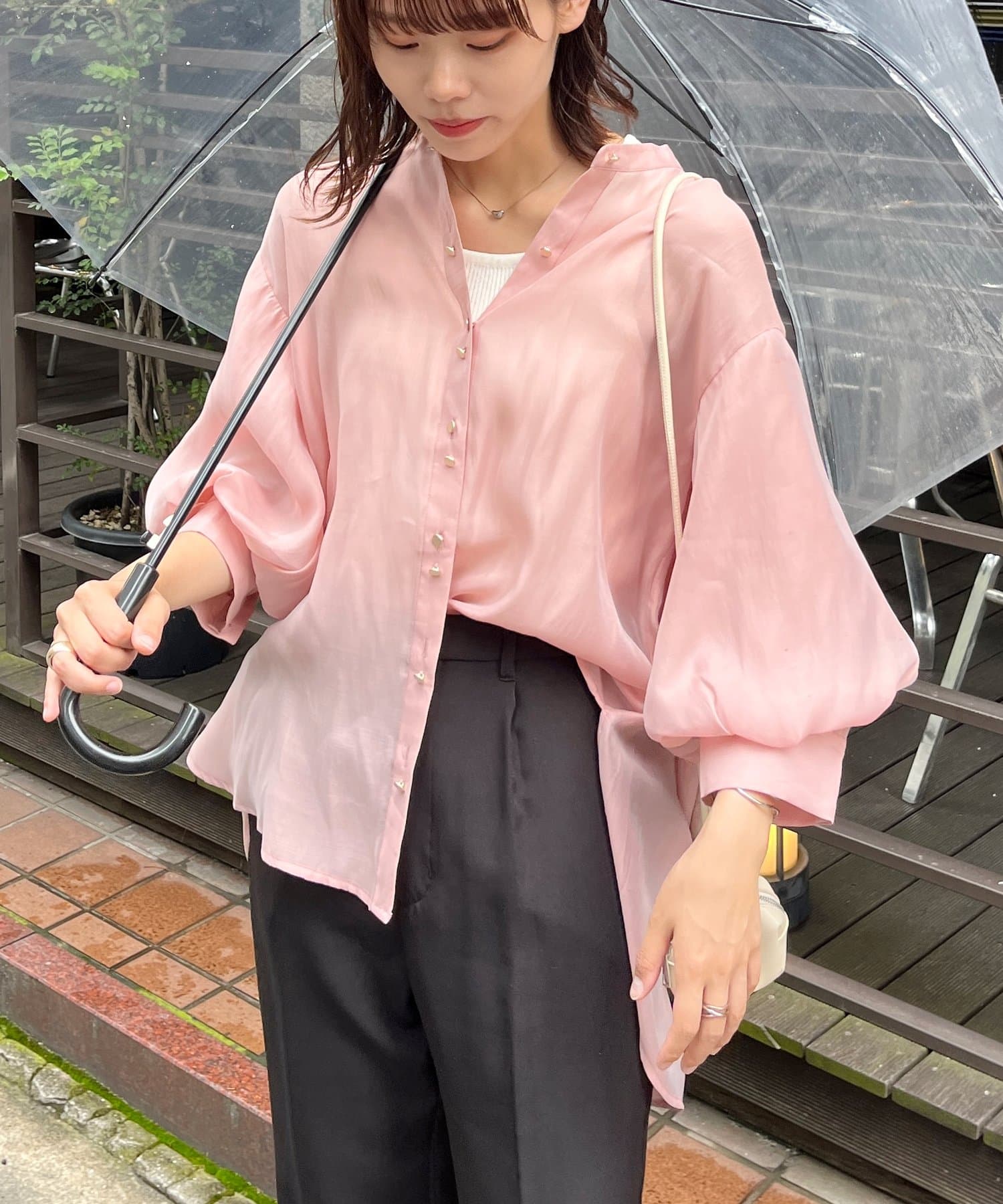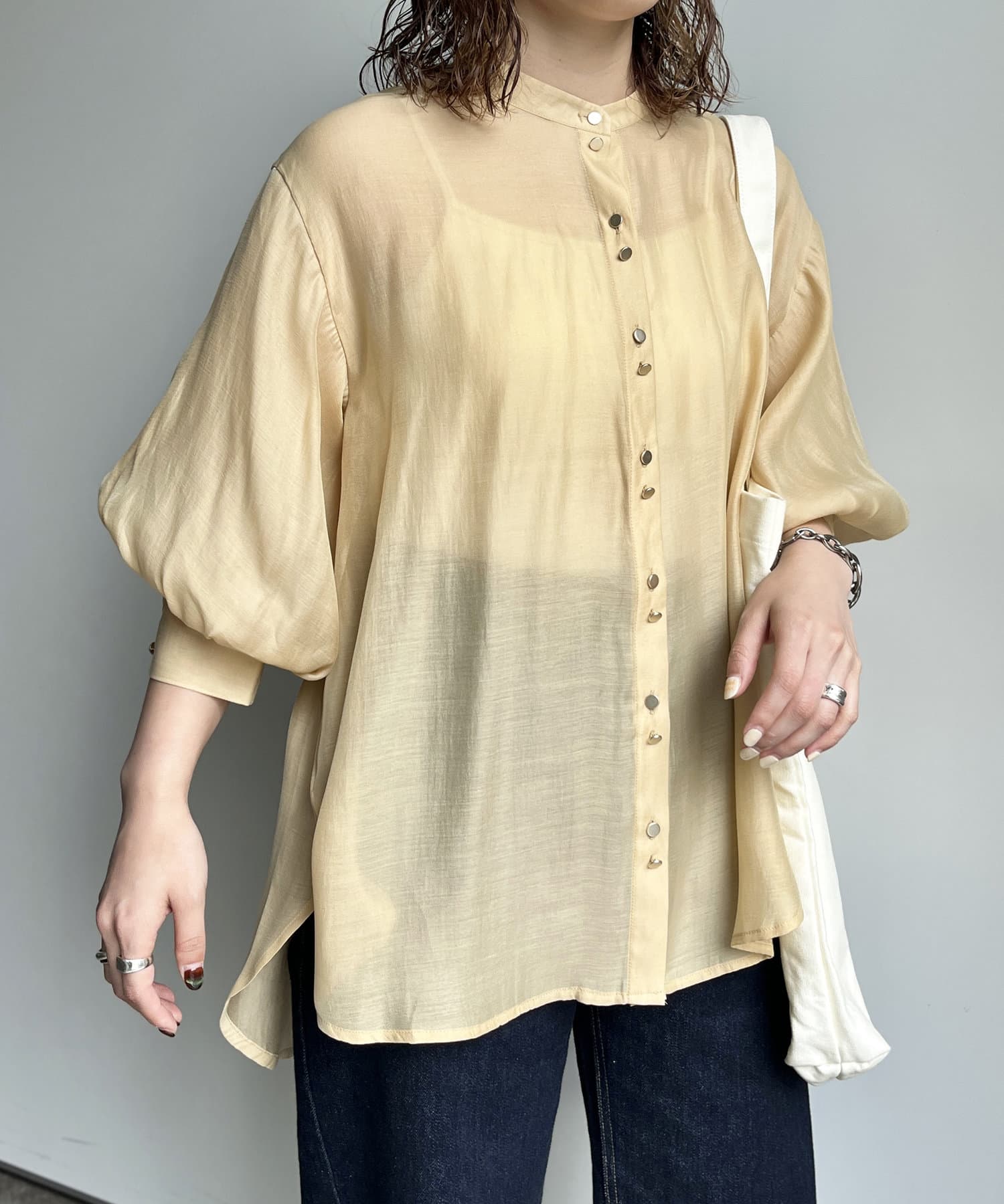 Wボタンでさり気なくアクセントを効かせたシアーブラウス