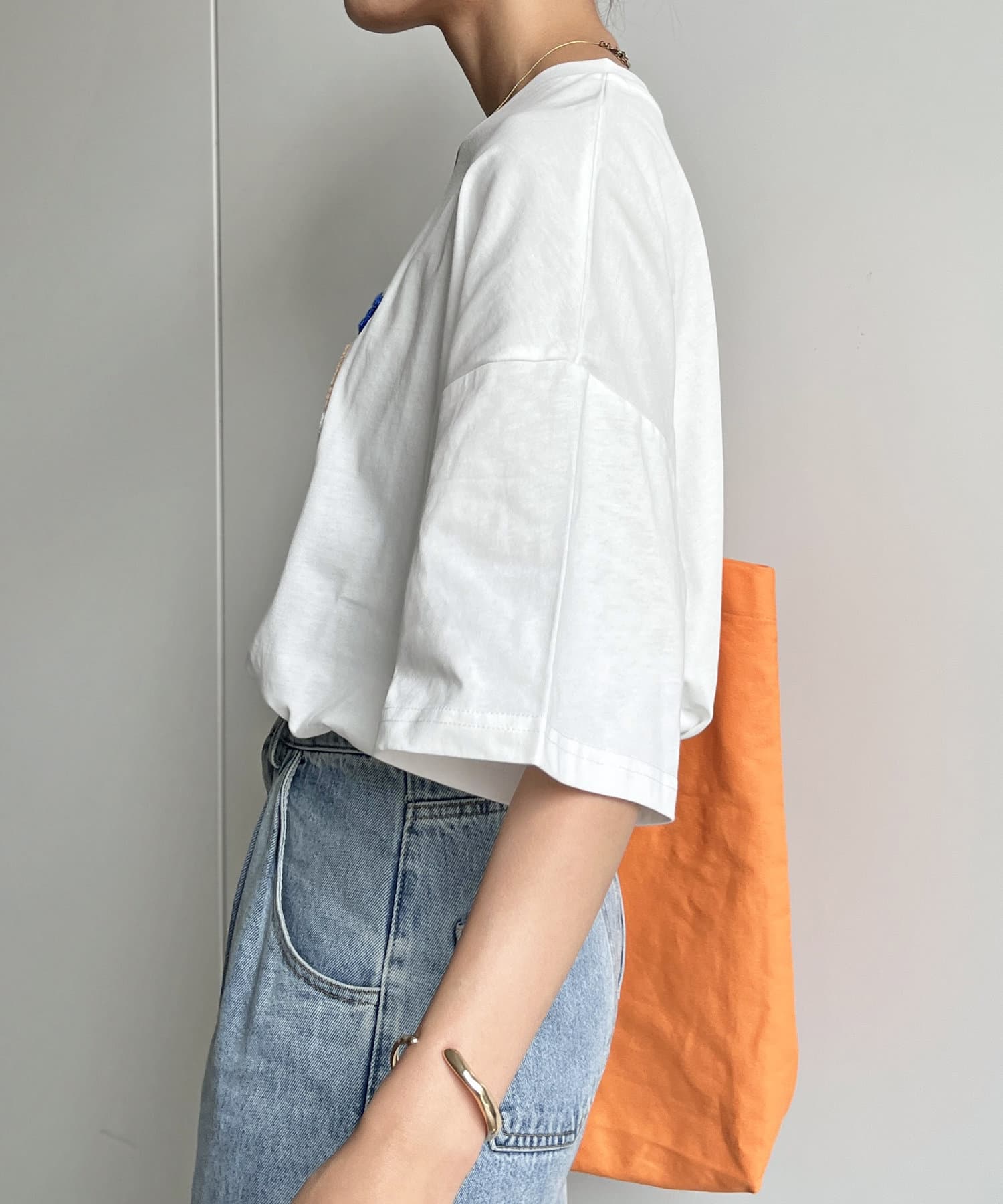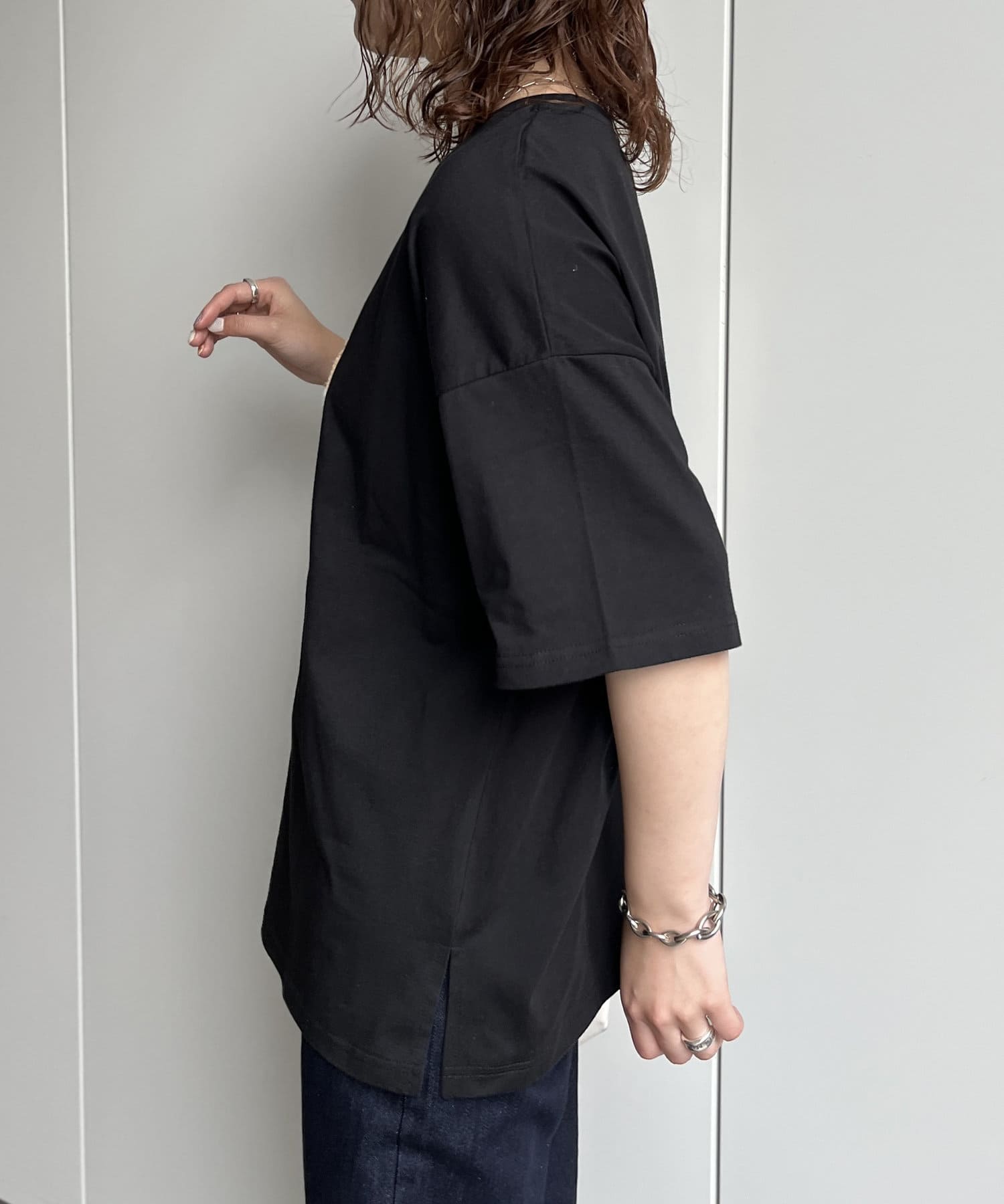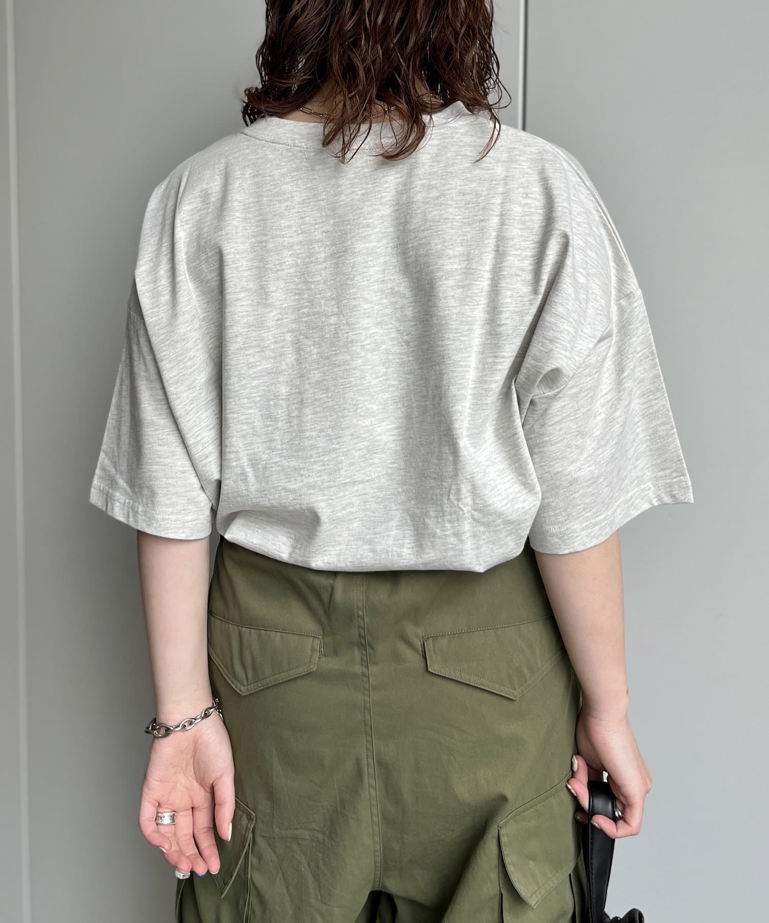 ゆったりとしたビッグシルエットなTシャツはボトムを選ばず、ショーツからワイドパンツまで幅広い着こなしに活躍します。
