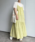 爽やかなギンガムチェックが目を惹くティアードキャミワンピ