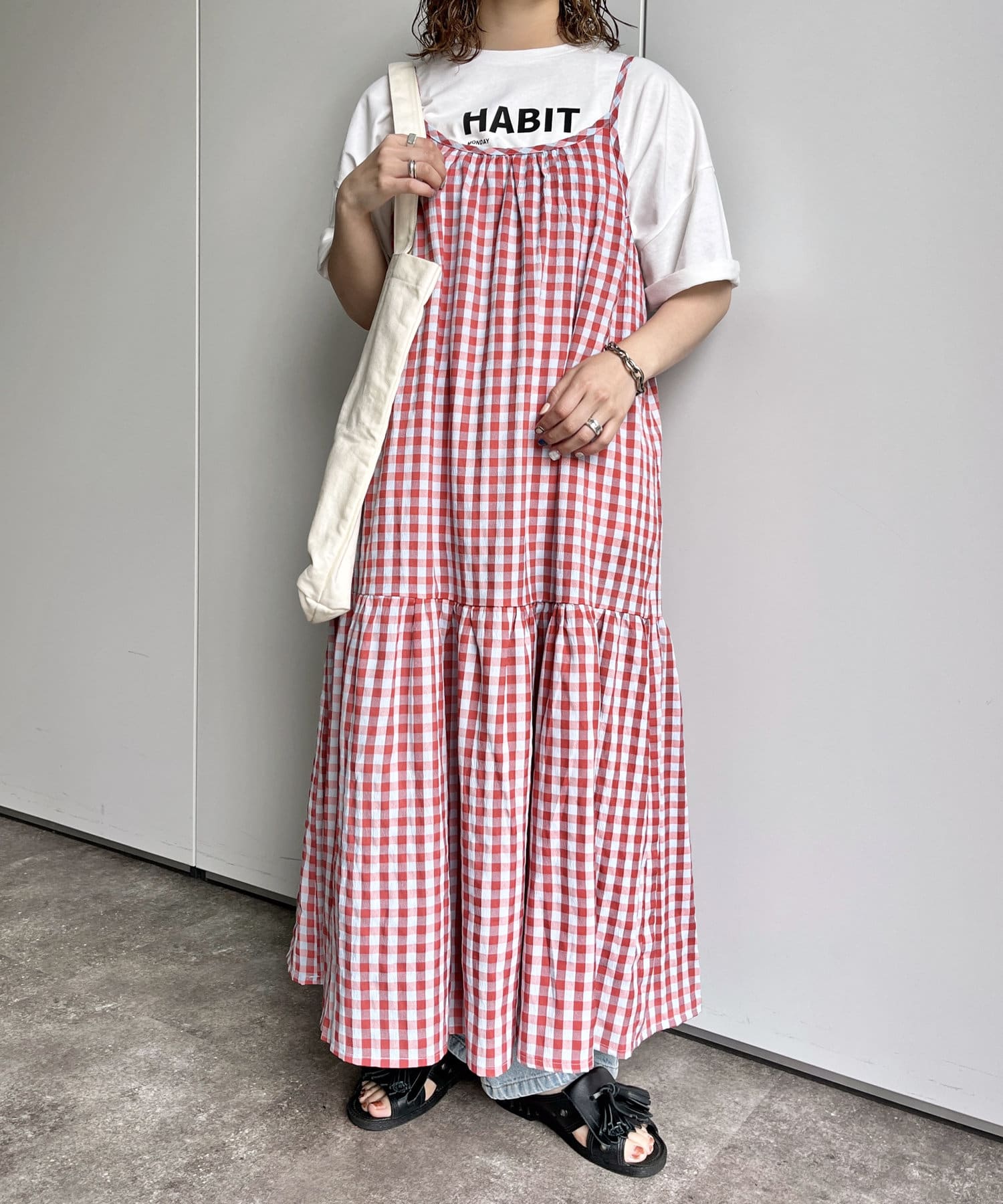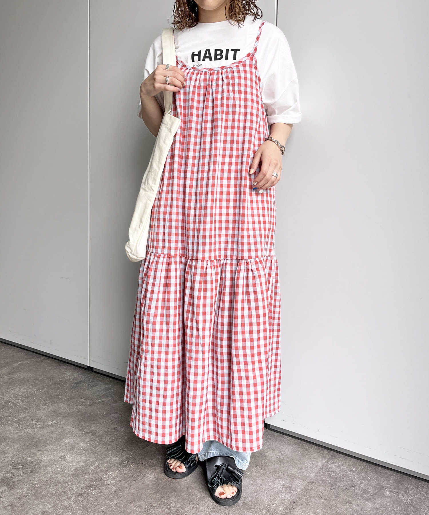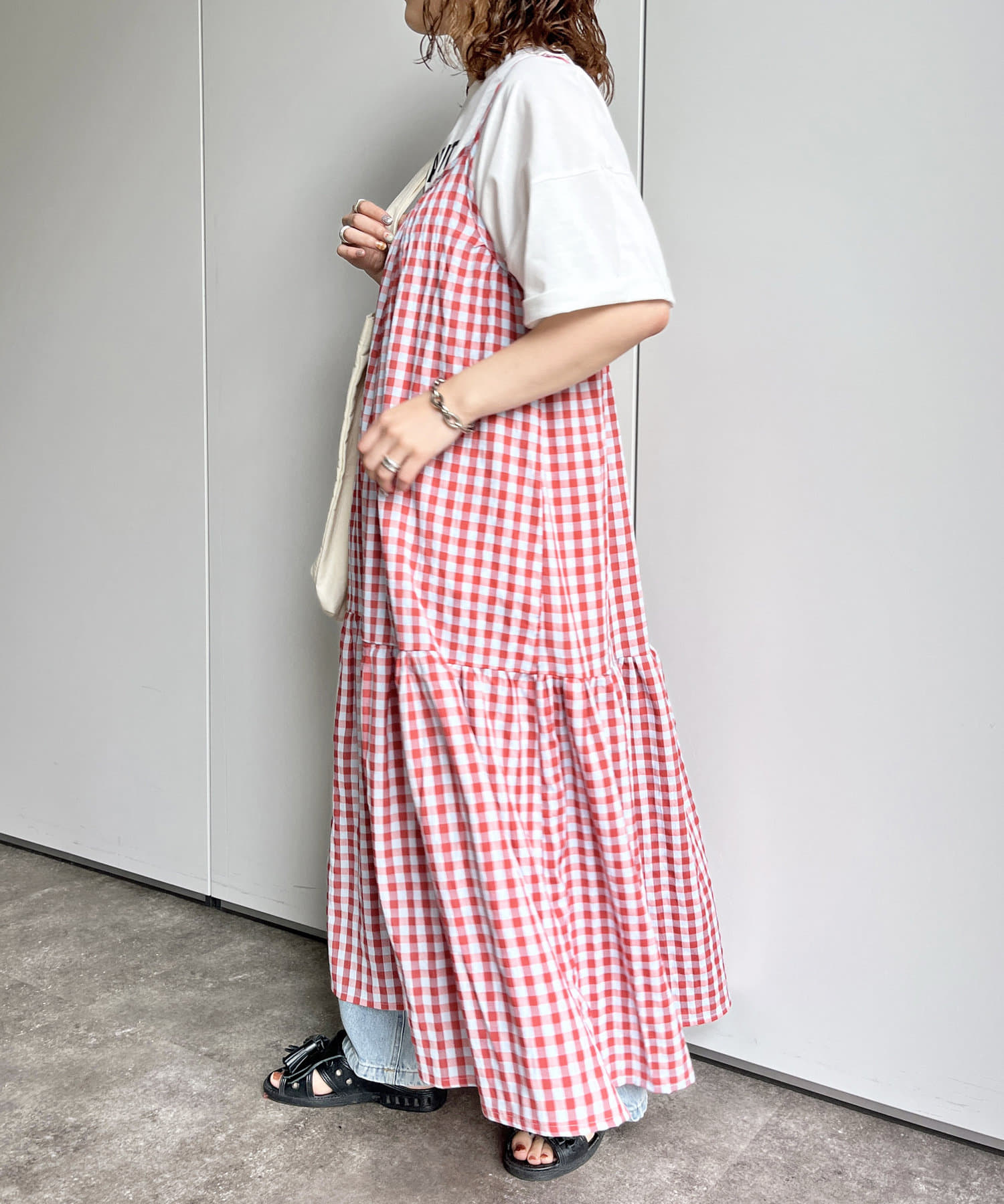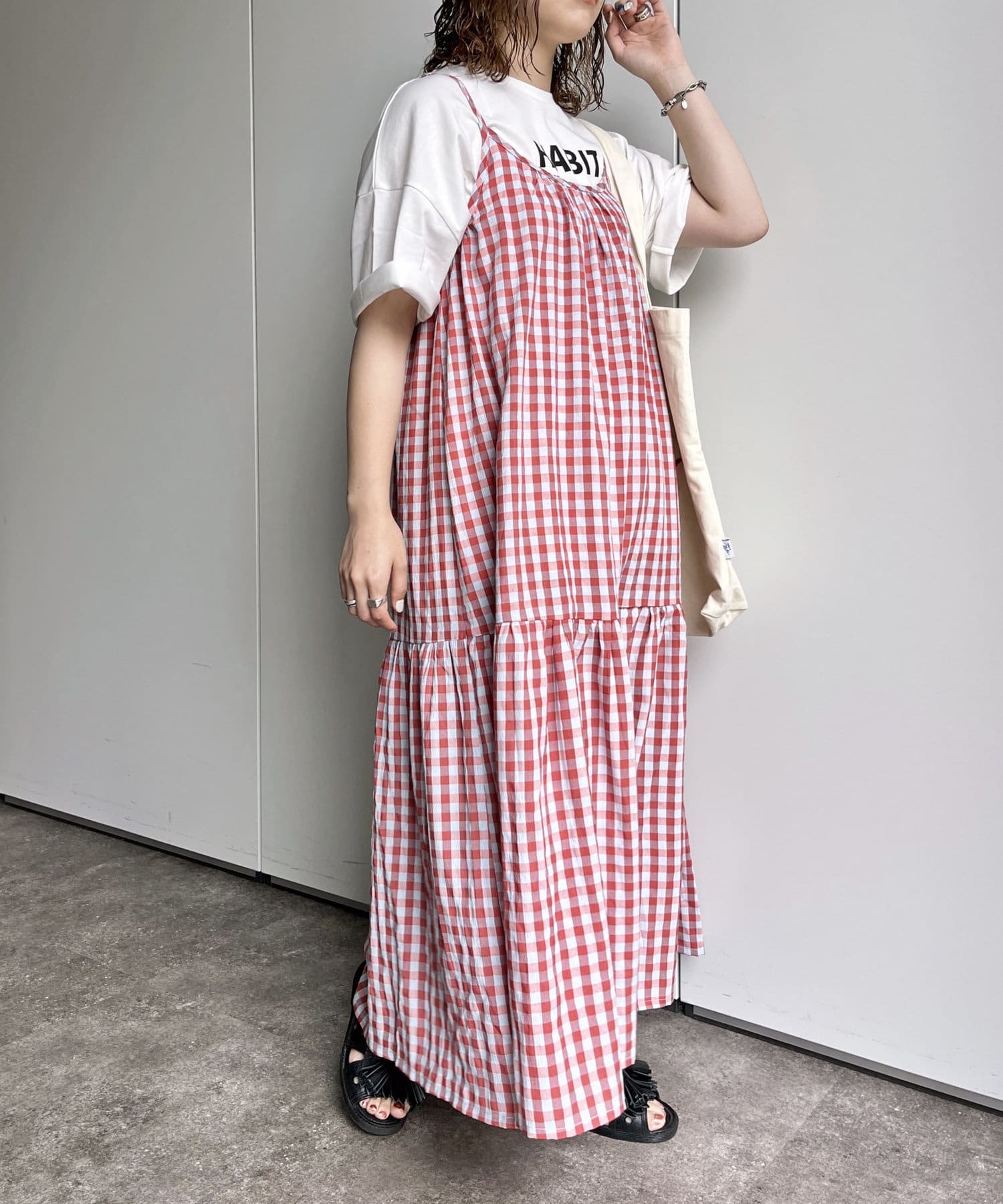 ギンガムチェックティアードキャミワンピース