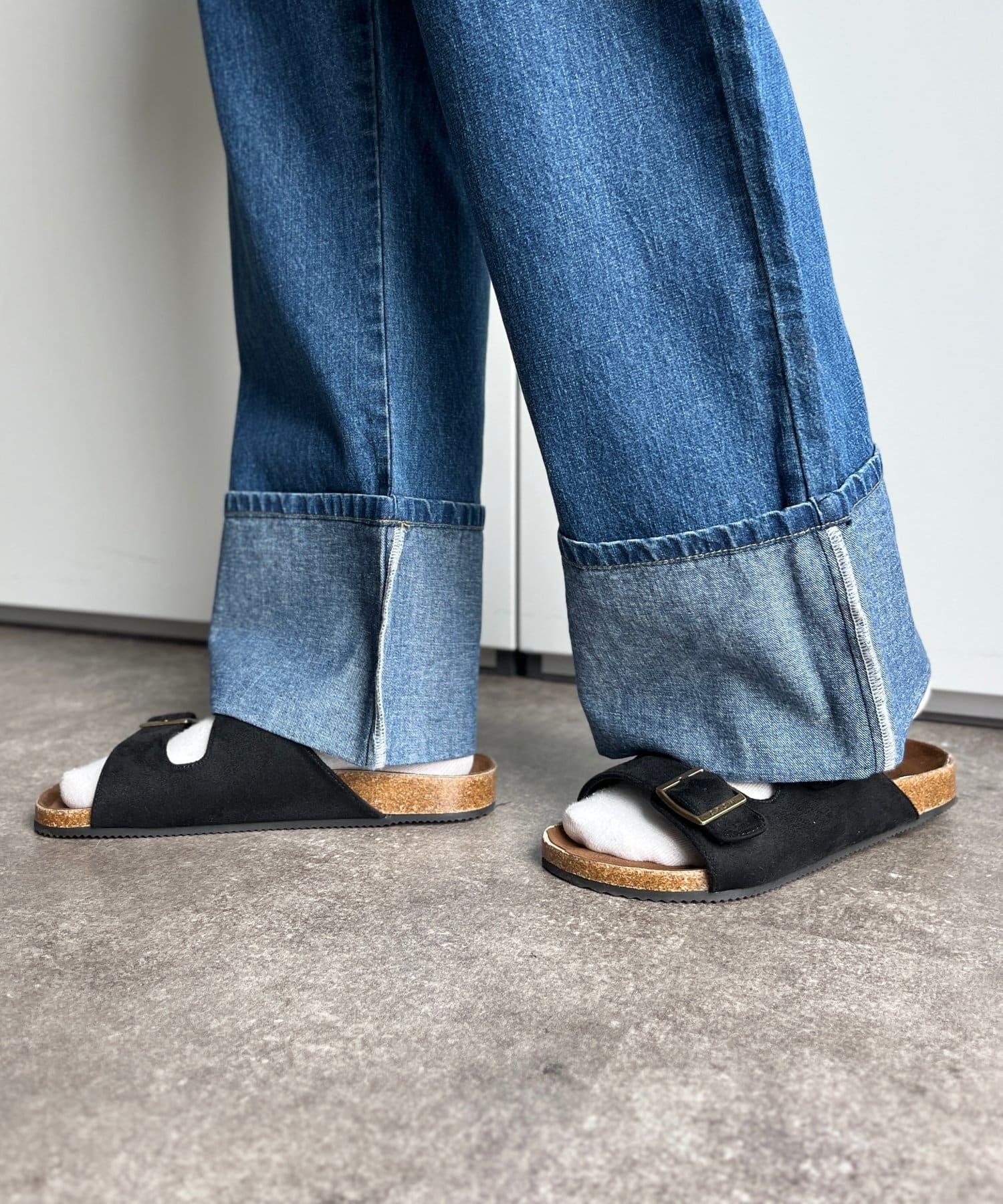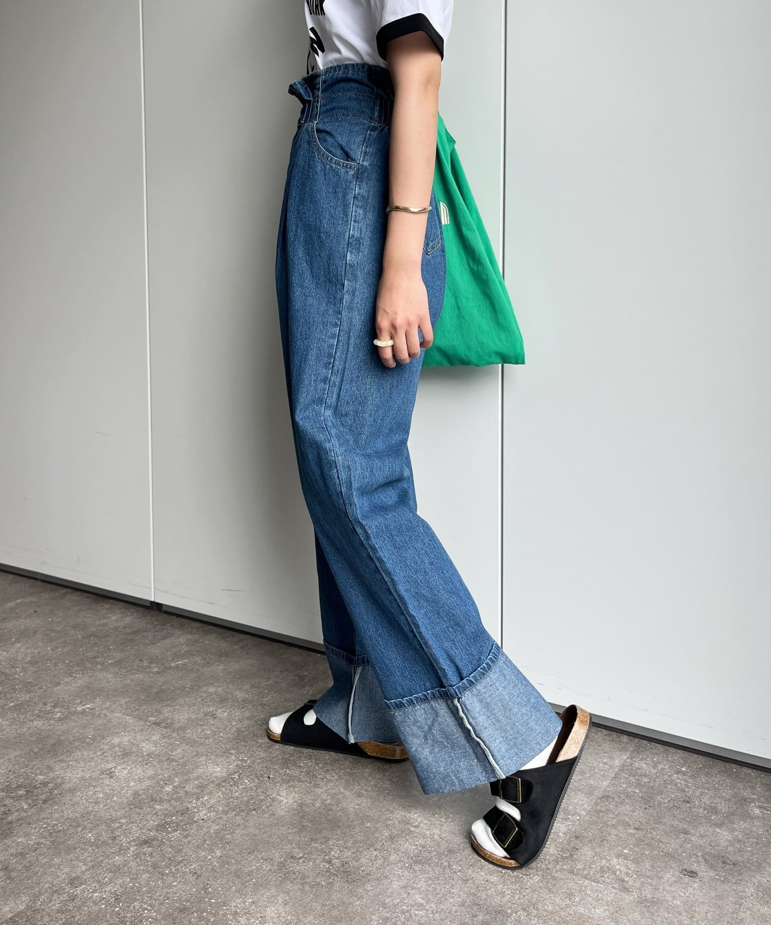 程よくワイドなデニムパンツは、トップスをタックインして着るのがオススメです◎