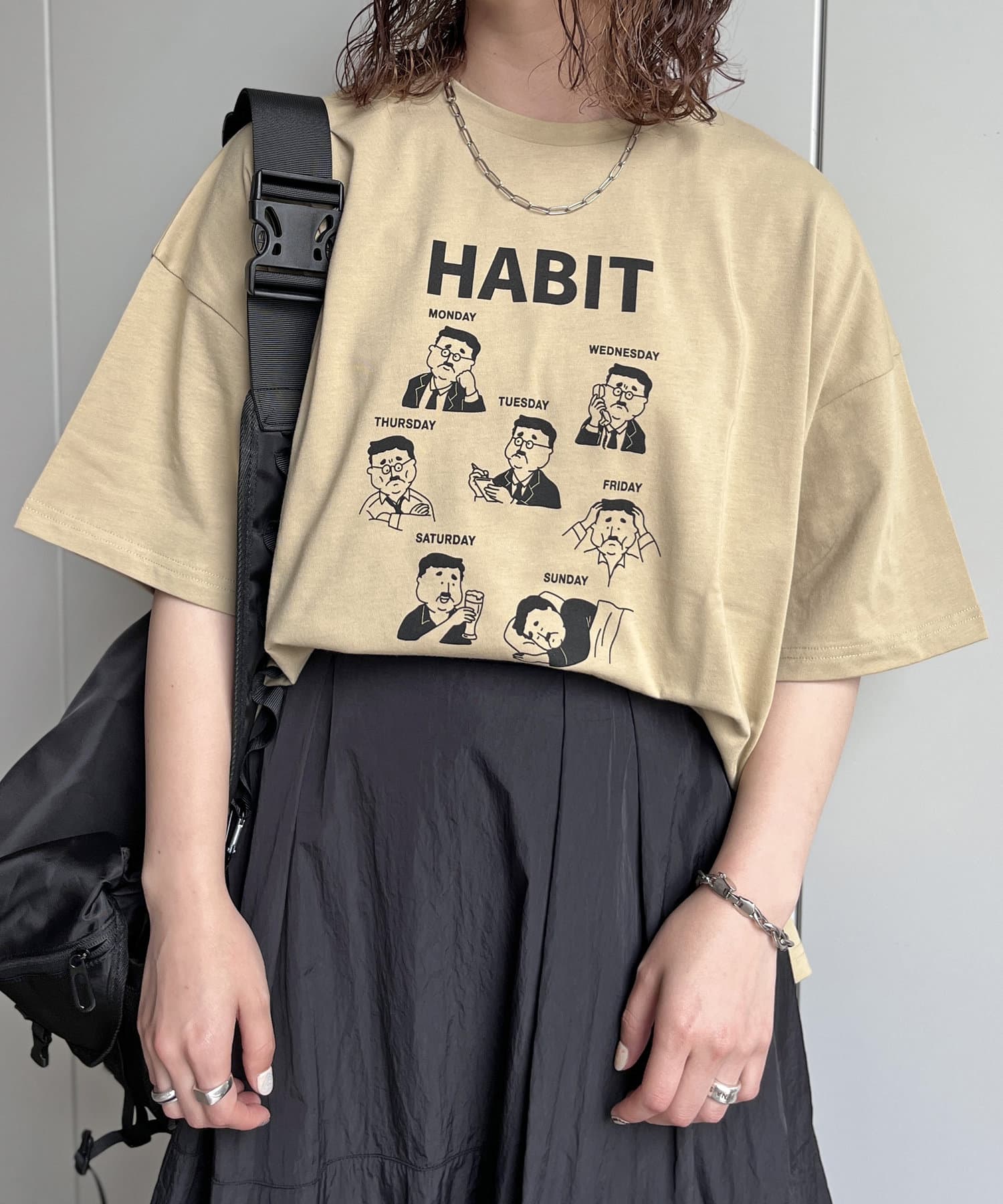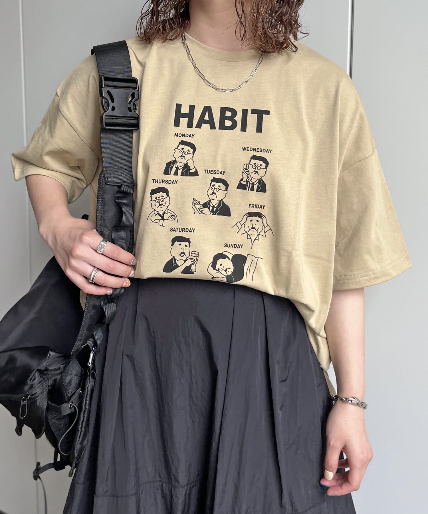 ルーズなサイズ感のTシャツは、デニムやカーゴパンツからティアードスカートやナロースカートまで様々なボトムと好相性です。