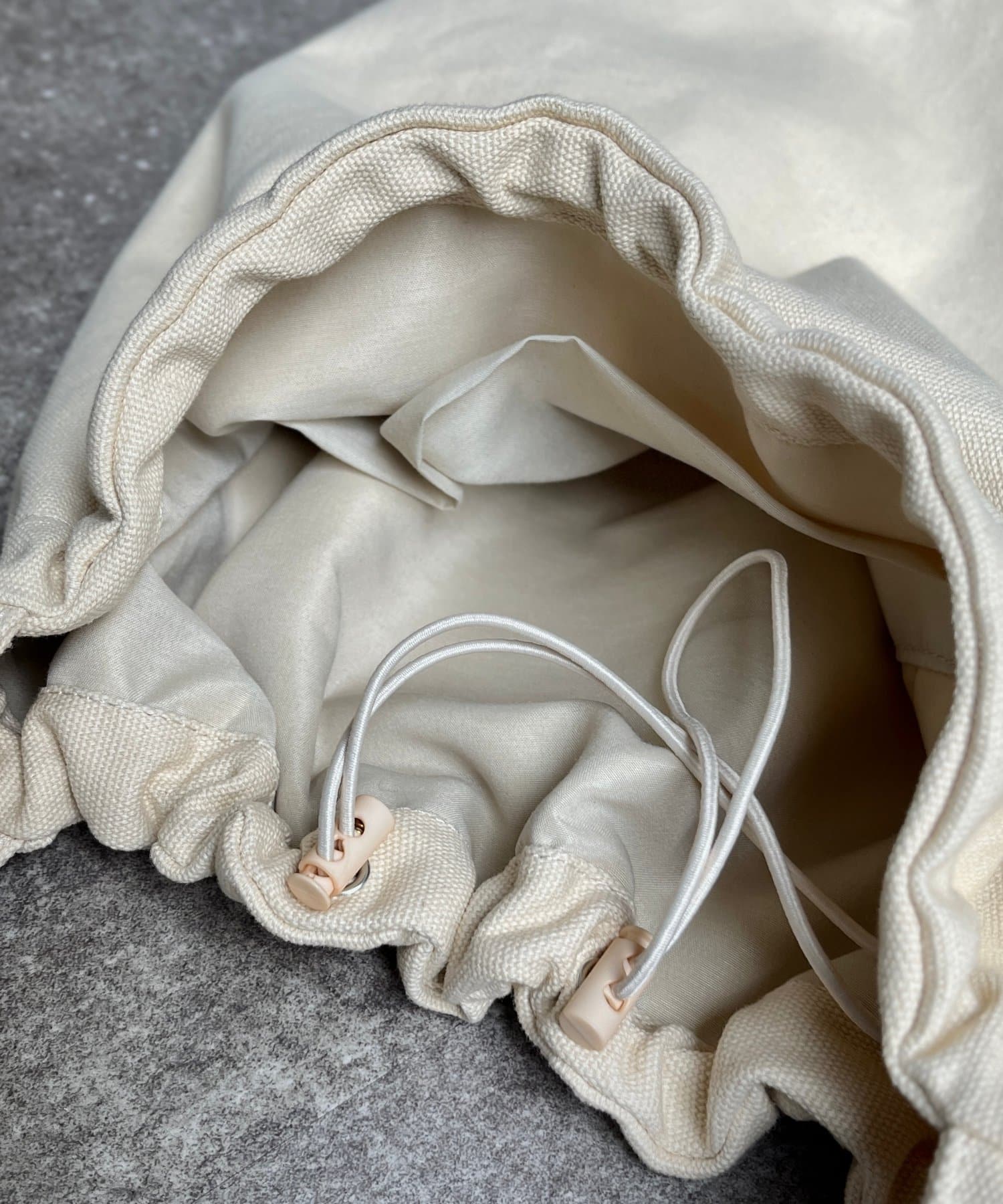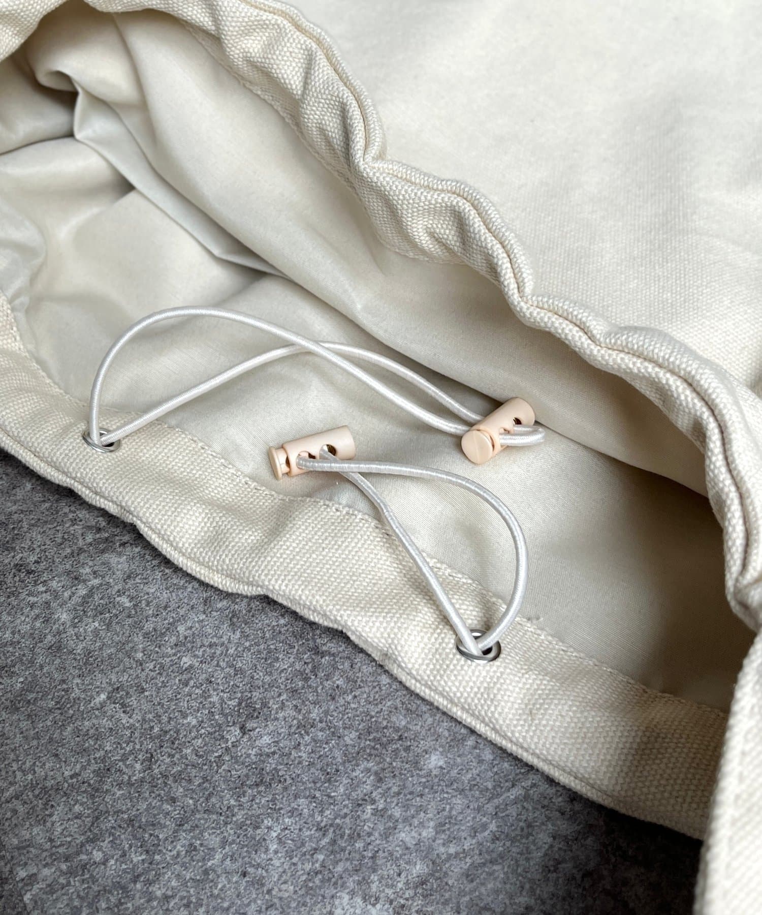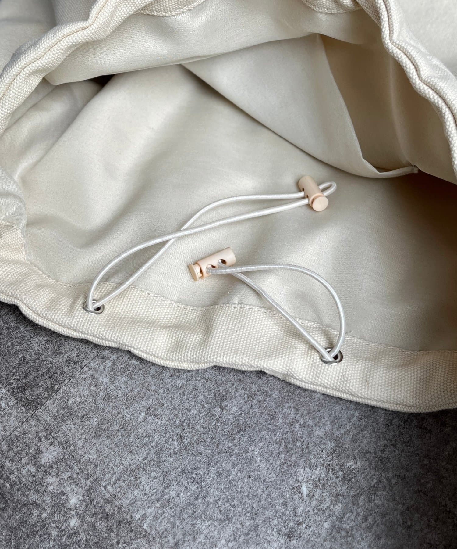 ドローコード付きで、くしゅっとギャザーも楽しめるショルダートートバッグです。