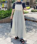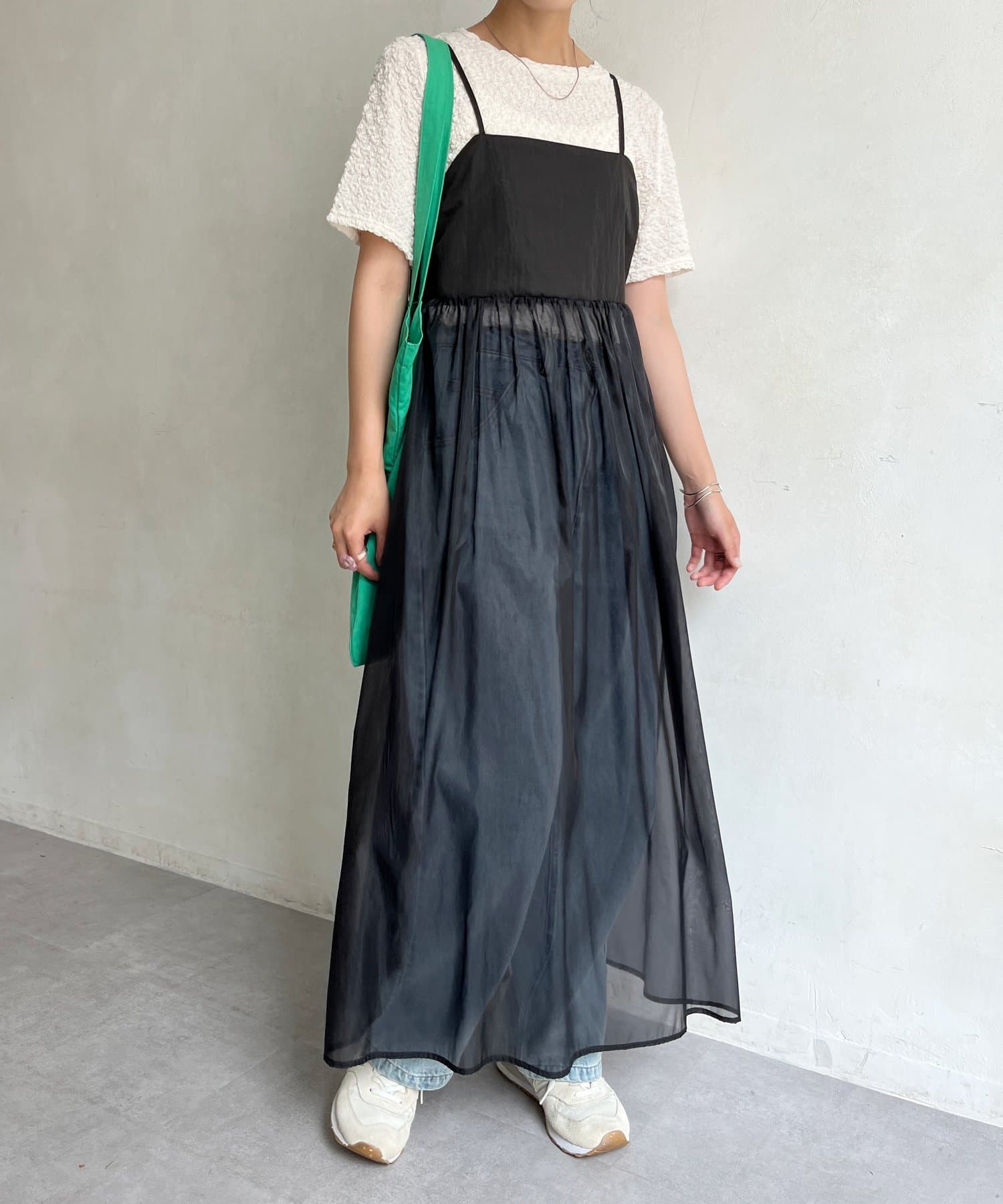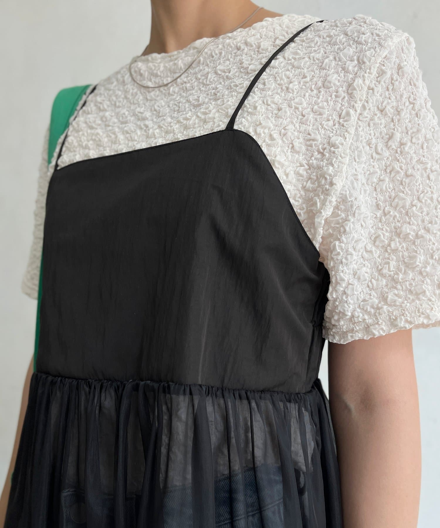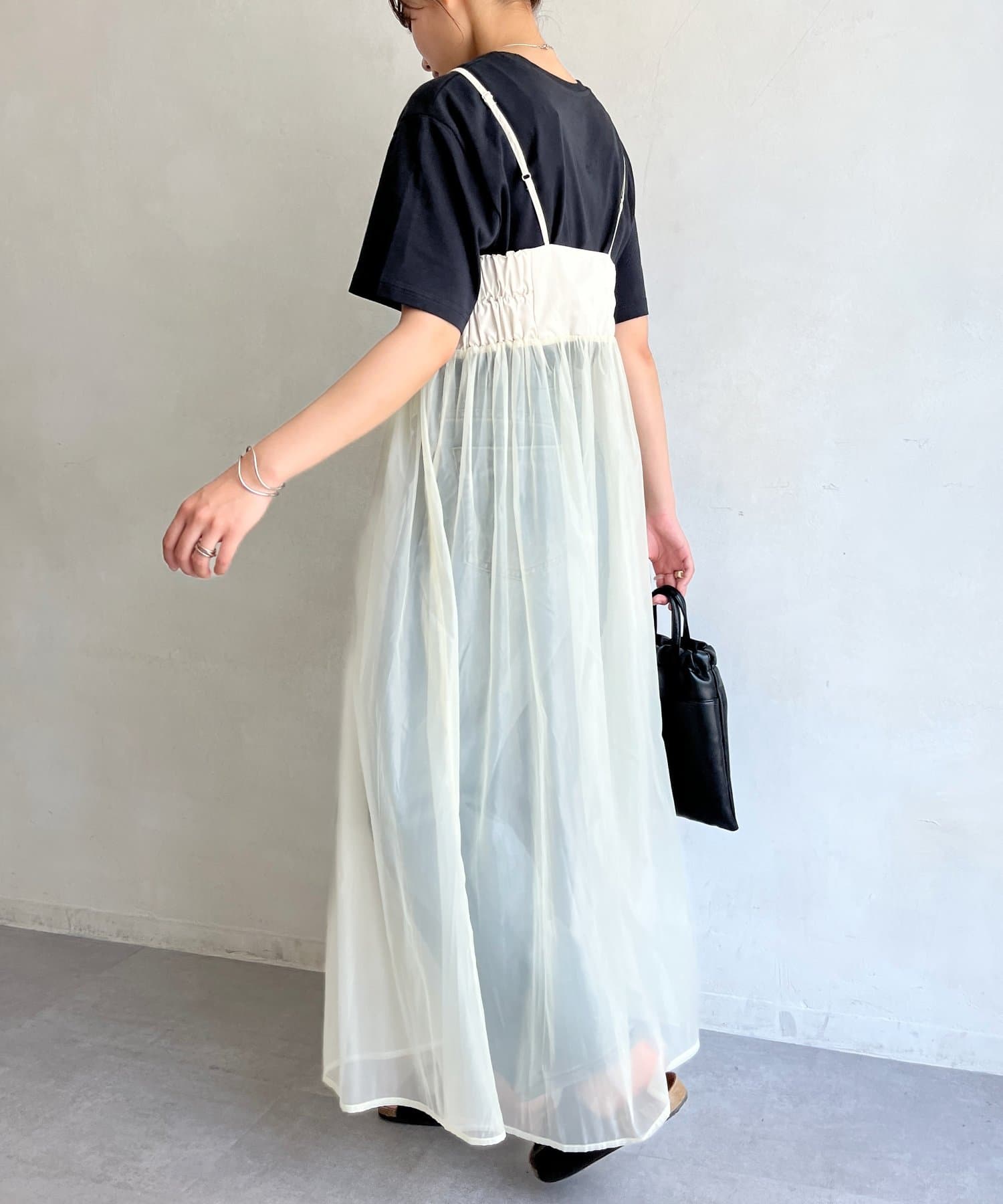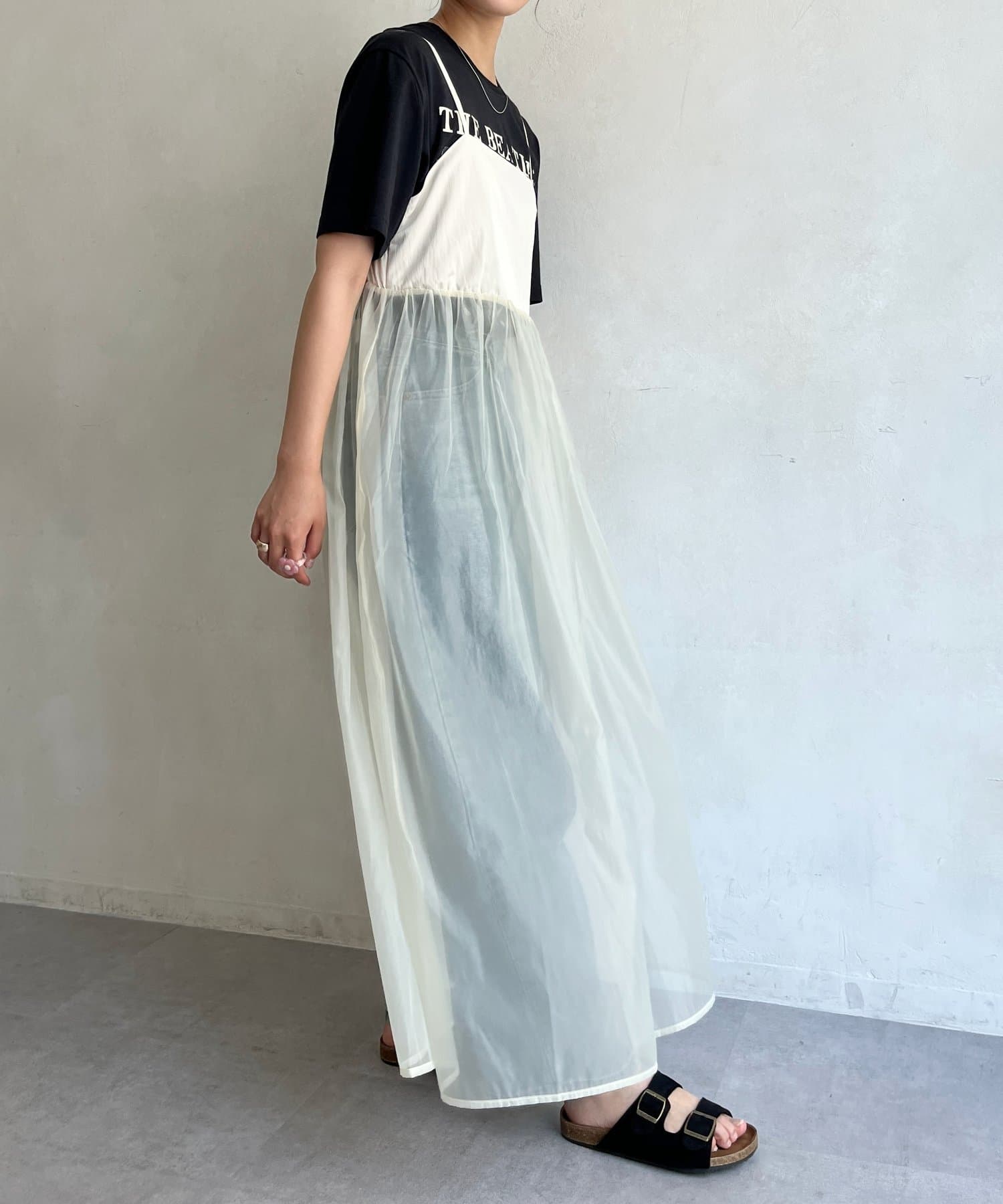 オーガンジー切替キャミワンピース