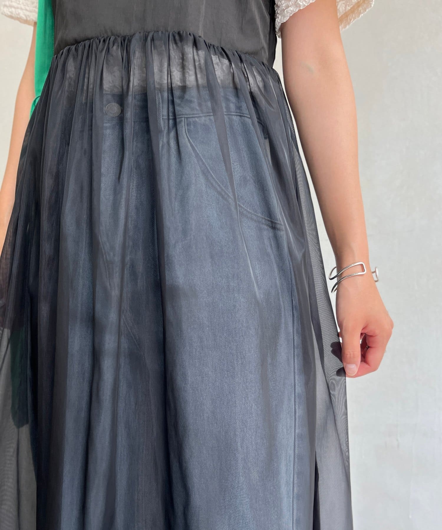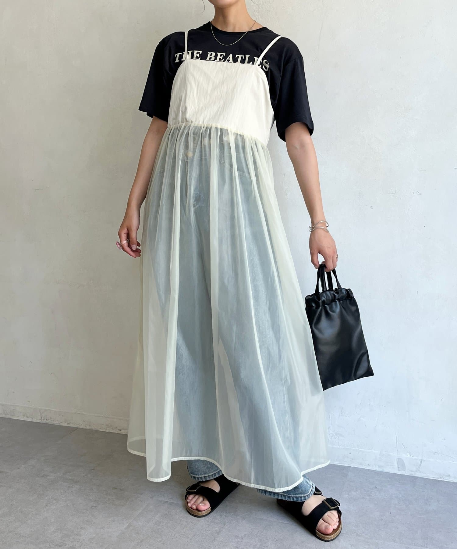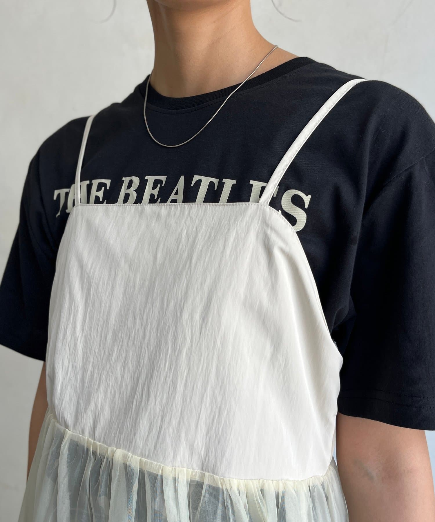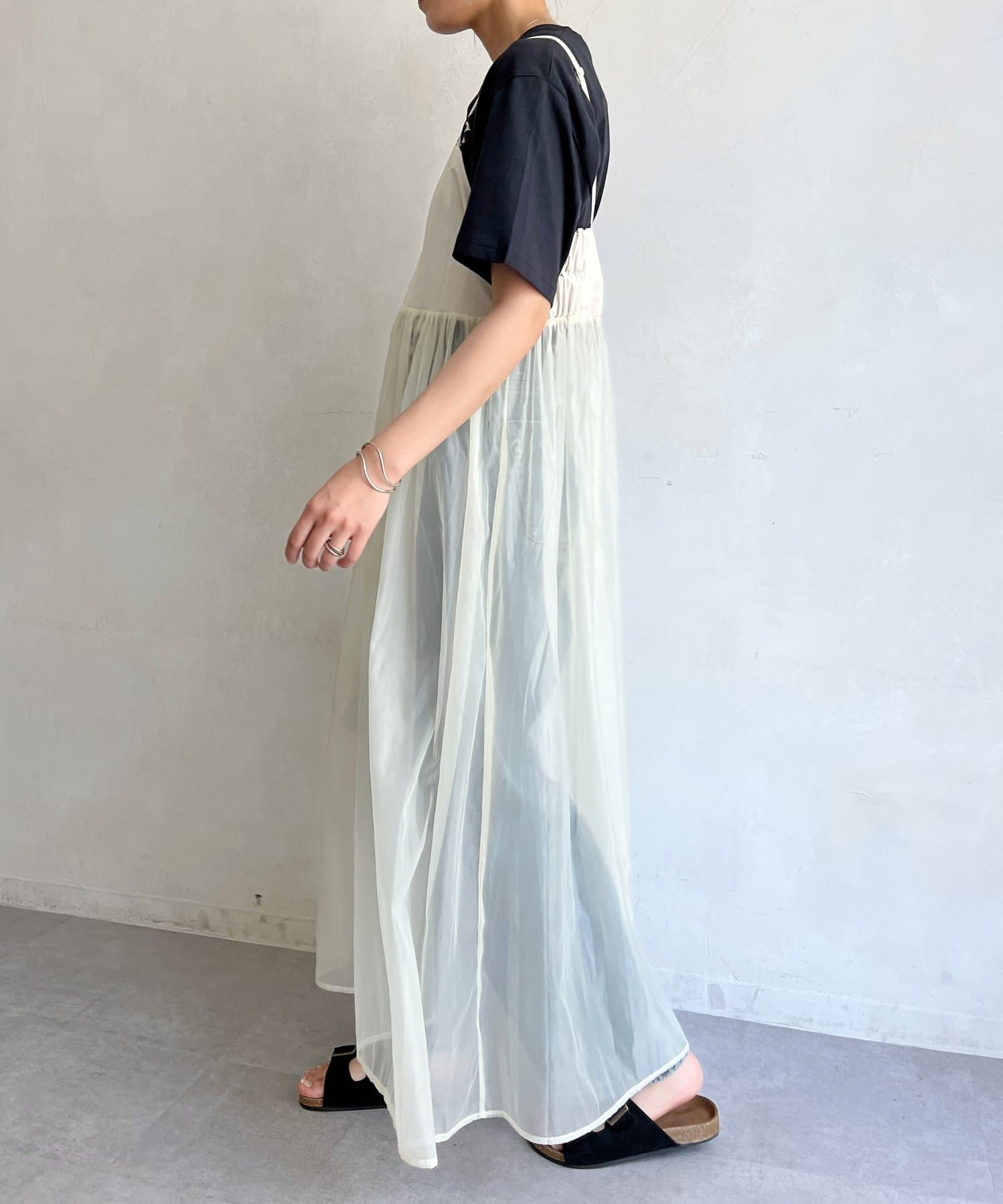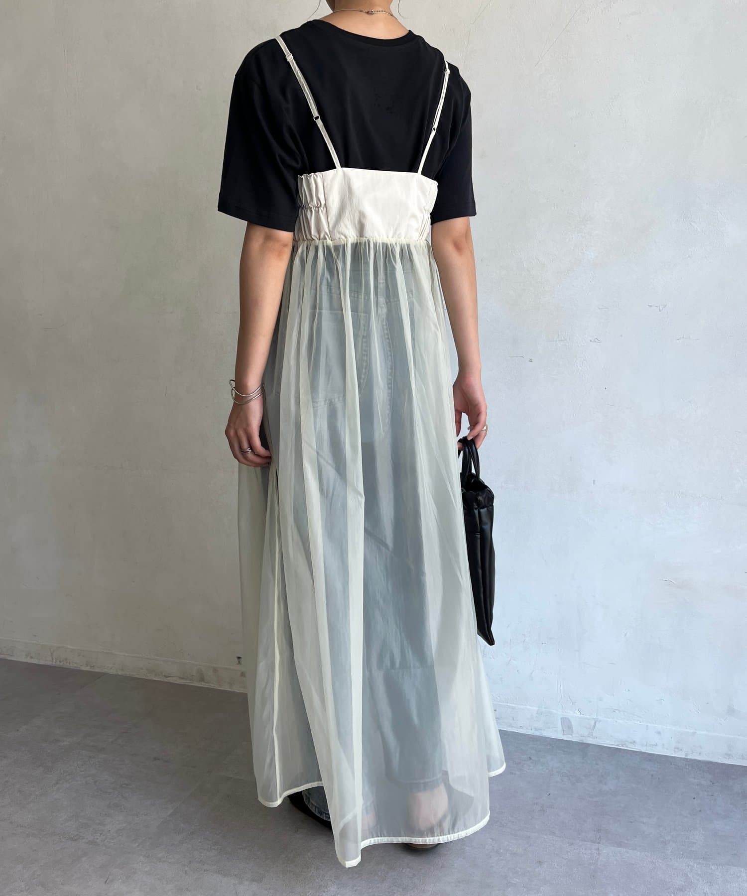 オーガンジー切替キャミワンピース