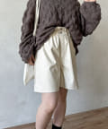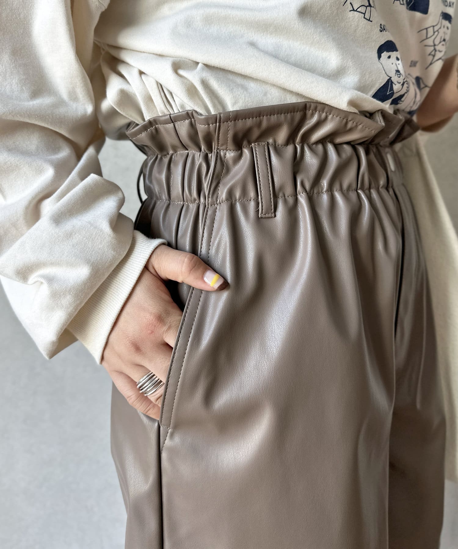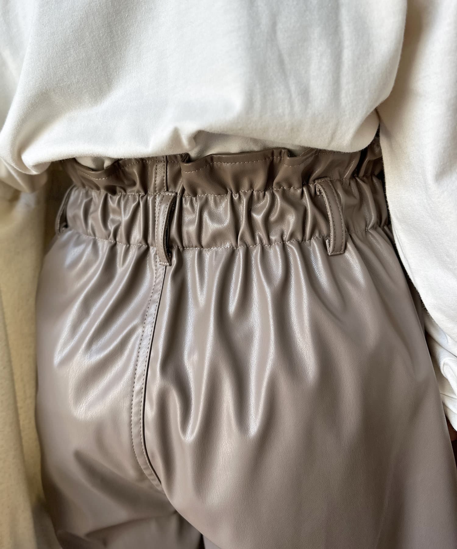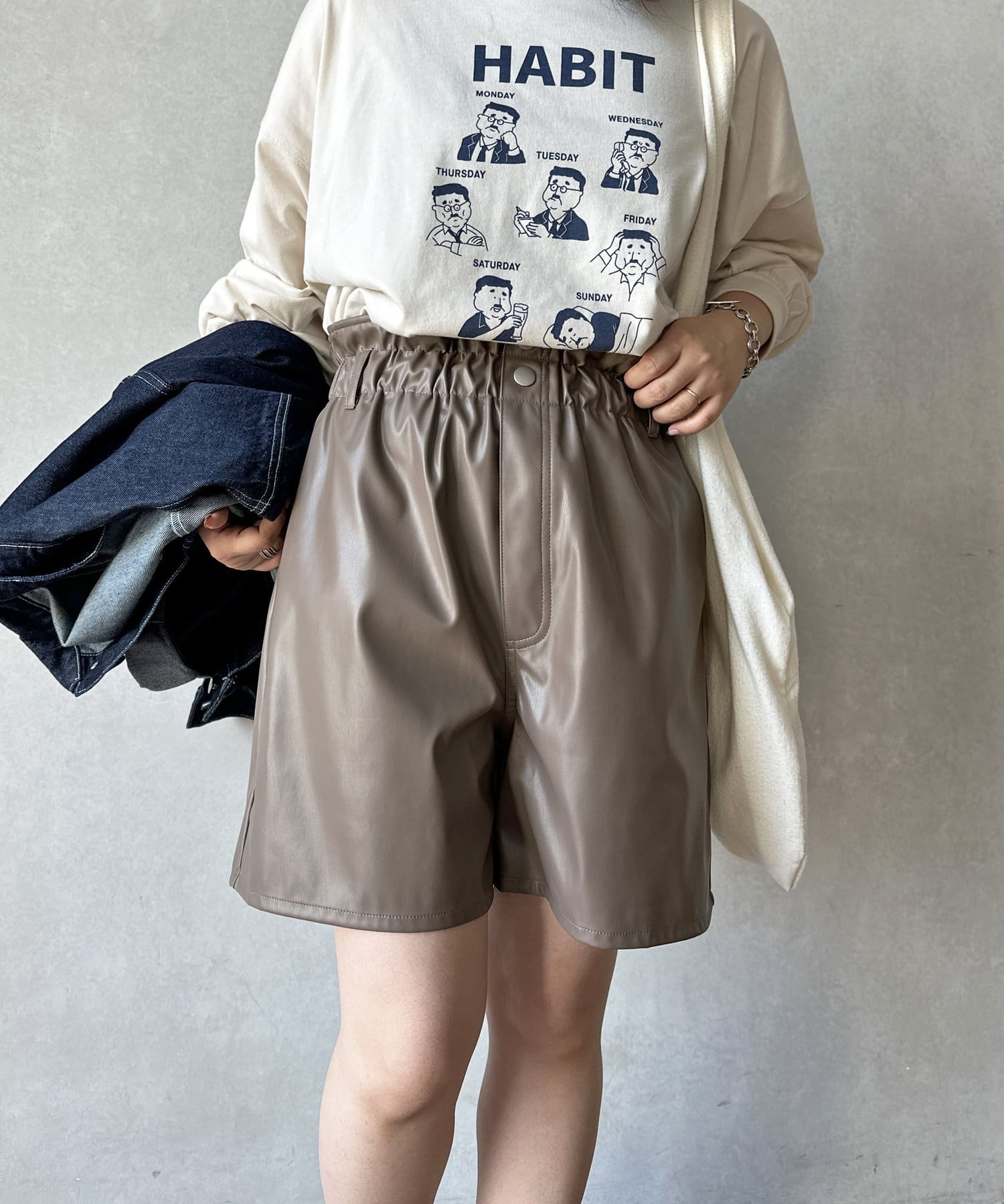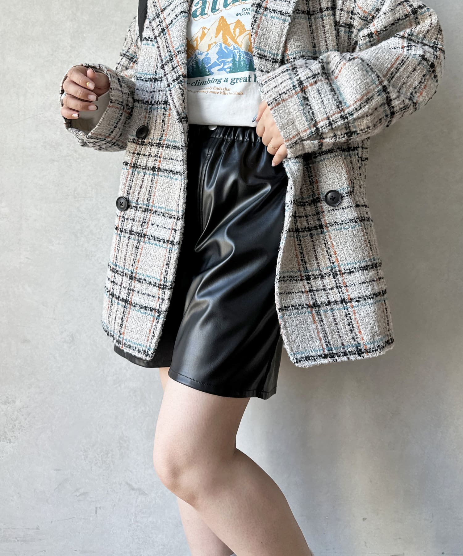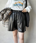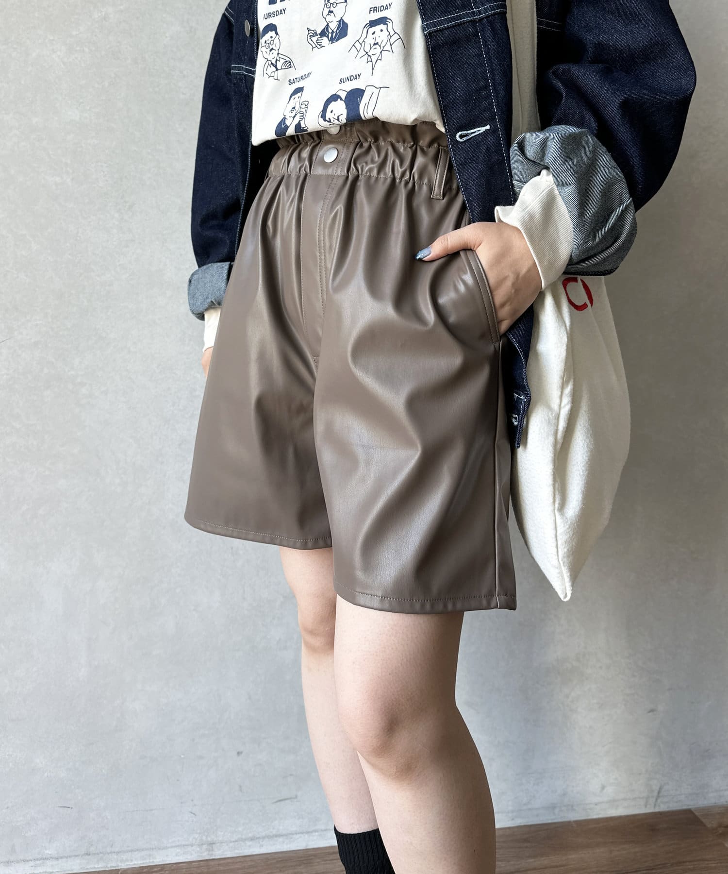 今年トレンドのショートパンツに大人らしいレザーの風合いをプラスしたことで、落ち着いた雰囲気でショートパンツを着こなすことができます。