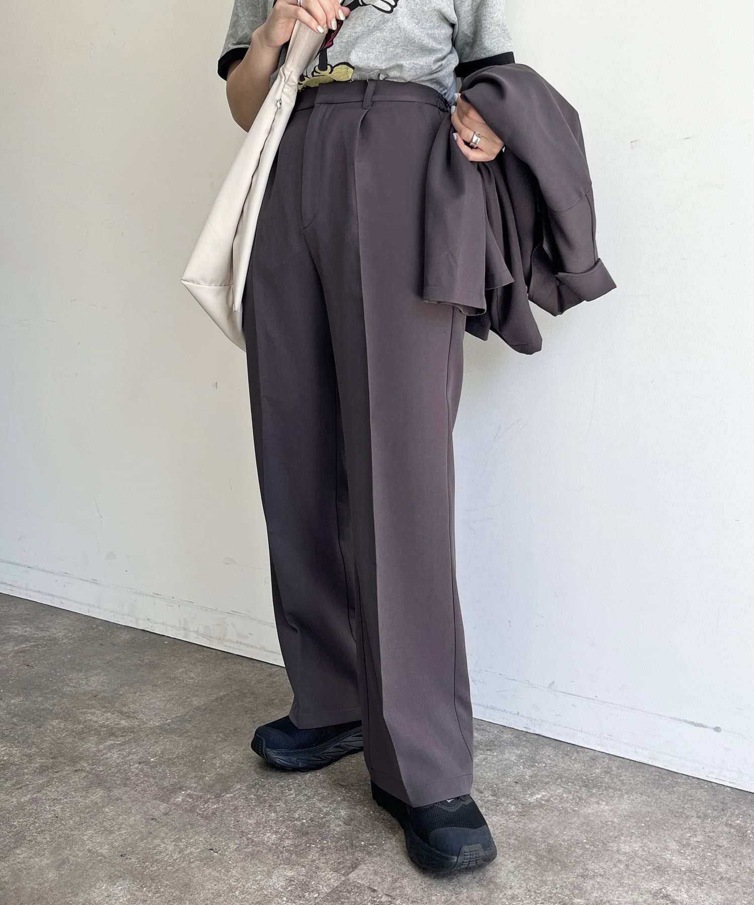 Tシャツでカジュアルダウンするのも◎シャツやブラウスでキレイめスタイルにも対応。