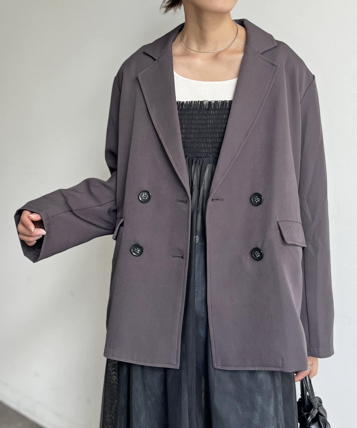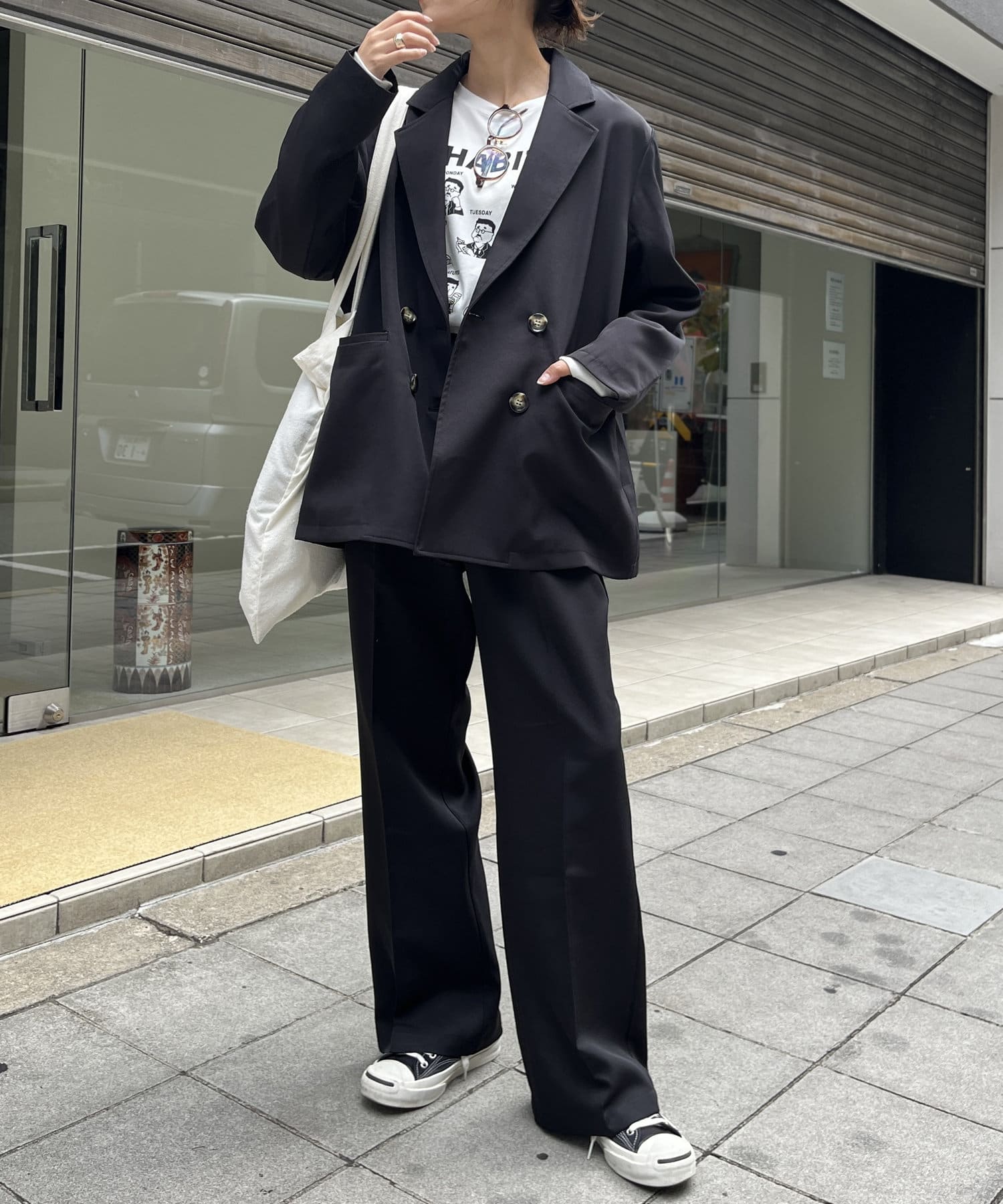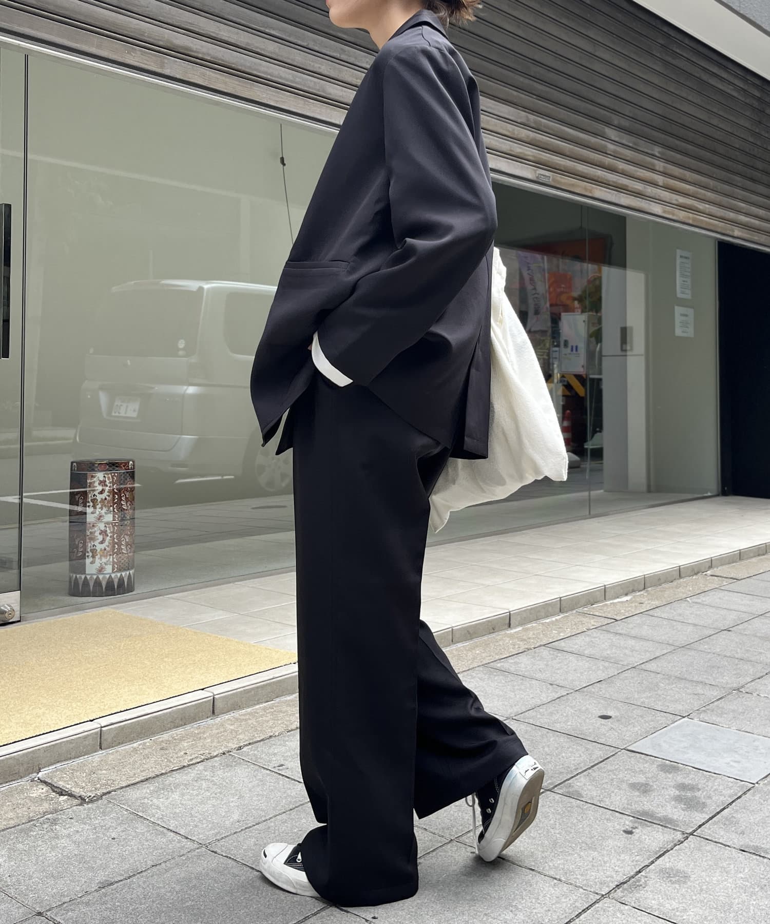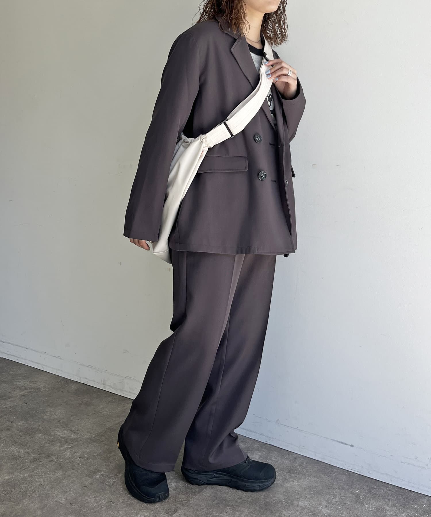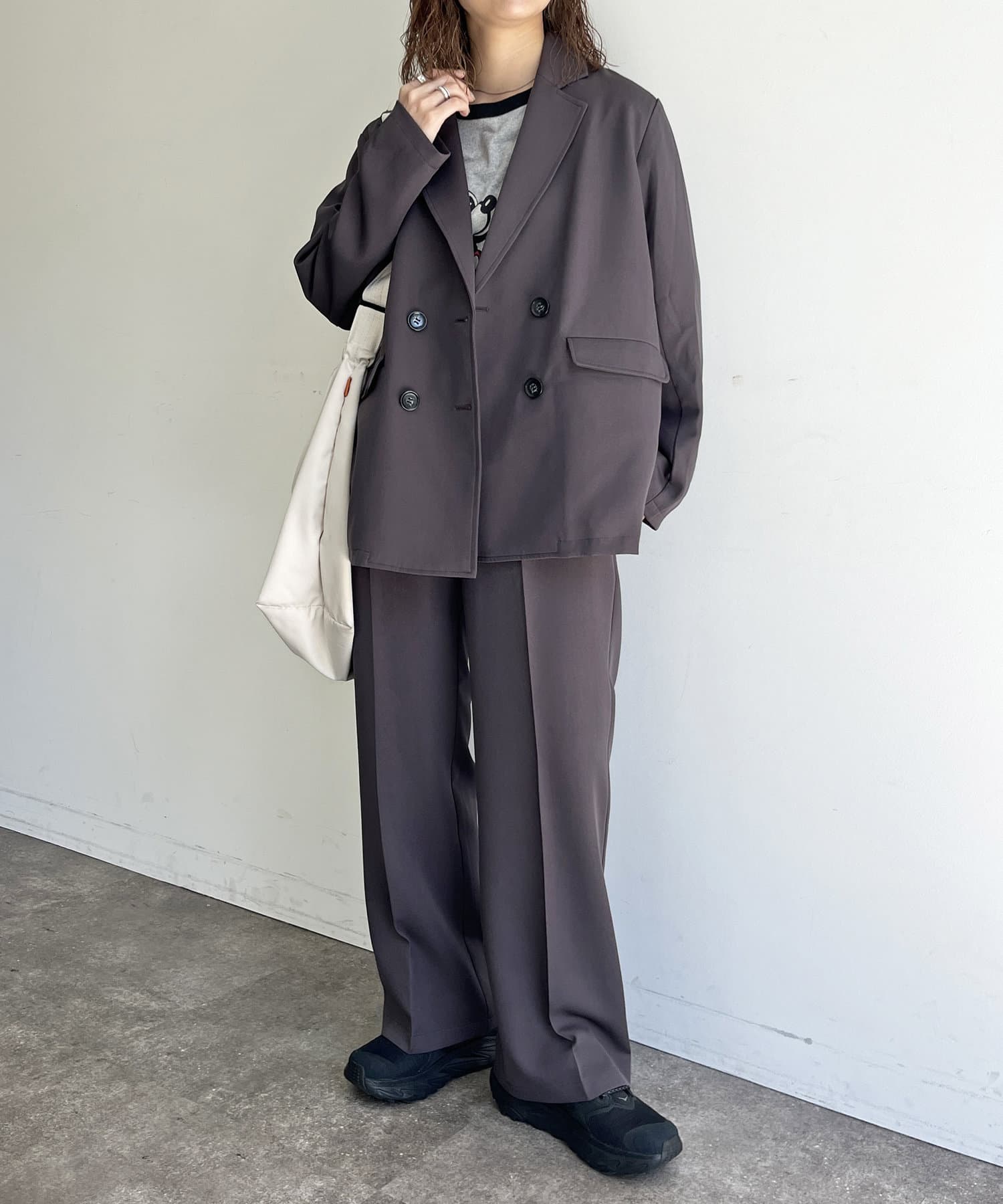 リラックス感のあるルーズシルエットで程よくカジュアルダウンさせて1枚。