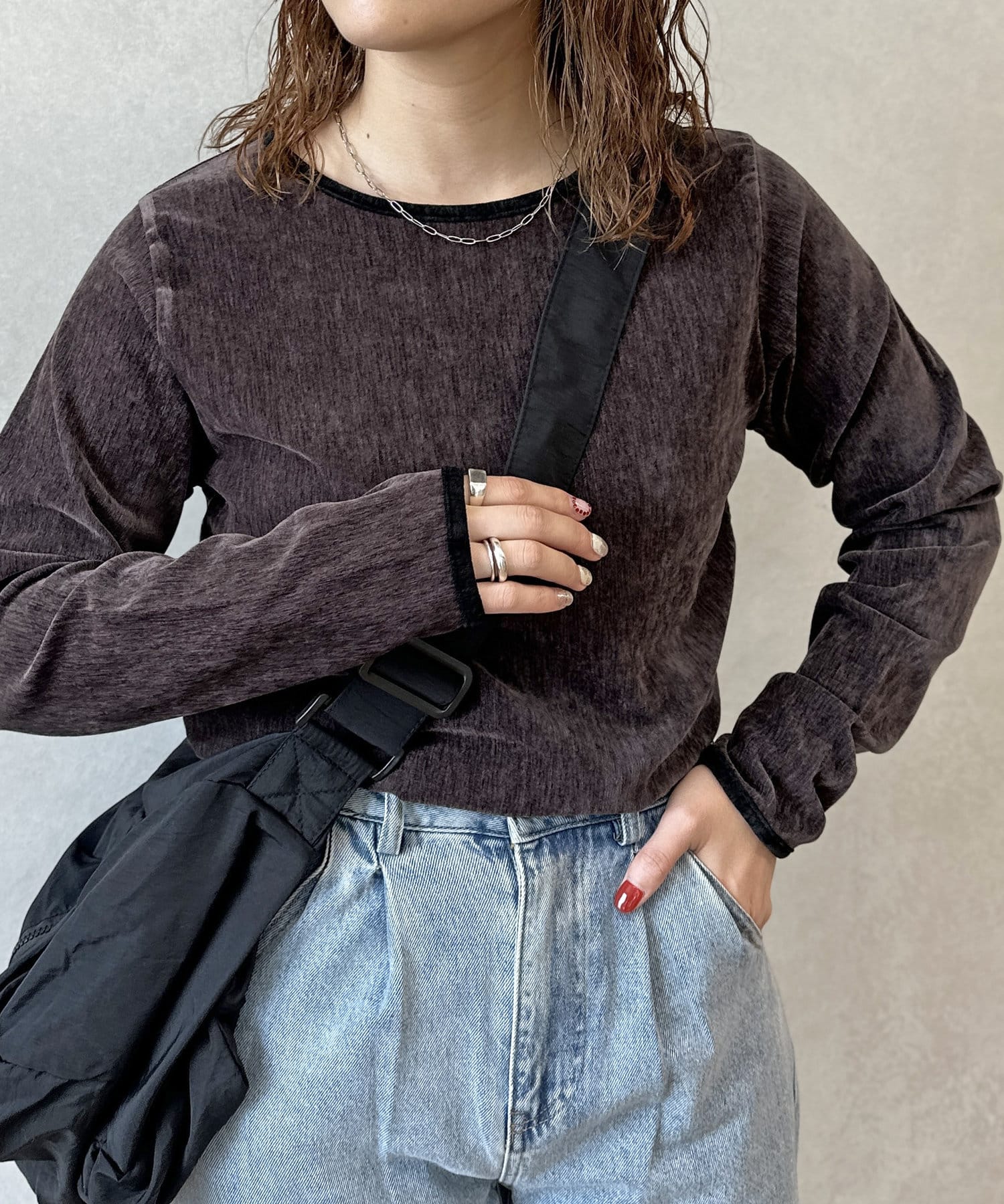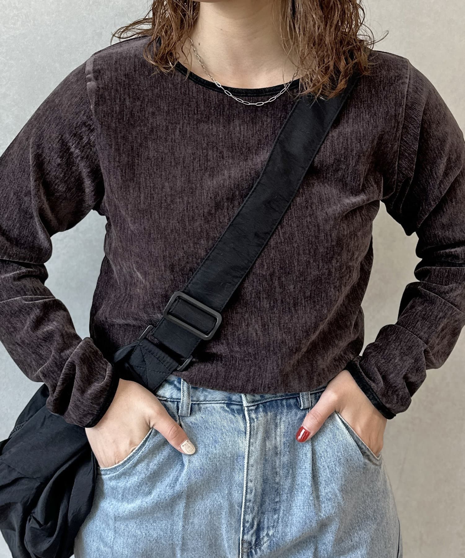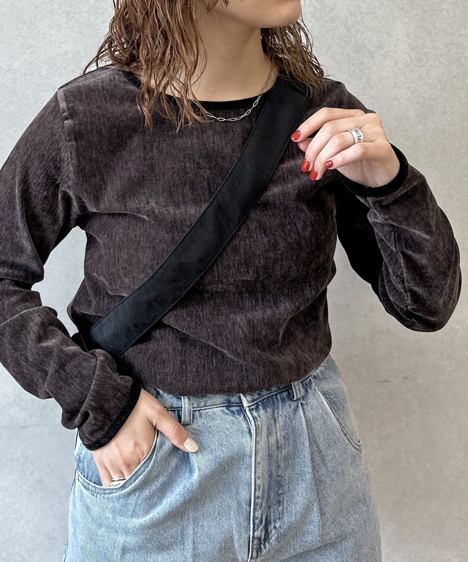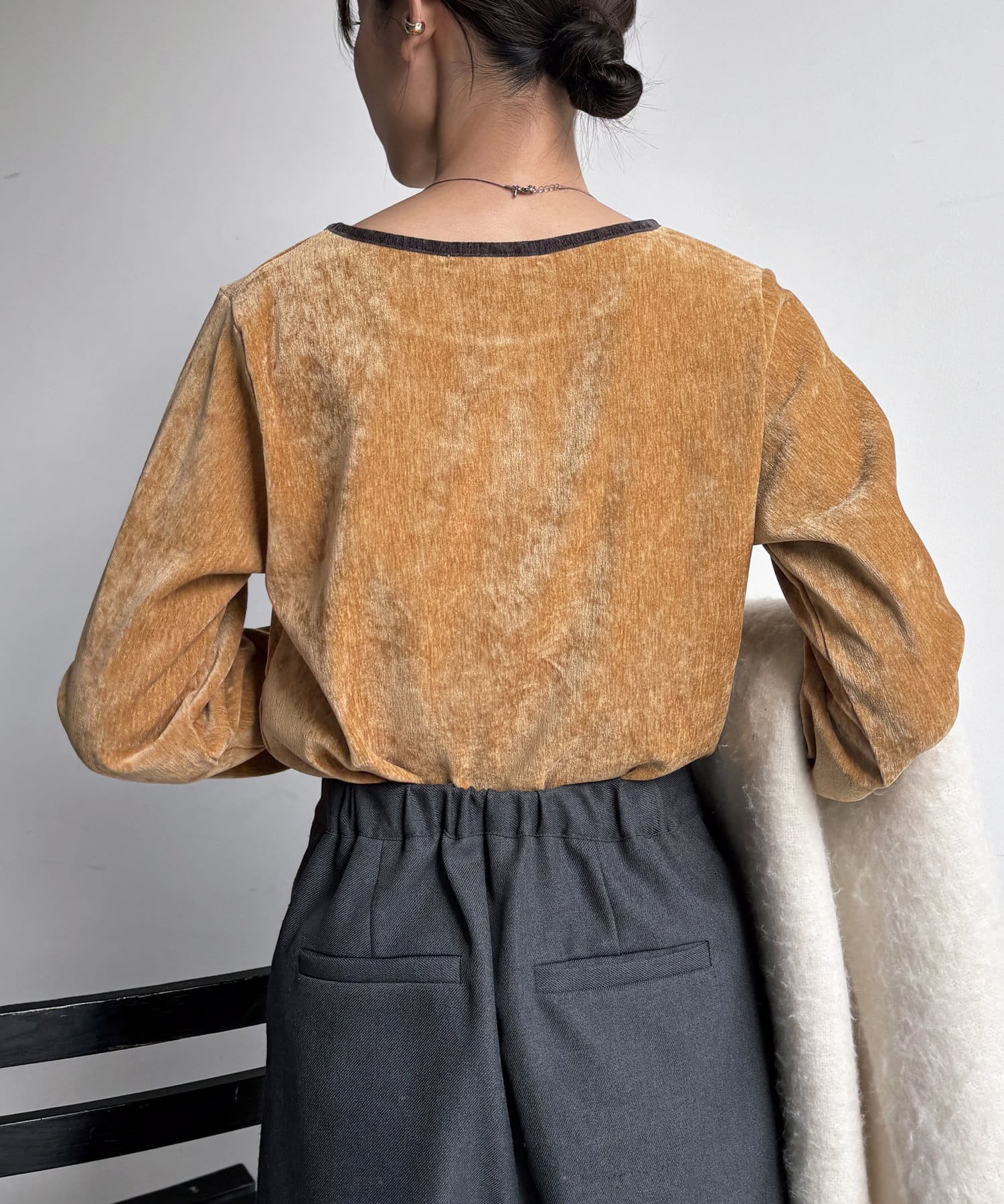 1枚でこなれたスタイリングが完成する、ベロアトップス。