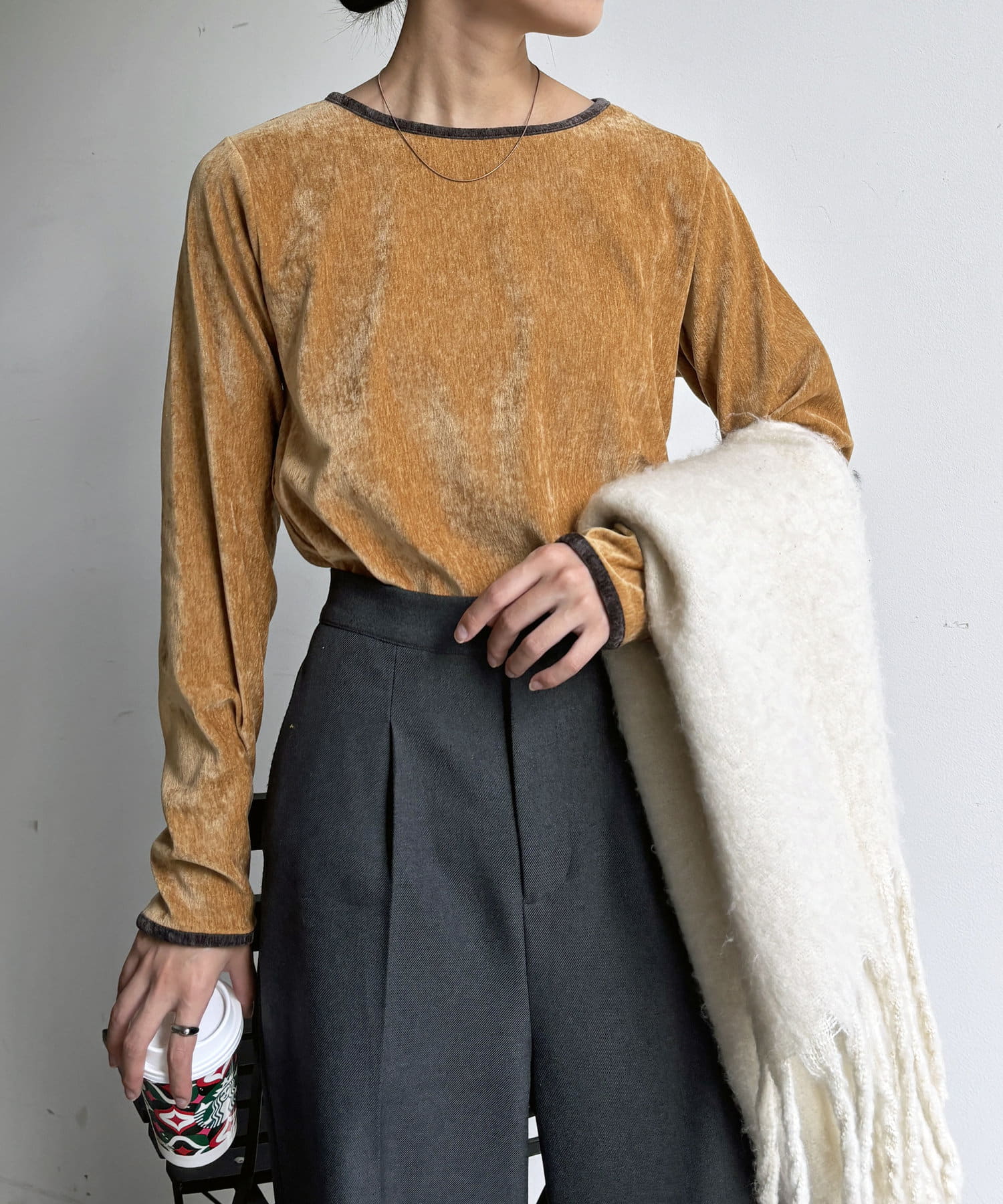 1枚でシーズンムードを高めてくれるベロアカットソーは今季持っておきたいアイテムの一つです。