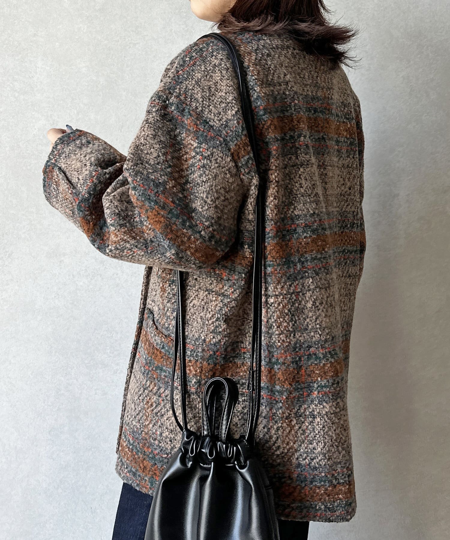ブークレの素材感を活かしたほっこり暖かいテーラードジャケット。