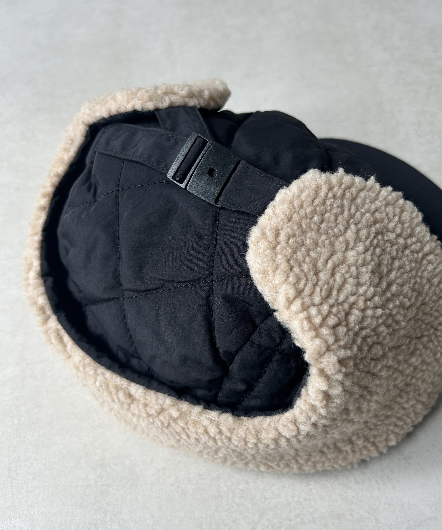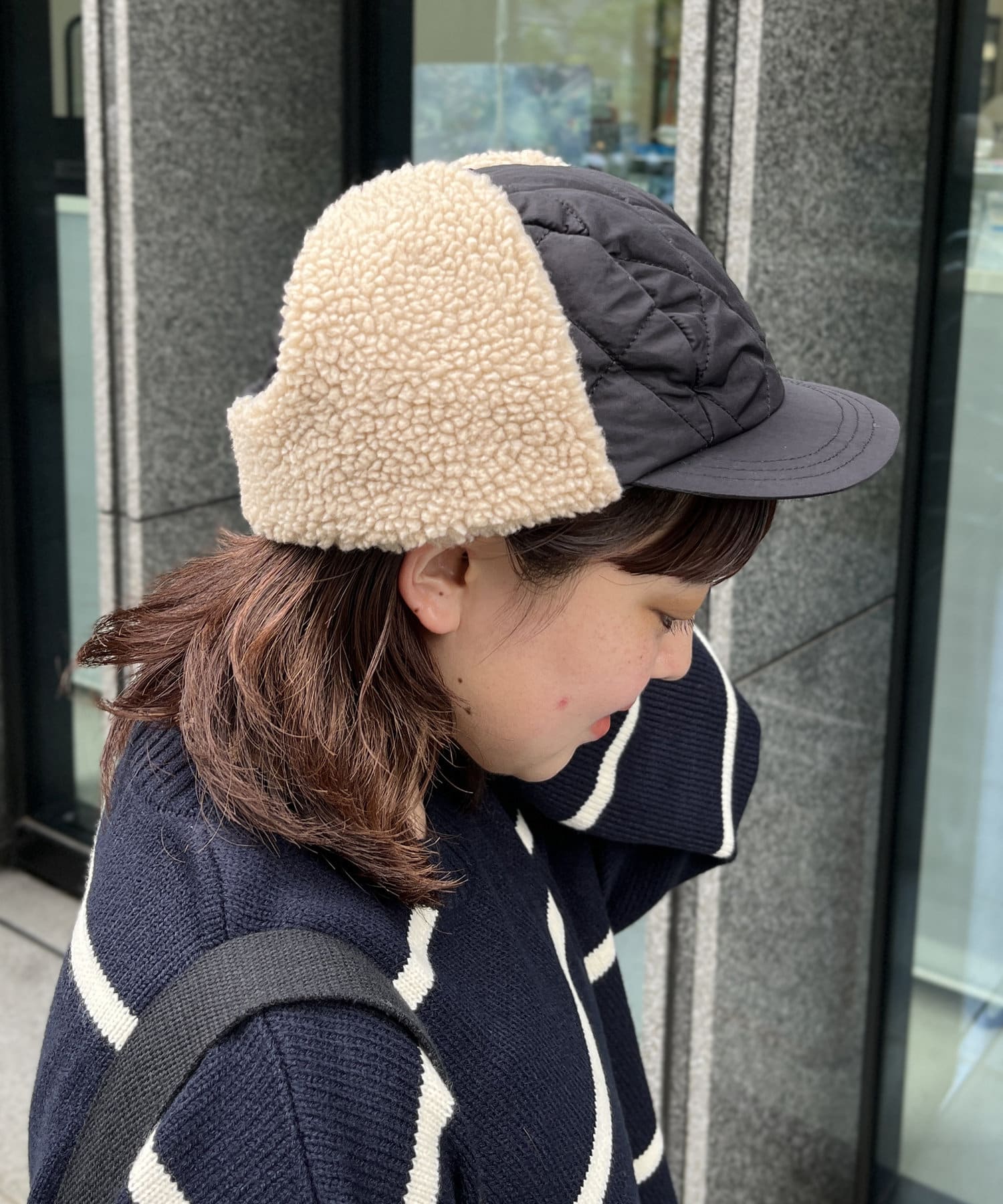 キルティング×ボア素材で他にはないデザインのフライトキャップ