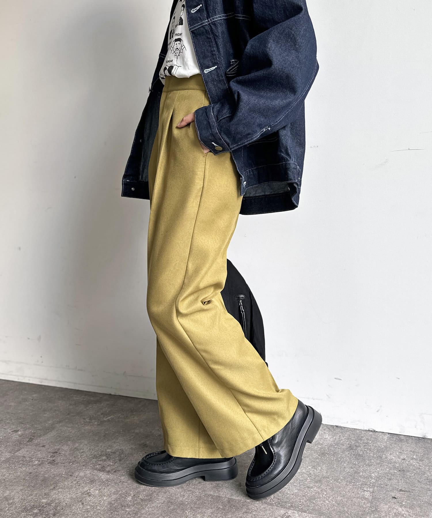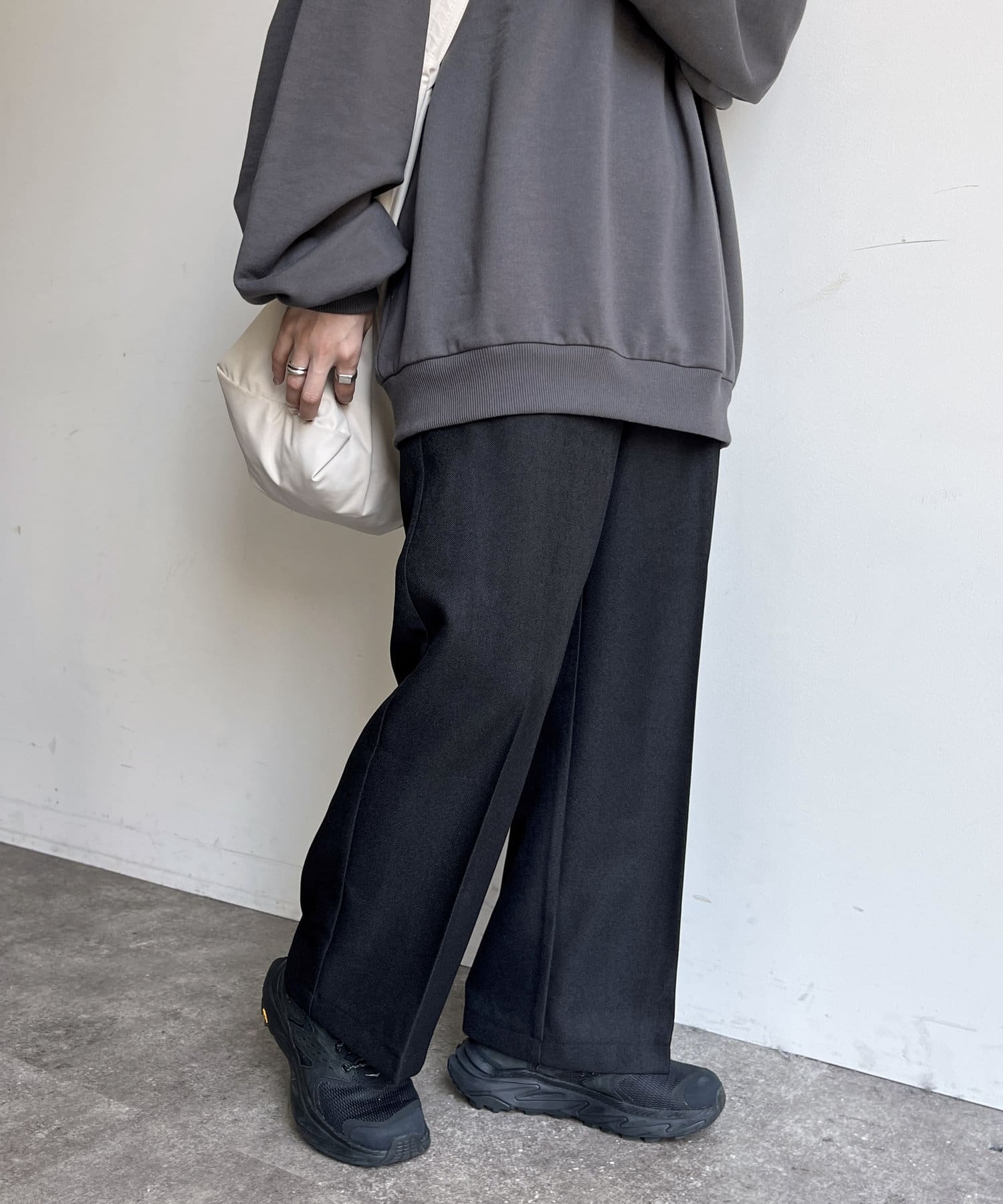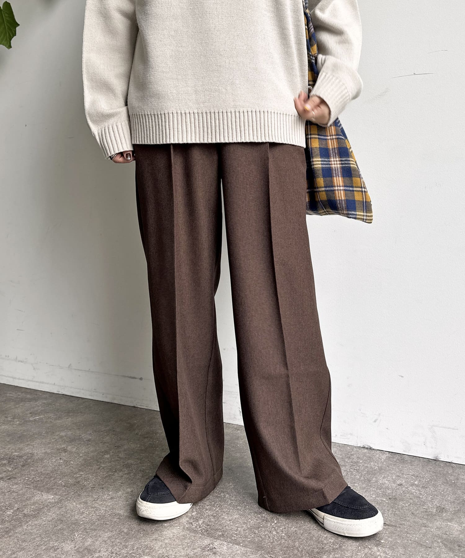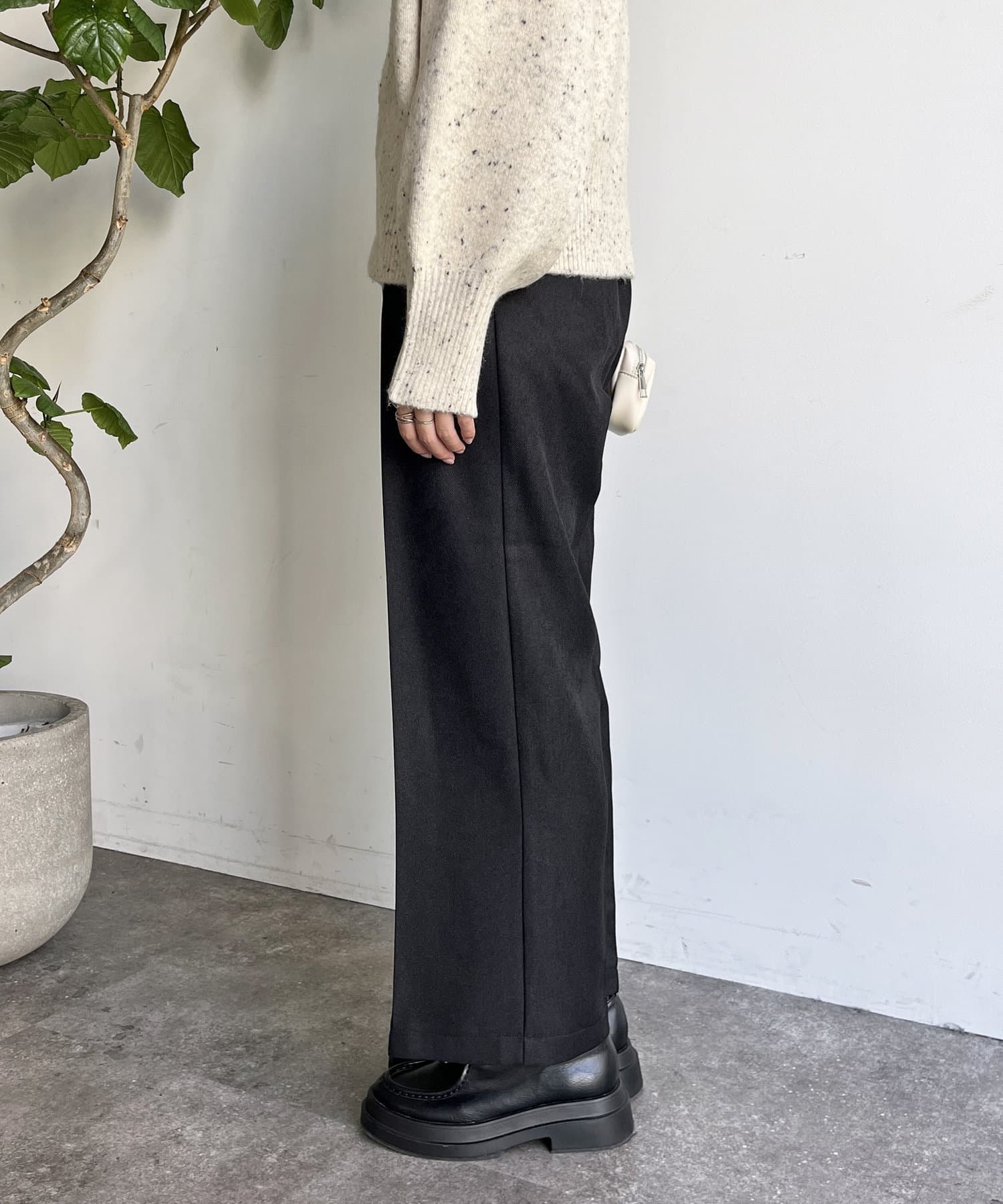 ウールライクな素材感でシーズンムード高まるタックパンツ。