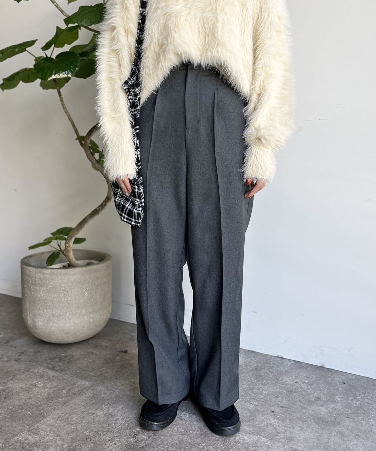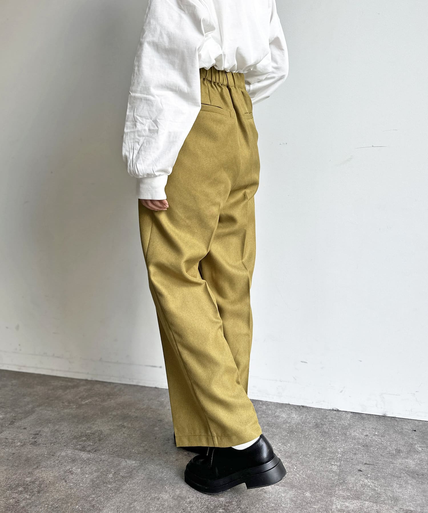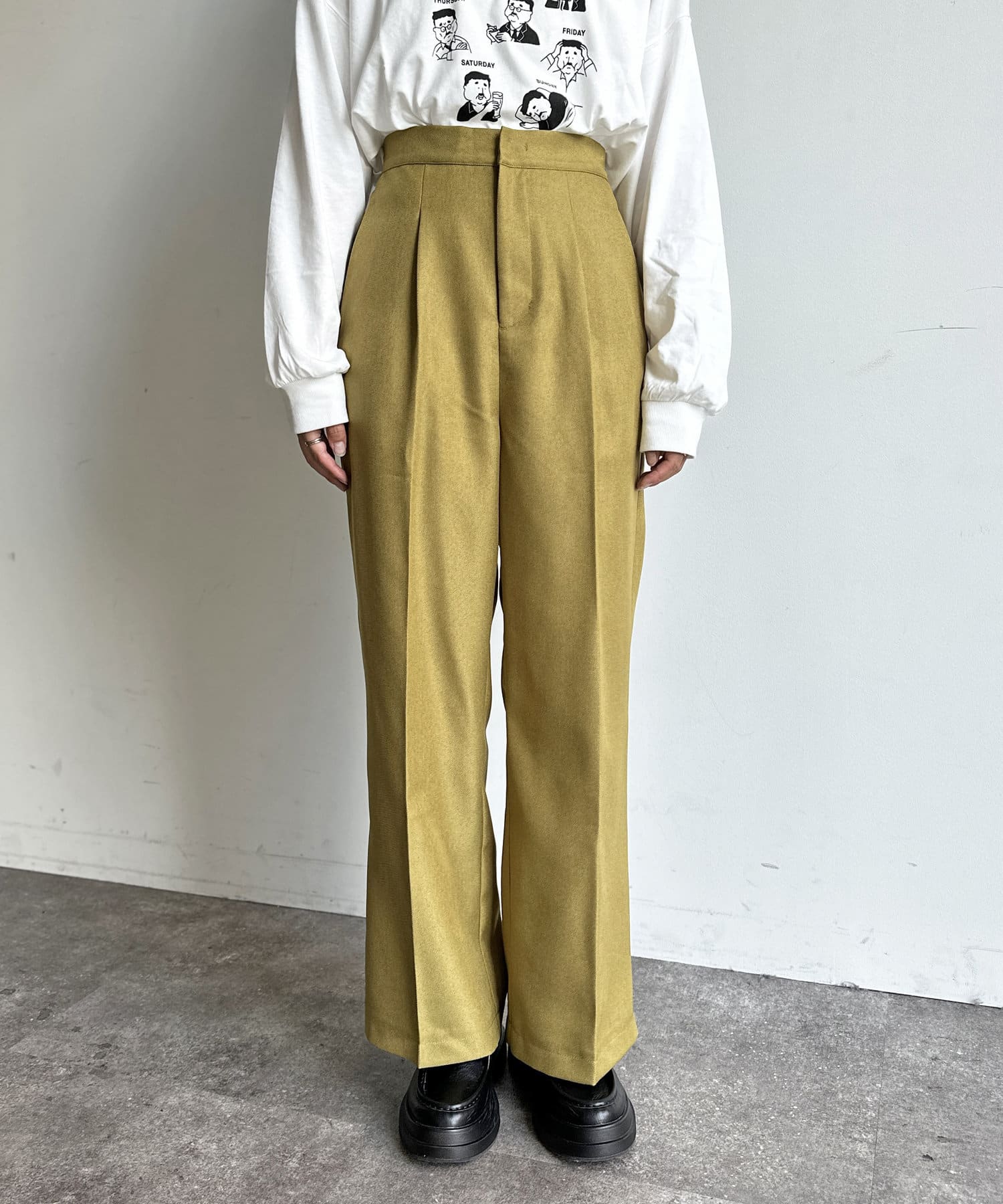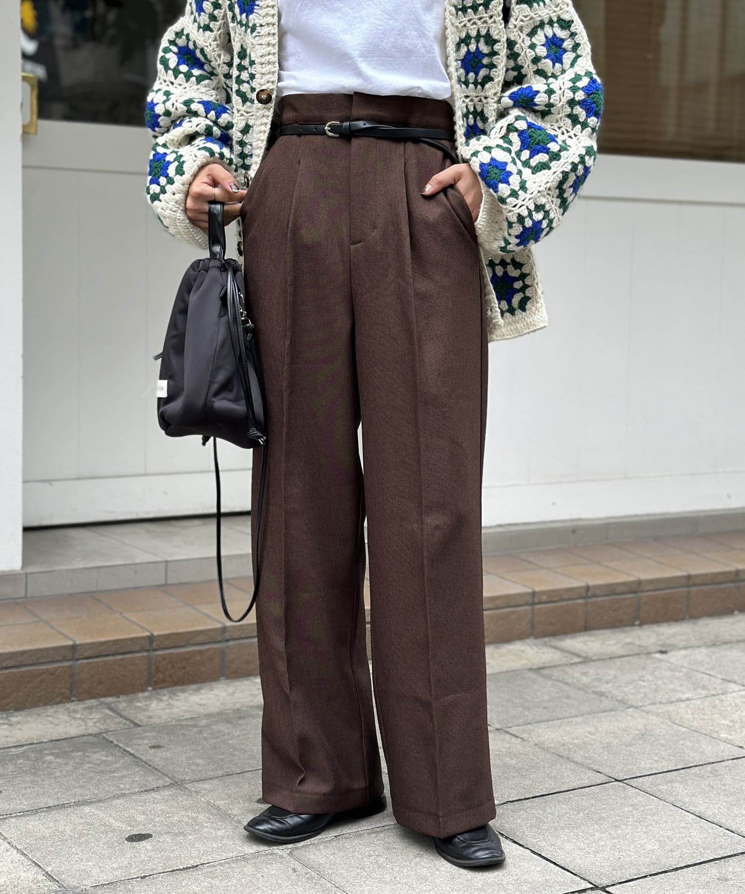ウールライクな素材感でシーズンムード高まるタックパンツ。