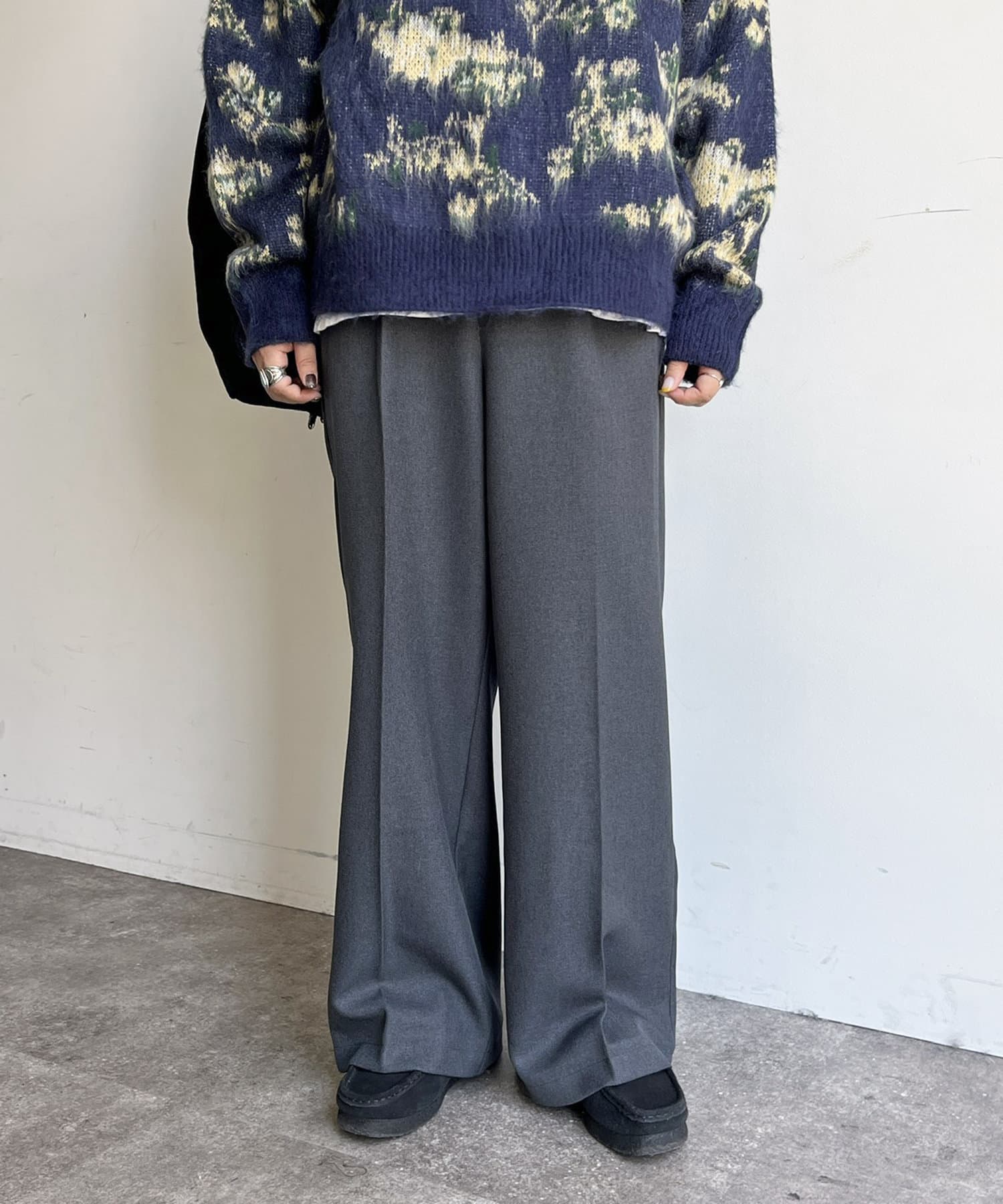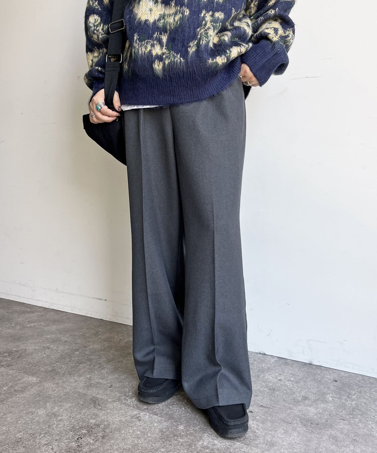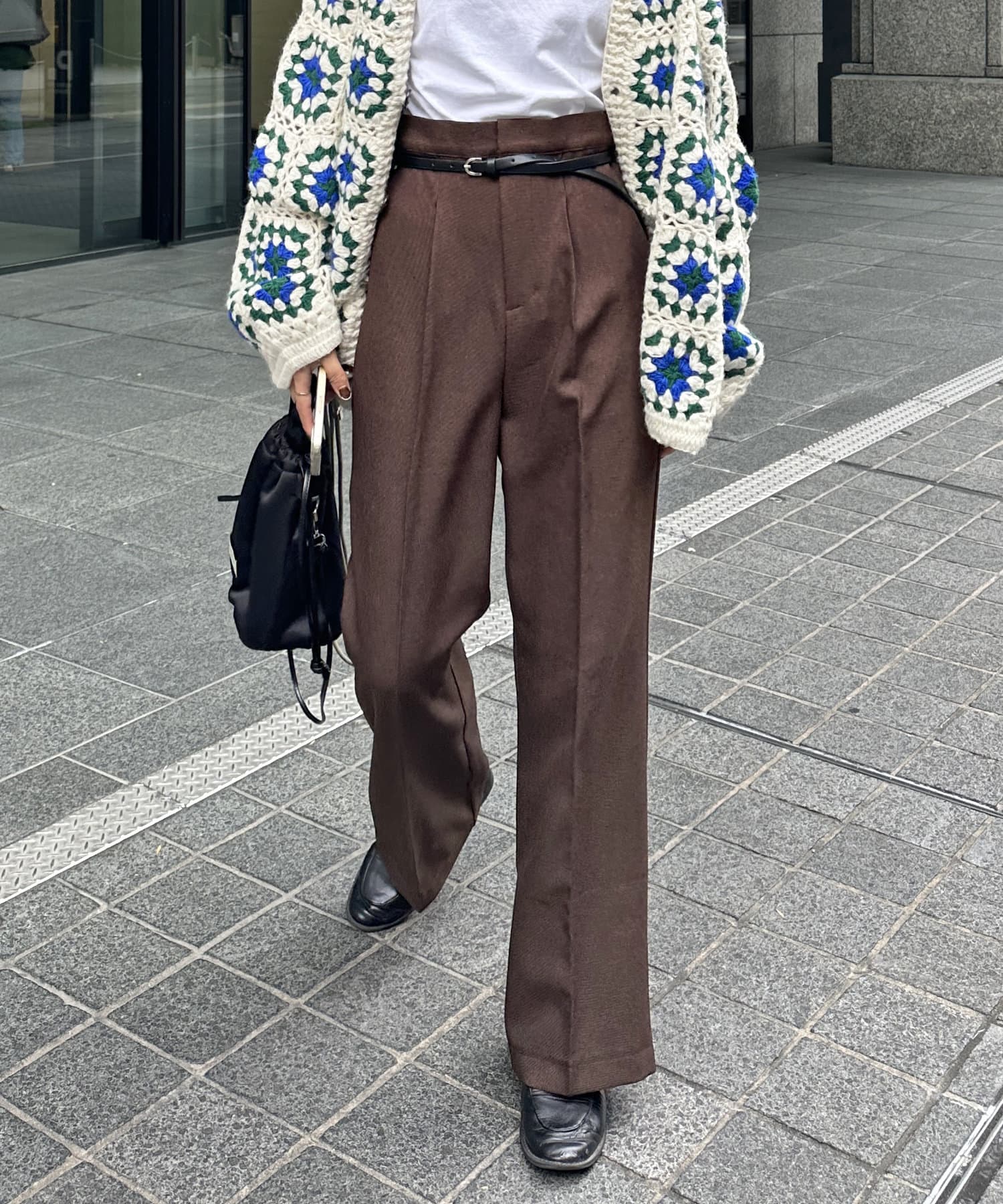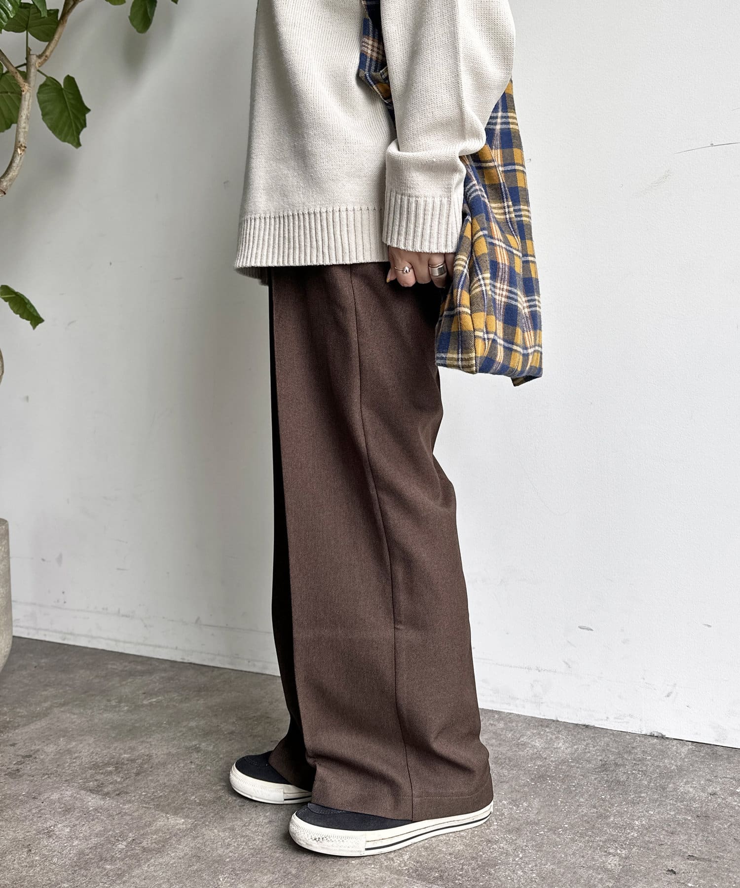 ウールライクな素材感でシーズンムード高まるタックパンツ。