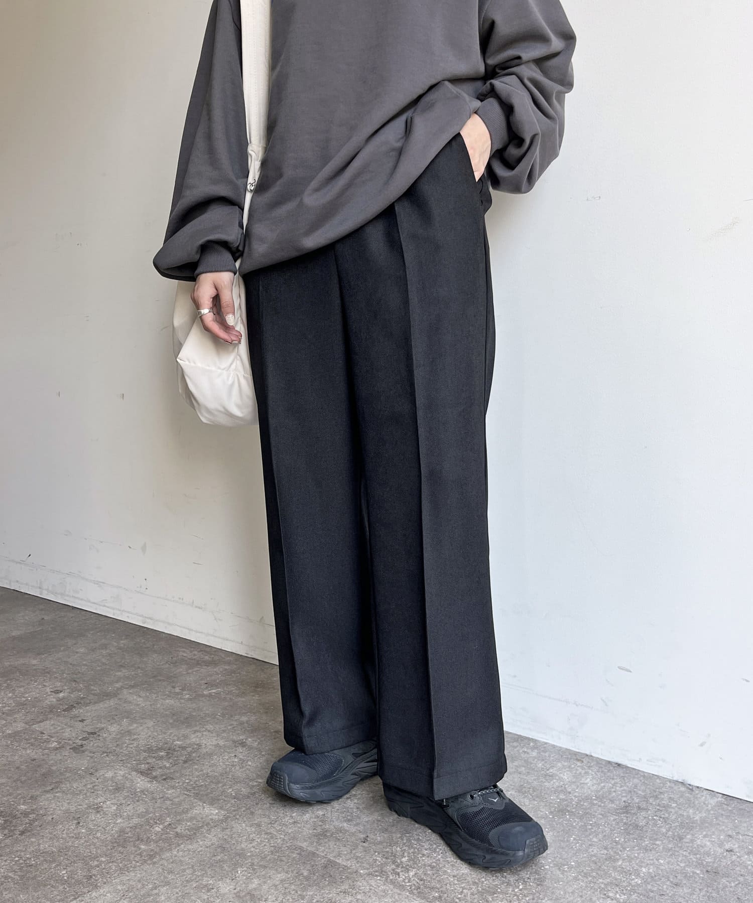 ・美脚見えするワイドストレートシルエット+センタープレスライン