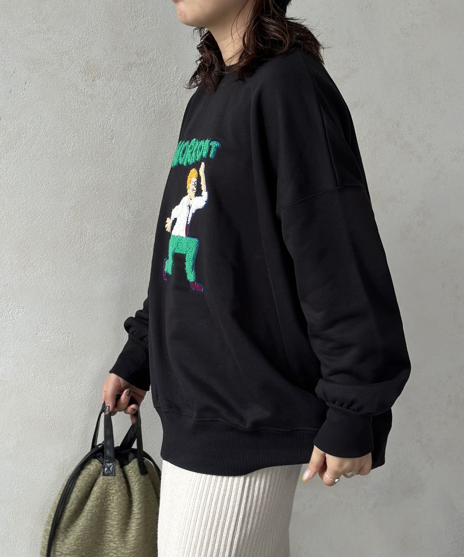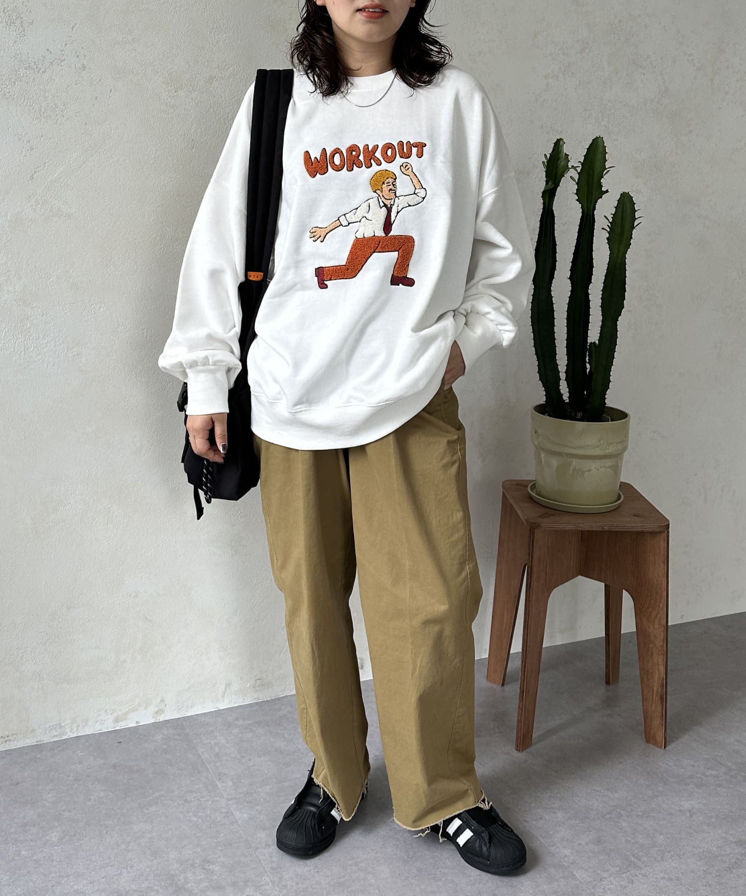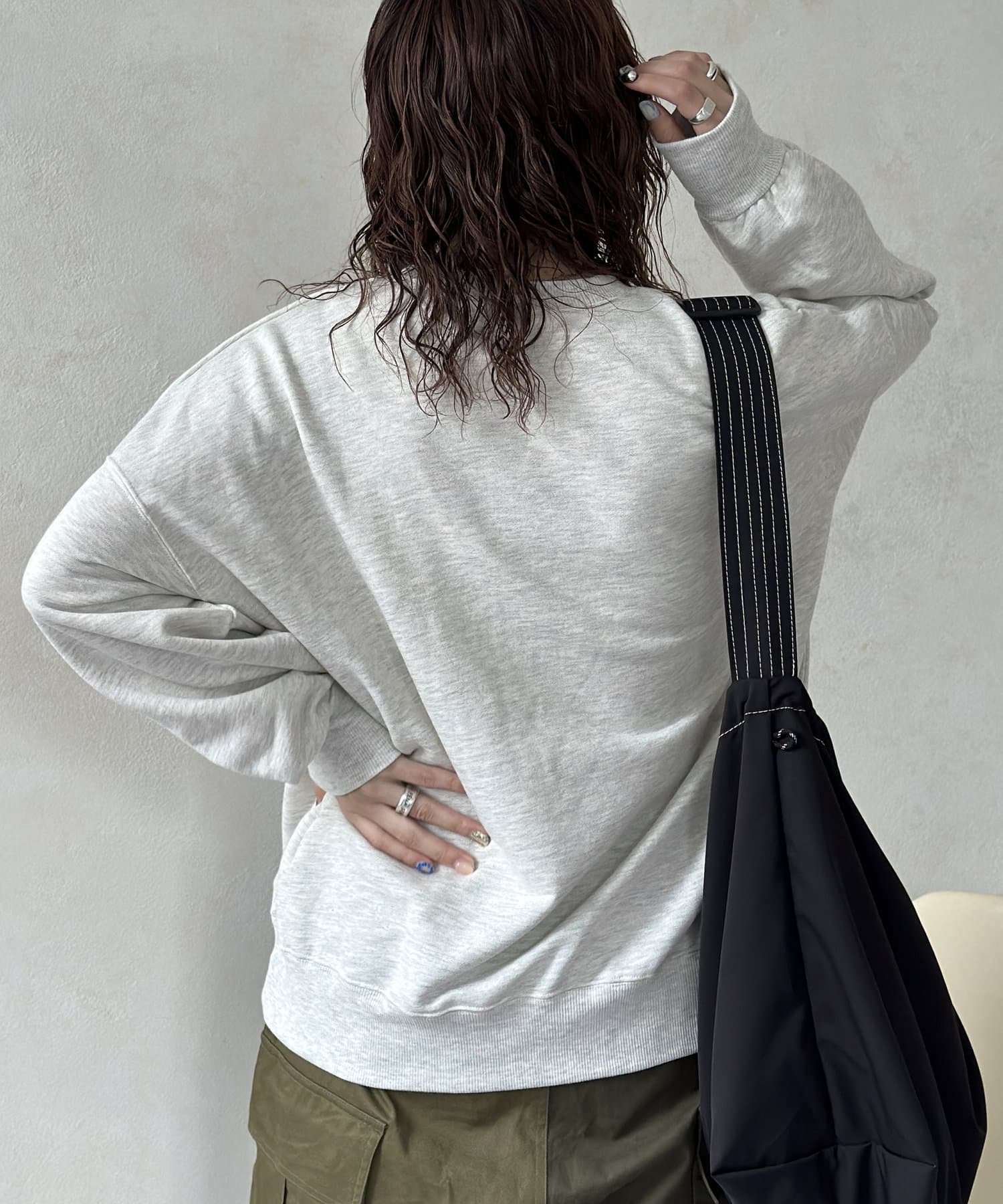 ゆったりとしたビッグシルエットなスウェットはボトムを選ばず、デニムからスラックスまで幅広い着こなしに活躍します。