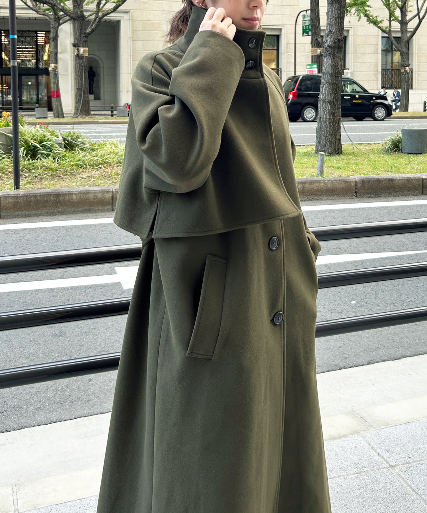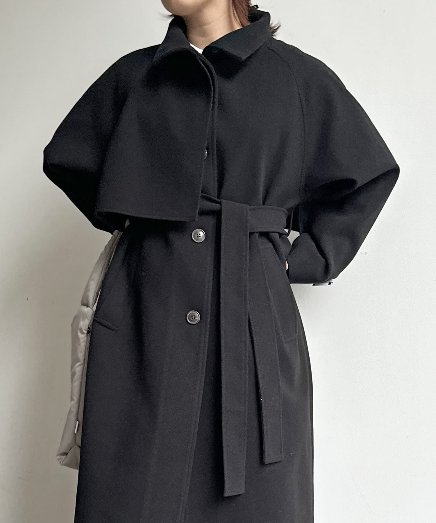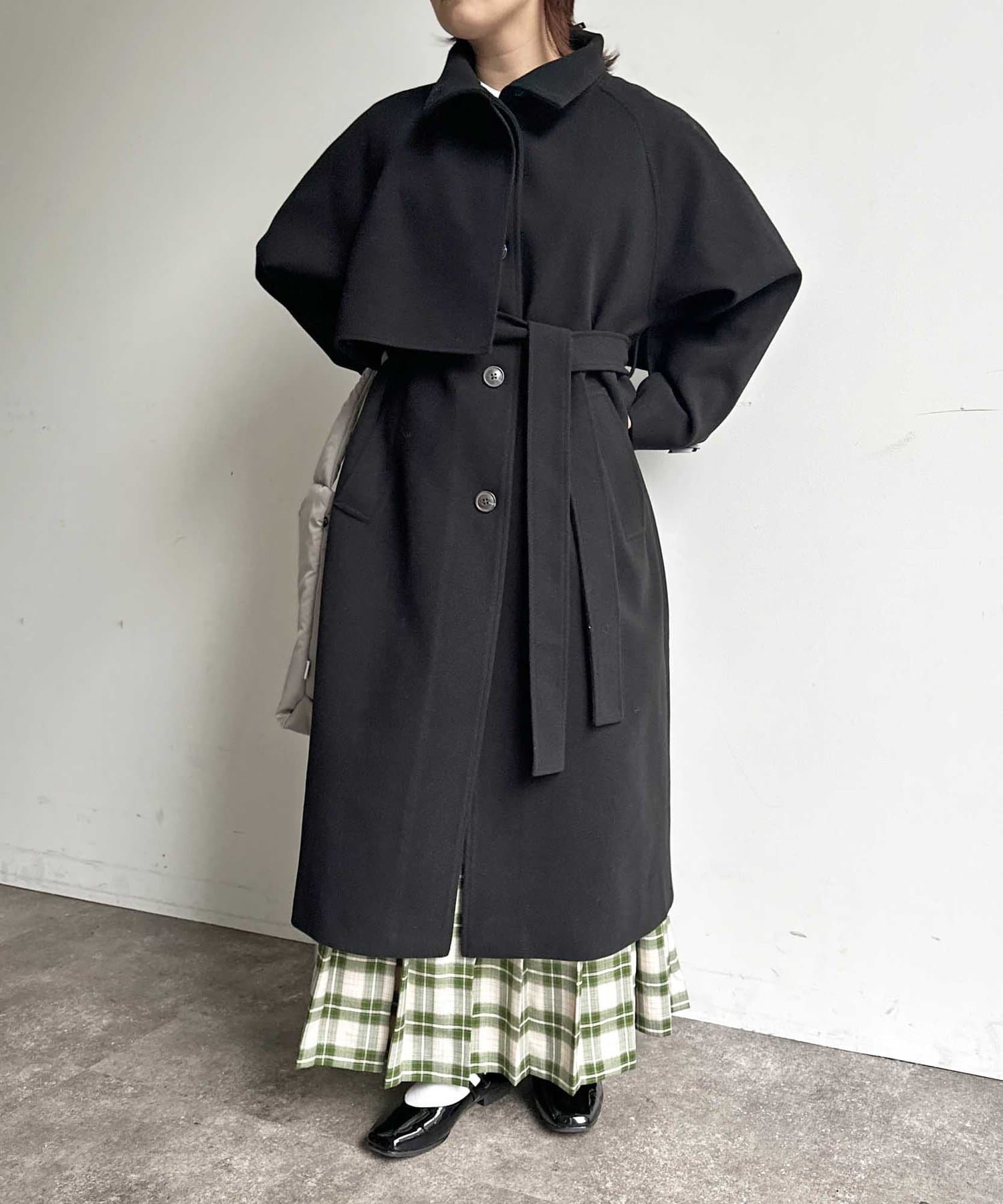 人気のディテール、ケープデザインが魅力的なロングコート。