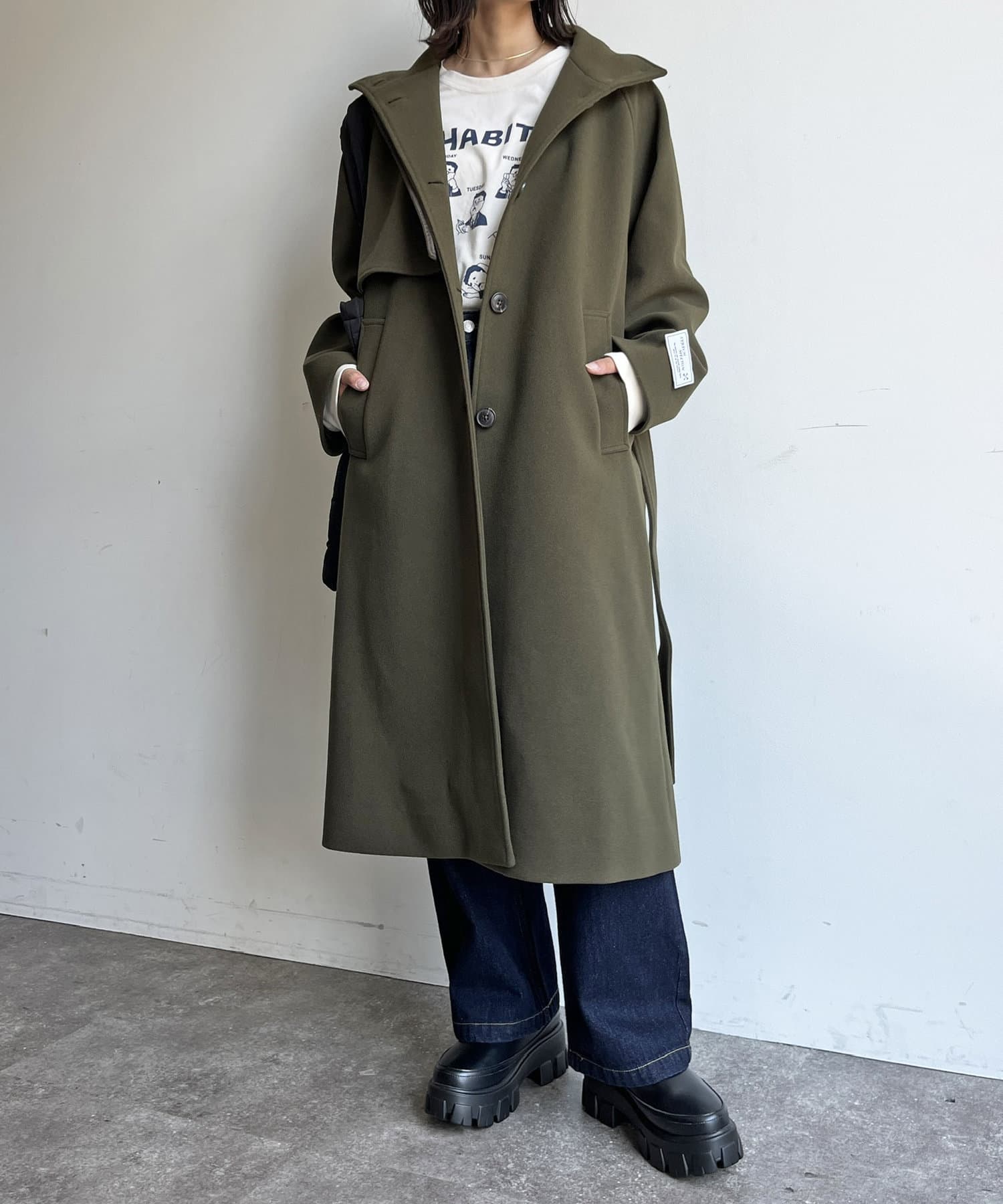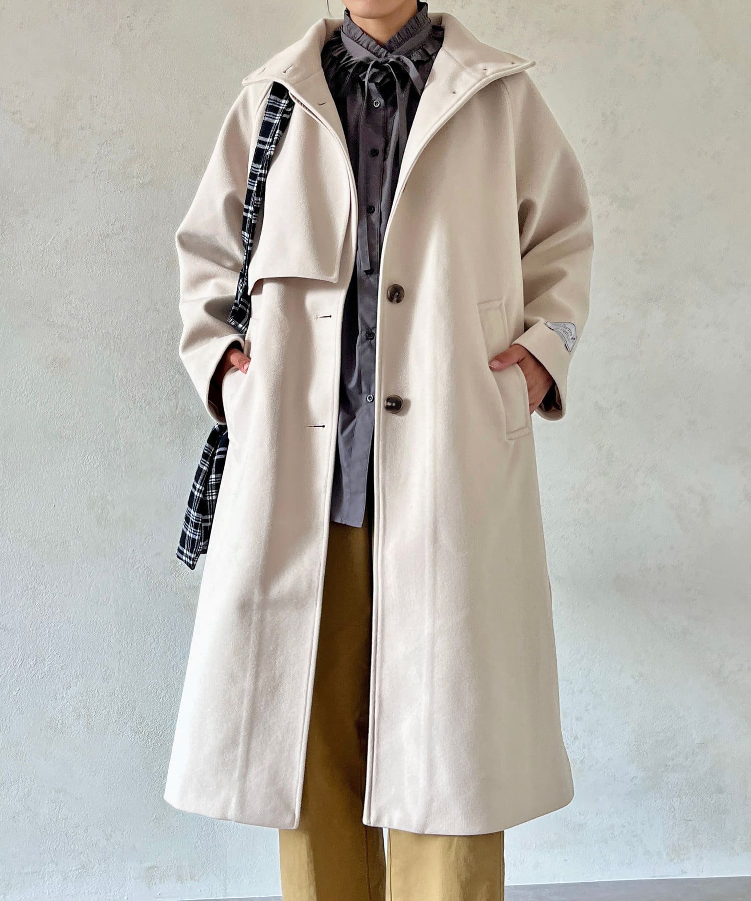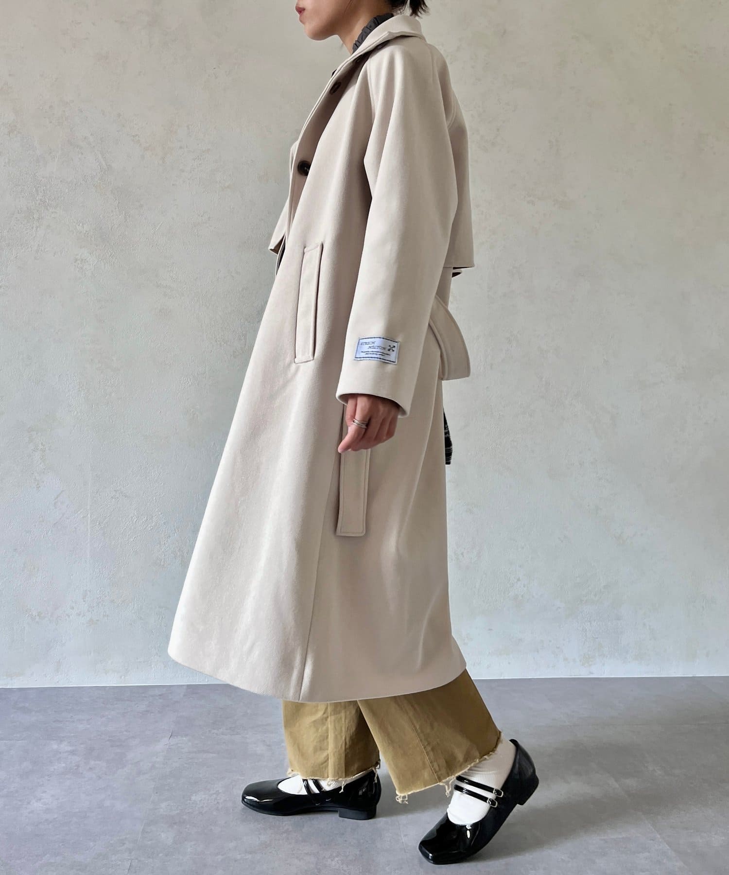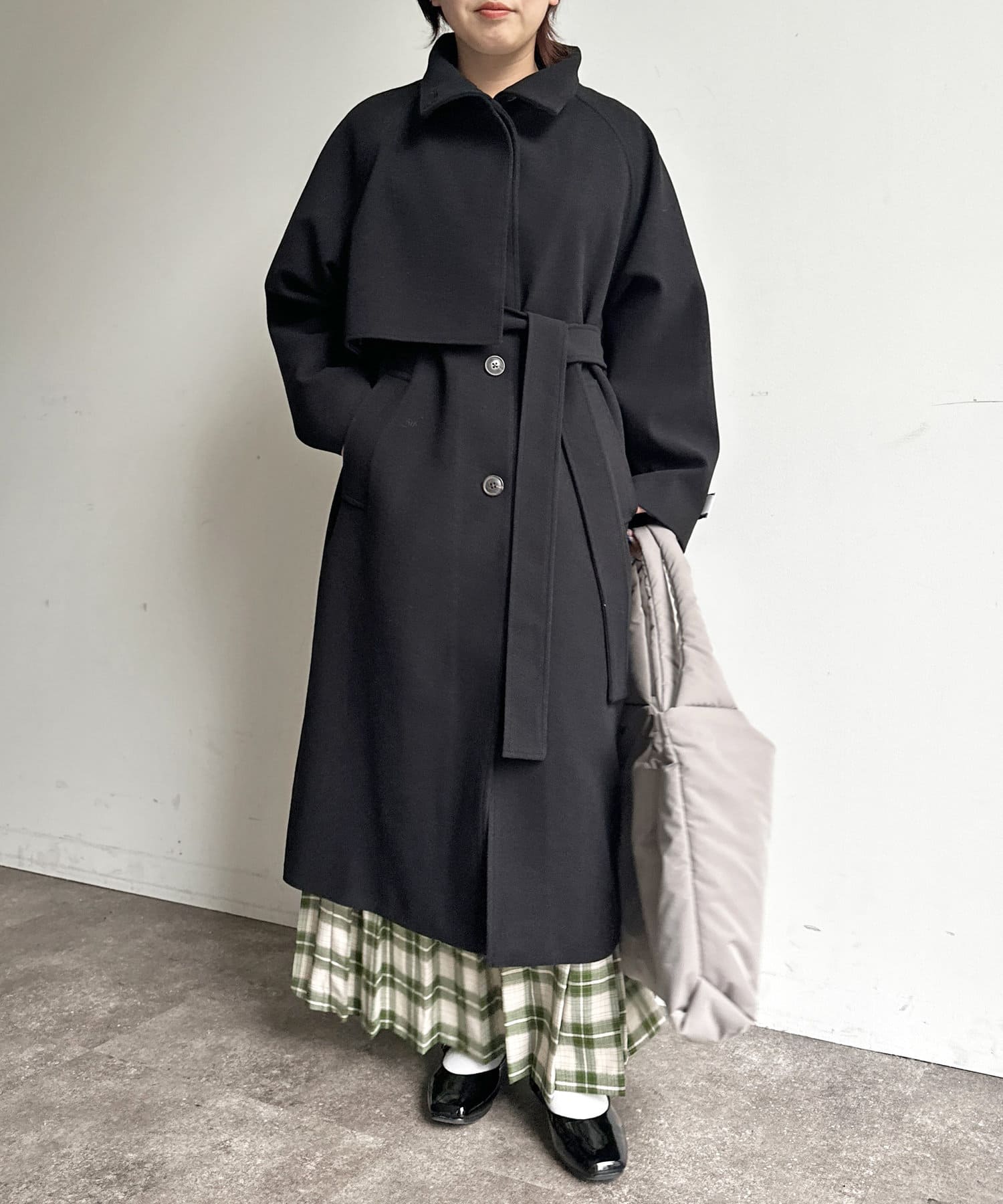 人気のディテール、ケープデザインが魅力的なロングコート。