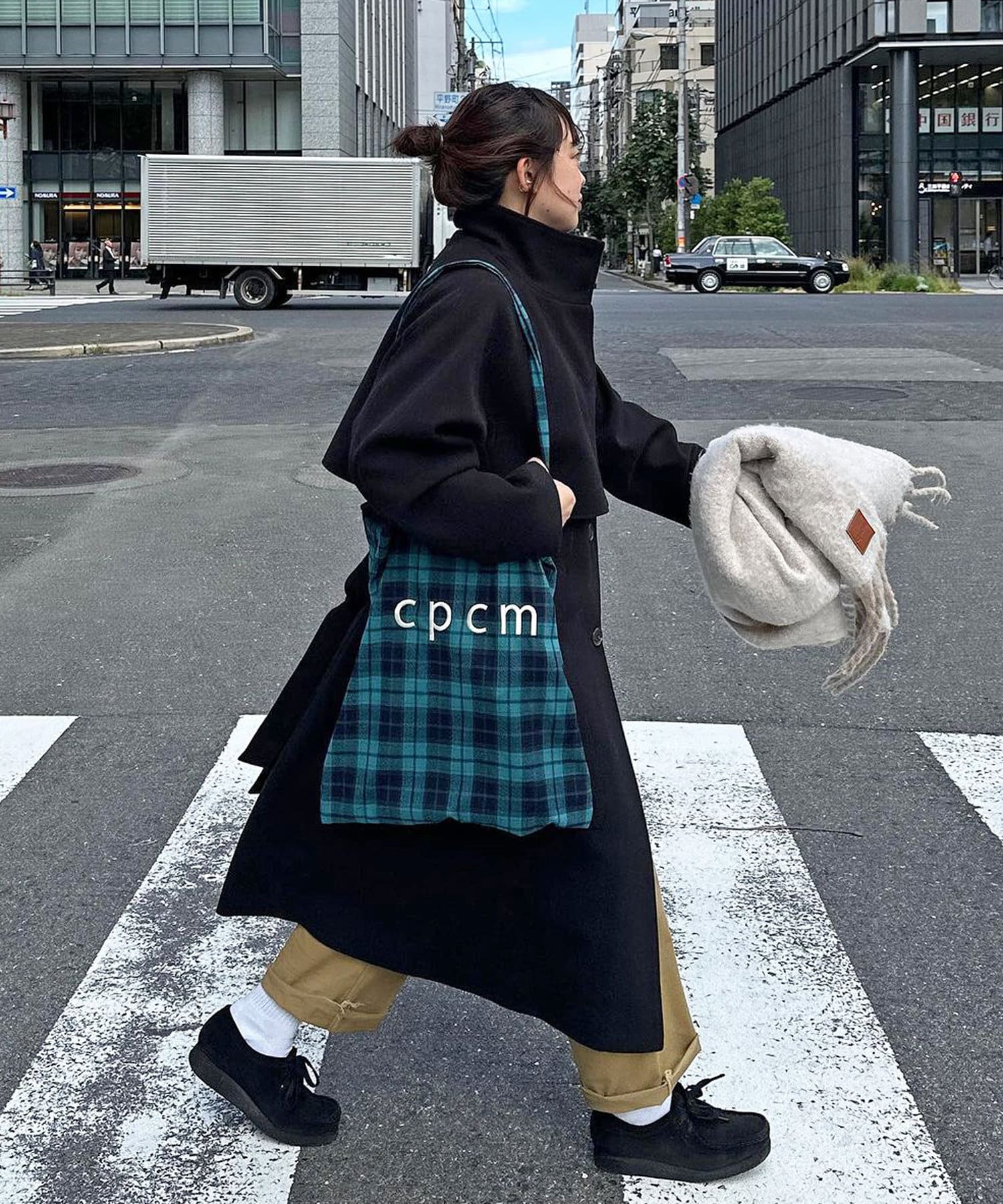 襟を立ててシャツやタートルネックニット、デニムにブーツやローファー合わせでカッコよく決まります。