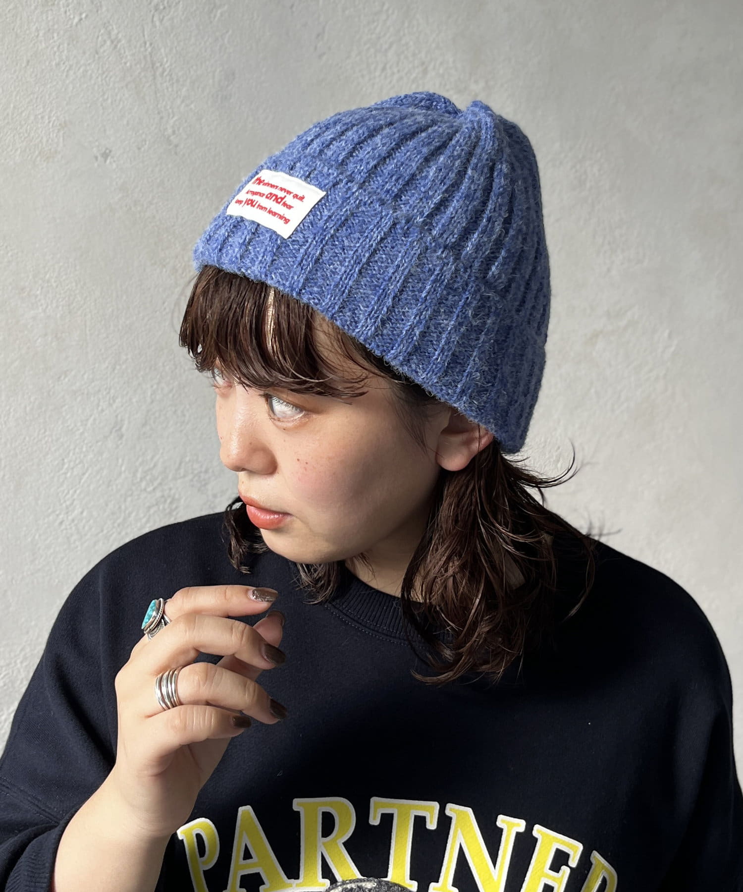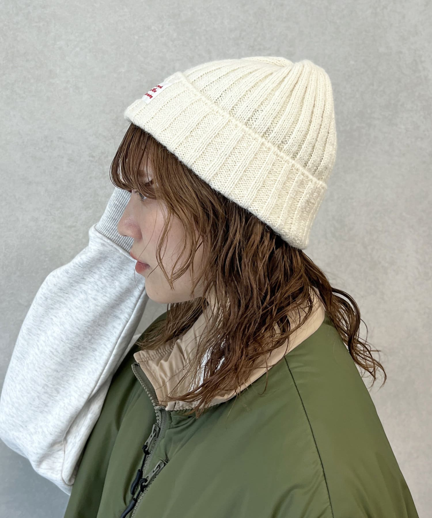 アクリル、ウール、ナイロンの温かみのあるMIX糸で編まれているニットキャップです。